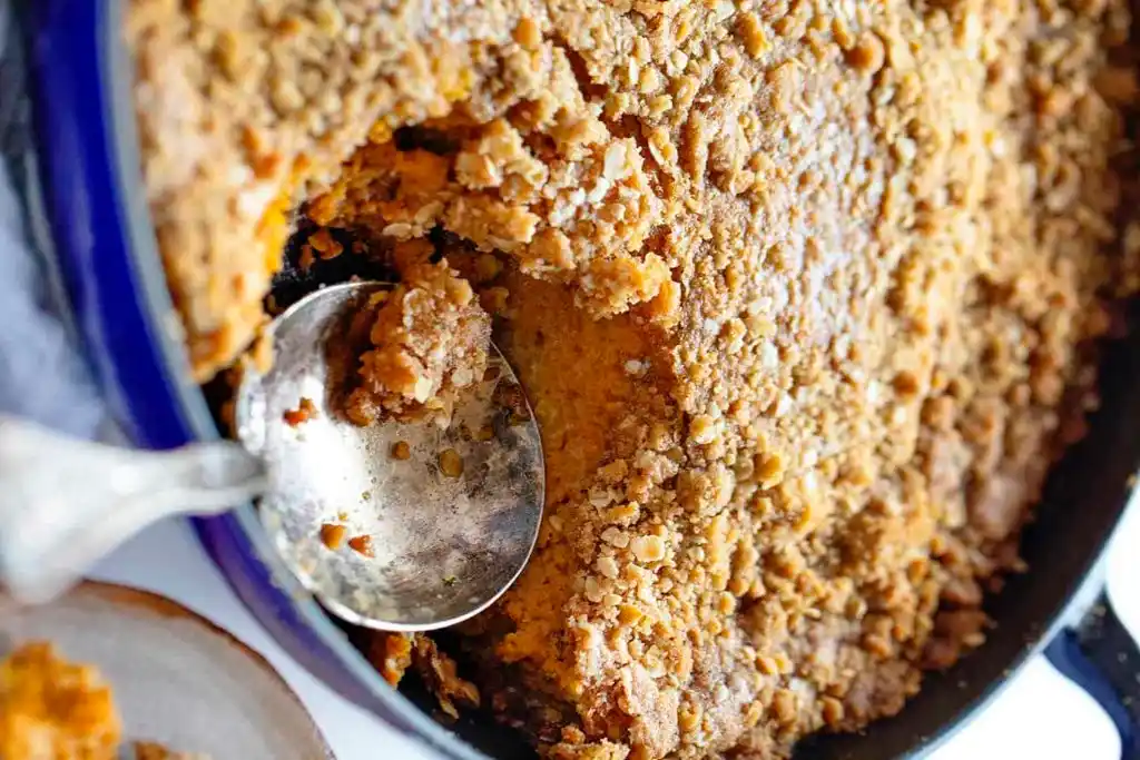 In a medium bowl, combine the gingersnap cookie flour*, oats, brown sugar, soda and powder. Then, use a fork to incorporate the butter into the dry mixture.
