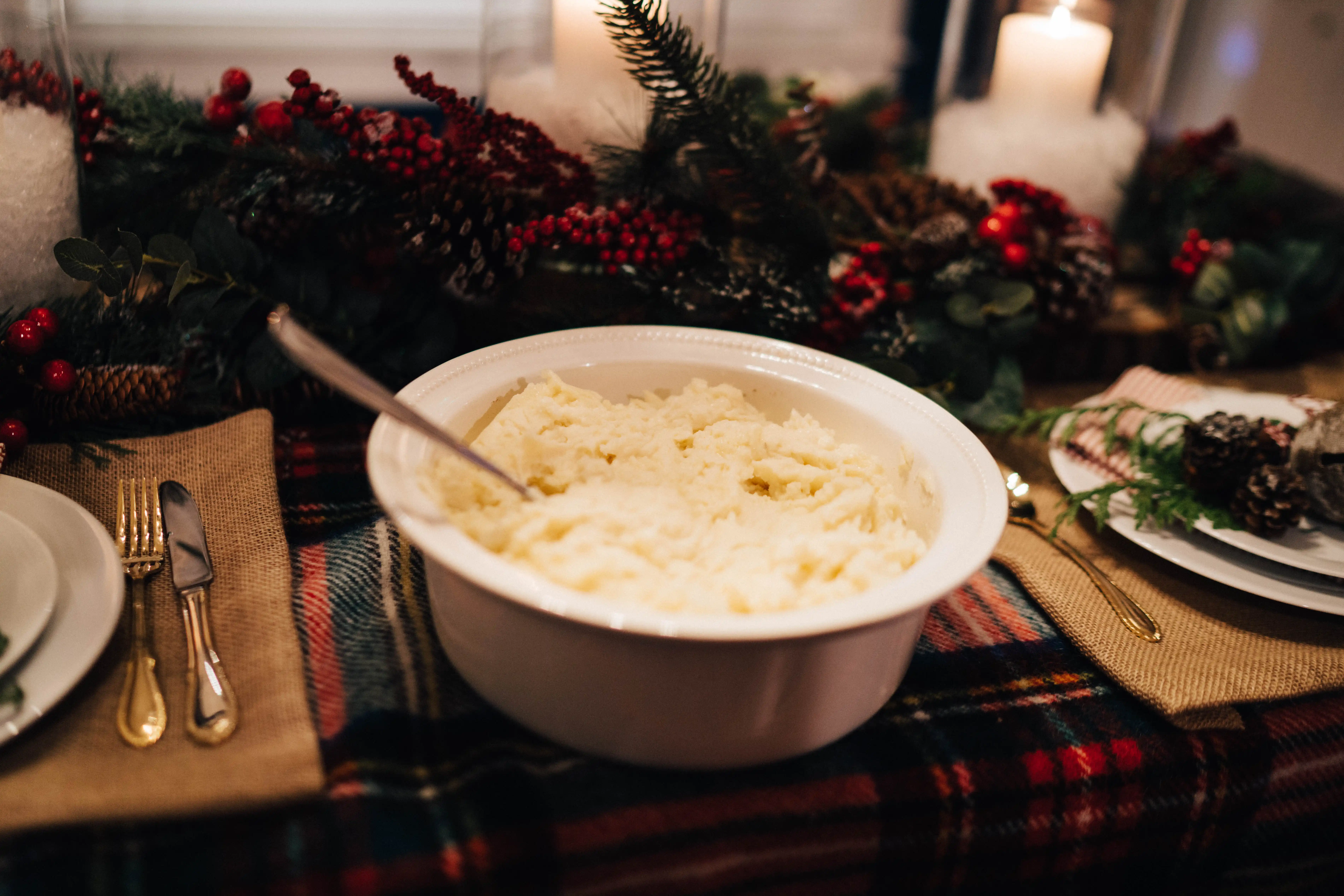 - The tablecloth is actually a plaid throw blanket that was a gift from a family member!