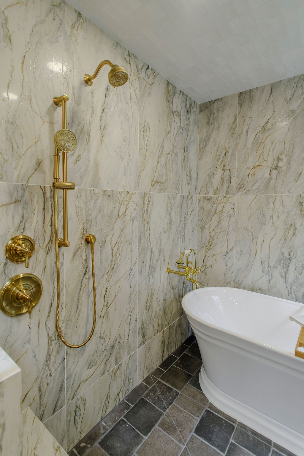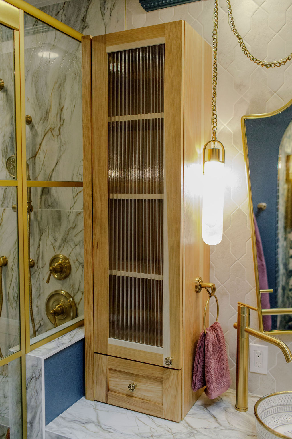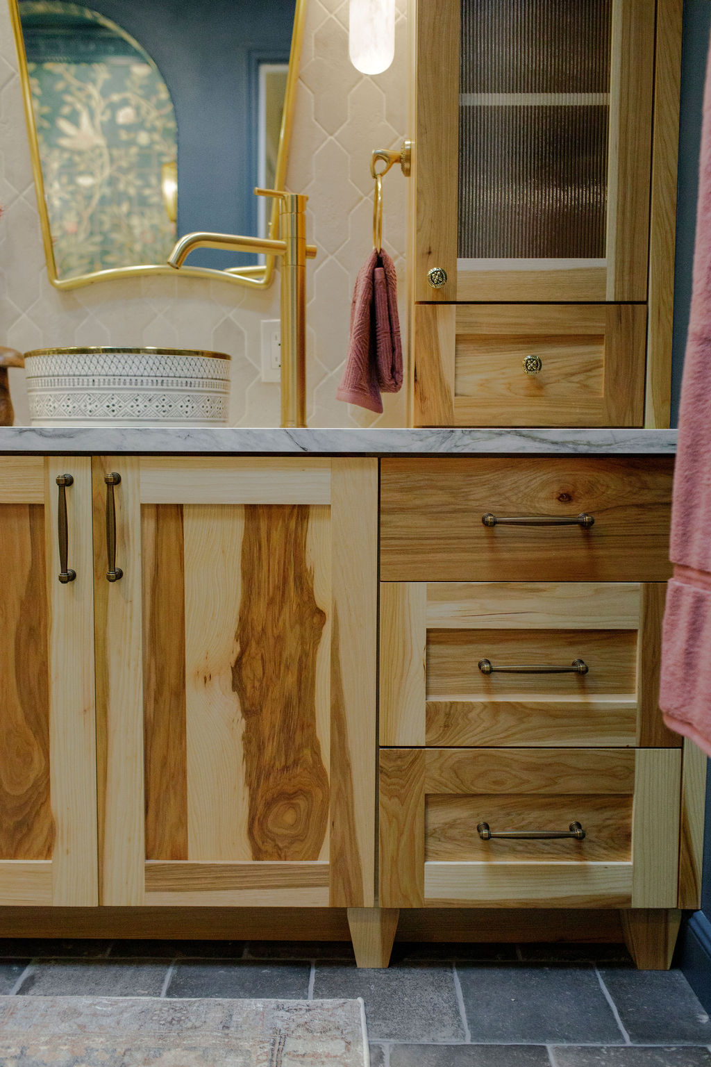 Step into a bathroom that’s anything but ordinary. For this project, we embraced our clients’ vivid imagination and personality with bold color, playful patterns, and a mix of eclectic vintage style with a touch of fairytale castle magic. Deep turquoise walls set a striking backdrop, while unique fixtures add personality at every turn. The centerpiece of the space is a generous wet room, featuring large-format tile and a luxurious soaking tub—perfect for turning everyday routines into extraordinary moments of relaxation.