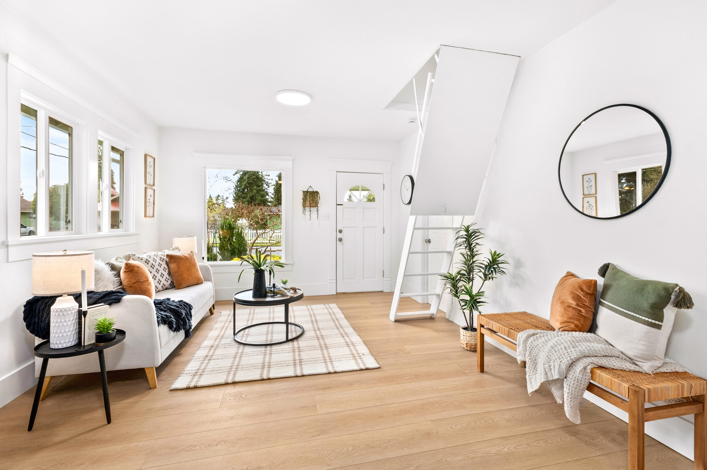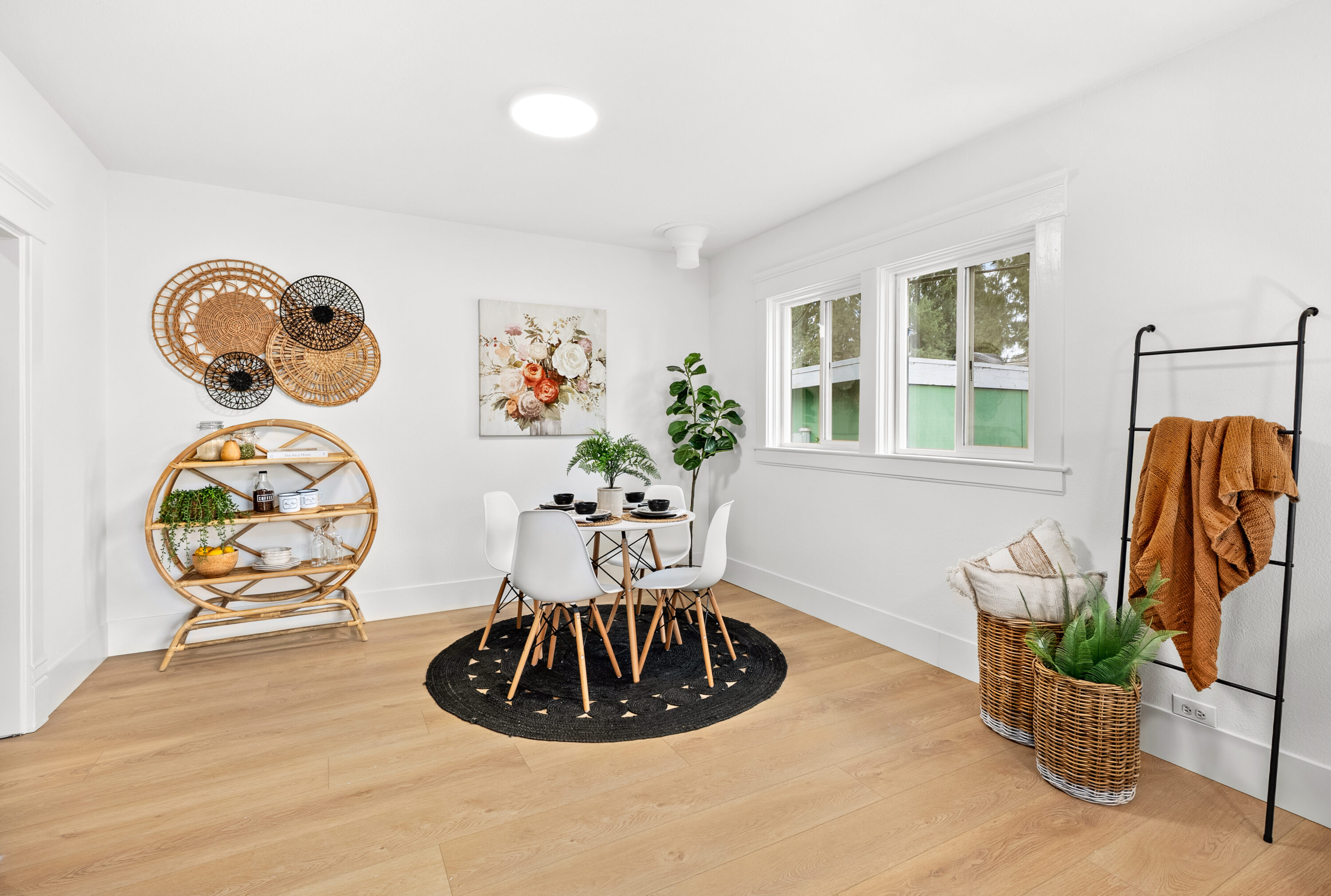 Tucked into the heart of Monroe, this darling 1908 bungalow blends old home charm with thoughtful updates in all the right places. Fresh new flooring, baseboards, and paint create a bright, refreshed feel, while abundant natural light fills the cozy living and dining spaces. The updated kitchen shines with quartz countertops and stainless steel appliances, offering both style and functionality. One comfortable bedroom and a centrally located bath make for easy living, while the finished attic provides flexible space for a home office, creative studio, or extra storage. Step outside to a spacious backyard ideal for relaxed outdoor living, complete with two storage sheds and ample off-street parking. Just minutes from downtown Monroe and with convenient access to Highway 2, this sweet home offers small-town warmth with everyday ease.