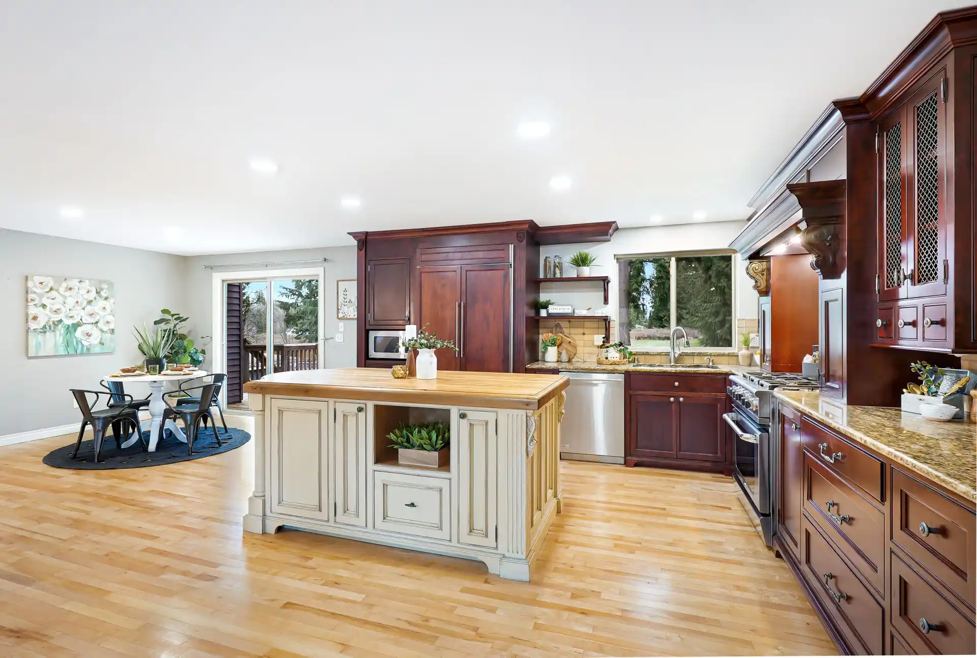 In a tight-knit Seattle Hill Community, this beautiful home boasts well-appointed landscaping, timeless curb appeal and is conveniently around the corner from local Snohomish schools. The open floorplan on the main floor creates a natural flow between the most important spaces in the home. Designed with functionality in mind, the spacious kitchen features a centerpiece island, rich Alder cabinetry, and stainless steel appliances, including a six-burner stove and a built-in/paneled refrigerator. Gather together or cozy up with a good book near the wood-burning fireplace with brick surround in the living room. The nearby owner’s suite includes a walk-in closet and a private ensuite. Downstairs, a secondary living space features a private exterior entrance, an updated kitchen, two generous bedrooms, and a sizeable versatile bonus space create endless opportunities! Evenings and sunny PNW days will be well-spent, relaxing, and entertaining in the sprawling, park-like backyard. Relax on the deck overlooking the growing apple orchard, grill on the patio, play yard games, or gather around the firepit. Best of all, the quiet neighborhood is moments to restaurants, shopping, and Willis D. Tucker Park!