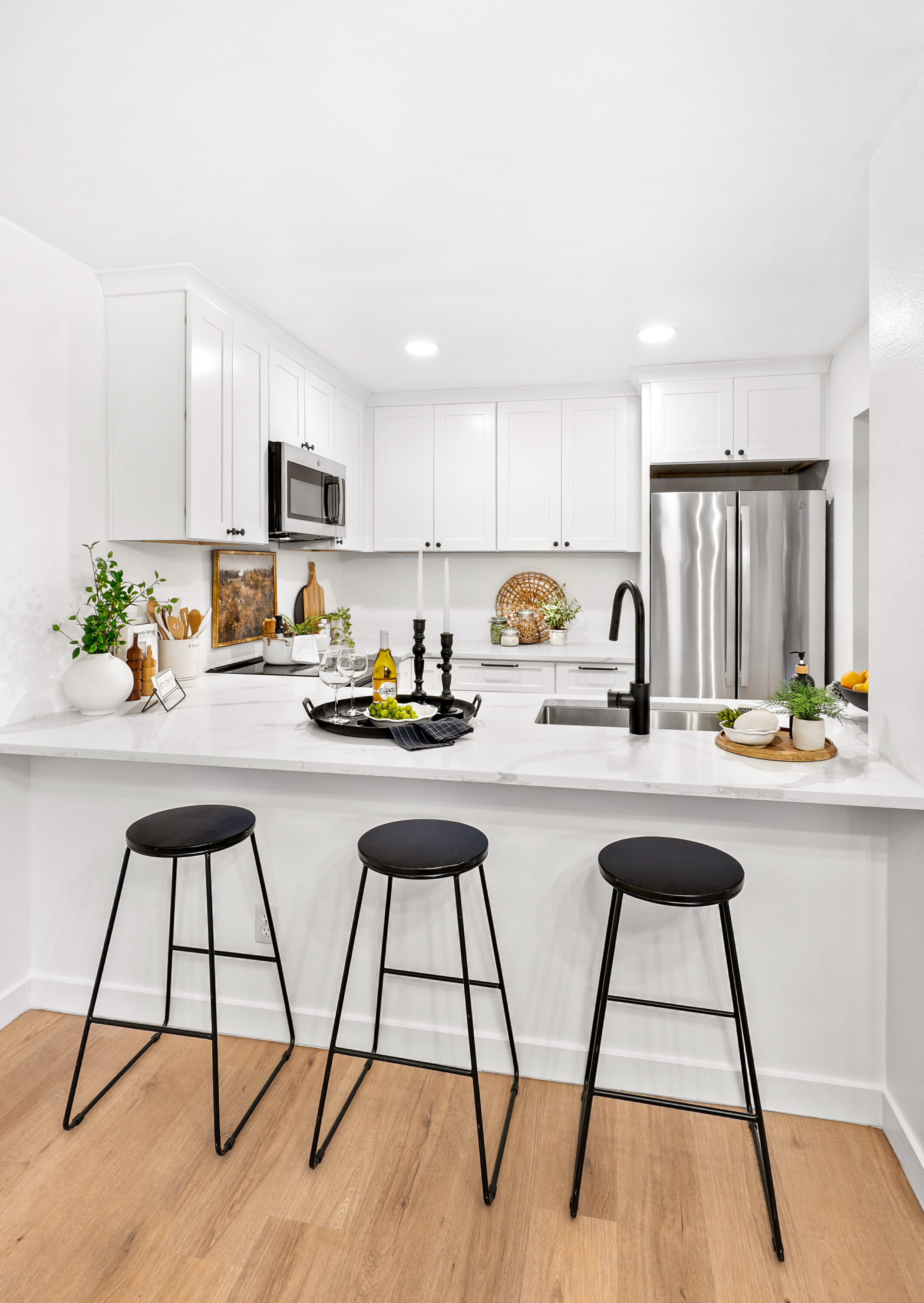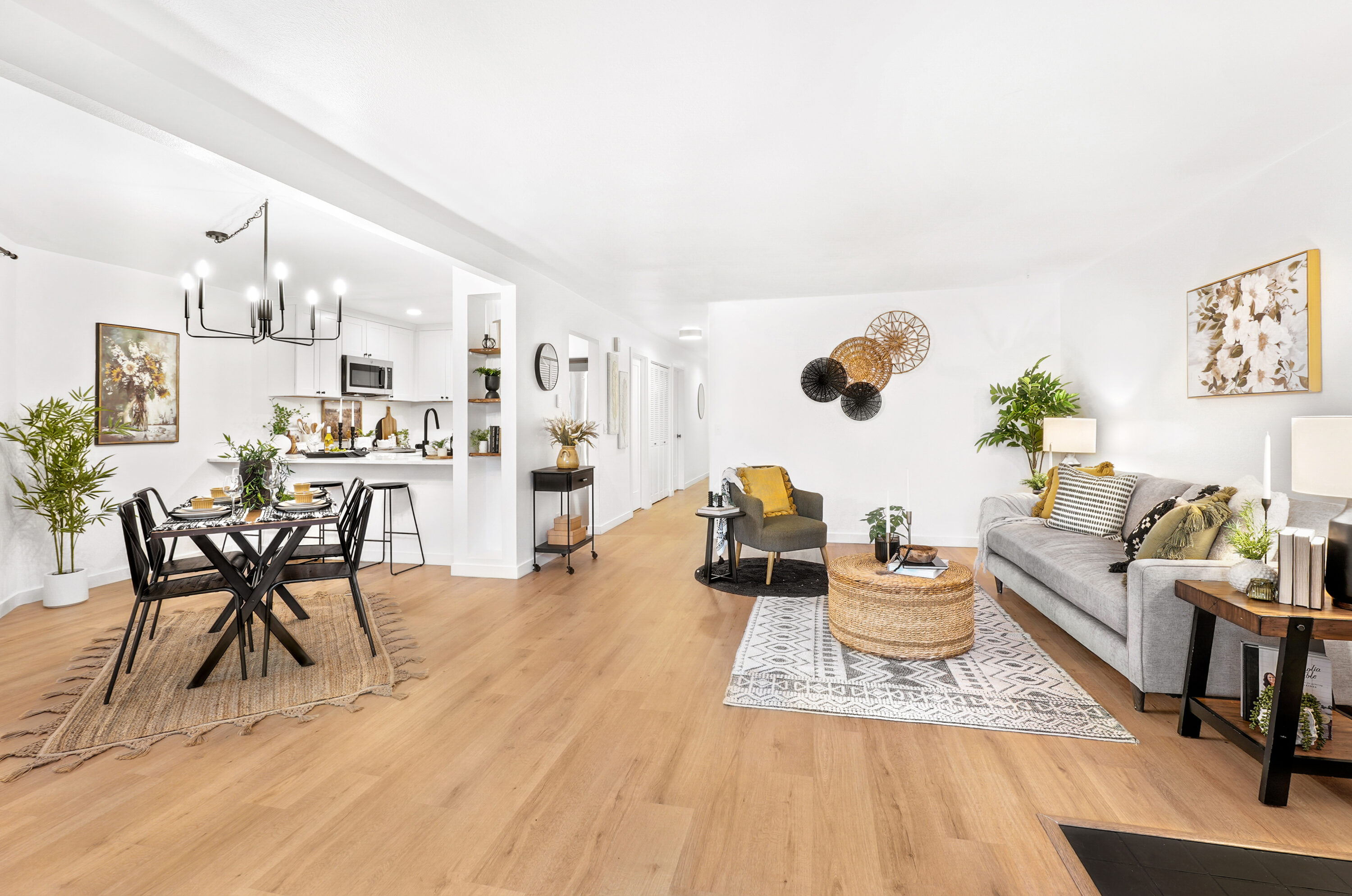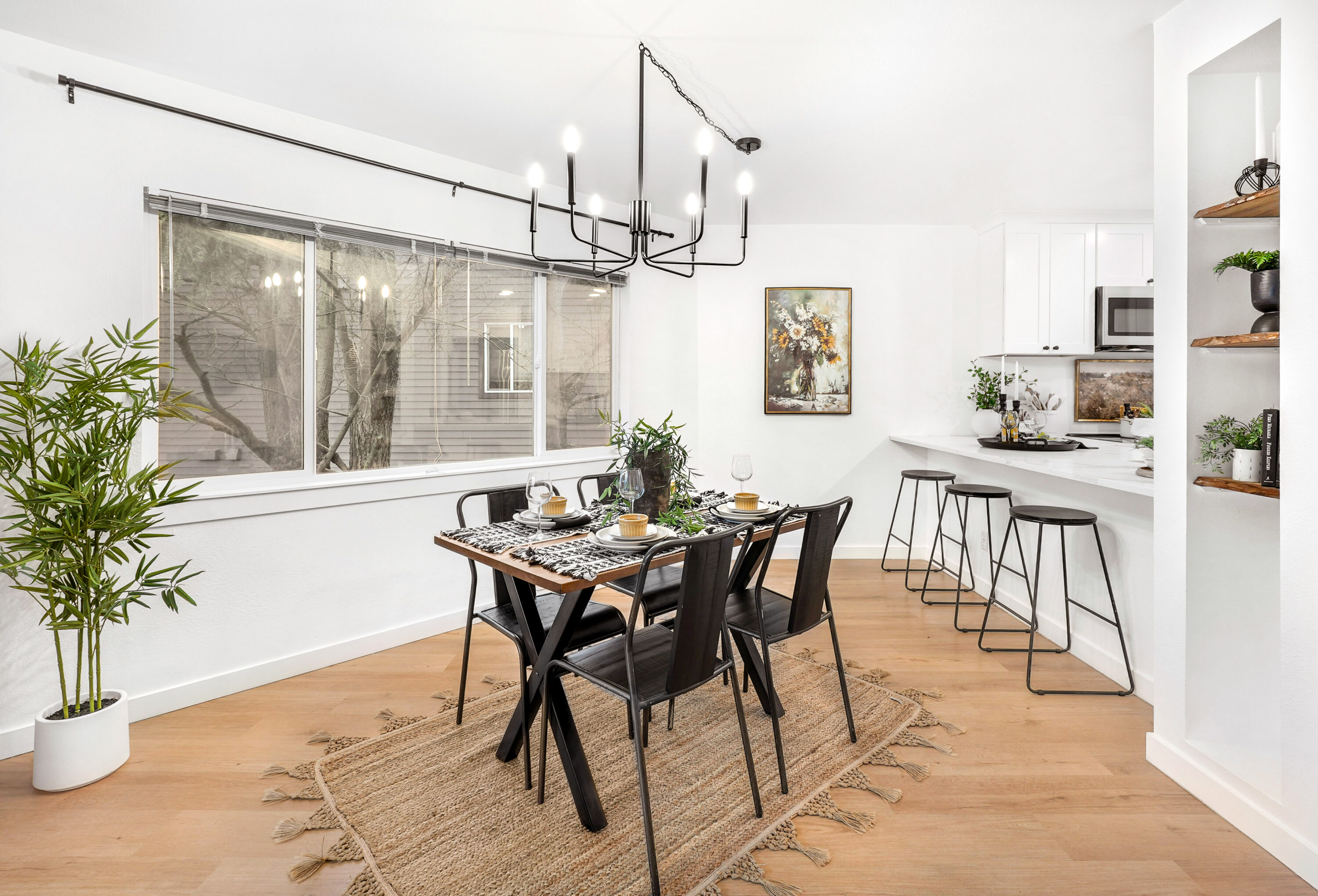 This beautifully renovated condo in the heart of Kirkland is just moments from Juanita Beach and surrounded by dining, shopping, and everyday conveniences. With quick access to I-405 and SR-522, commuting is effortless. Inside, enjoy all-new LVP flooring, fresh paint, and updated trim throughout a bright, inviting interior. The spacious primary suite features dual closets and a stunning ensuite with new tile throughout, a modern vanity, and a walk-in shower, while the flexible second bedroom is ideal for guests or a dedicated home office. A thoughtfully updated hall bath and ample storage enhance convenience for your daily routine. The open living and dining areas are centered around a cozy fireplace, perfect for hosting gatherings. The refreshed kitchen boasts soft-close cabinetry, quartz countertops, and stainless steel appliances. Step outside to the covered patio, offering an additional storage closet, space for outdoor entertaining, and peekaboo water views, an ideal blend of comfort, style, and location.