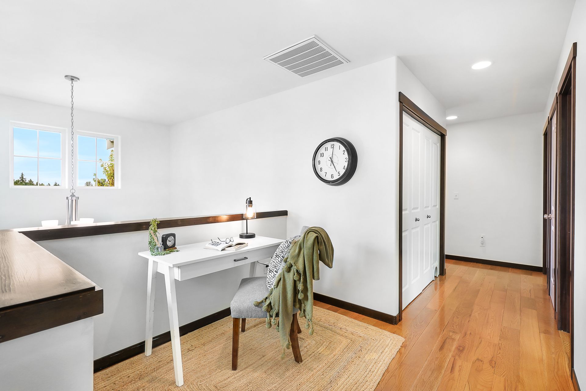 Head upstairs to find an intimate loft space, ideal for a homework station or cozy reading nook. The primary bedroom has windows that look out onto peekaboo mountain views and fill the room with warm natural light. The second floor is rounded out with two spacious guest bedrooms, a nearby hall bath, a conveniently located laundry, and additional storage.