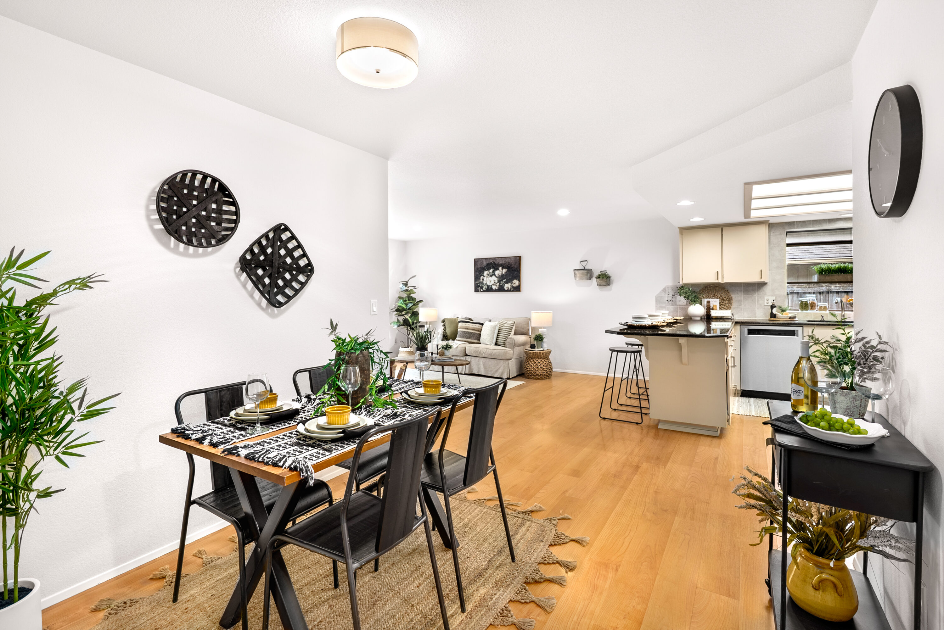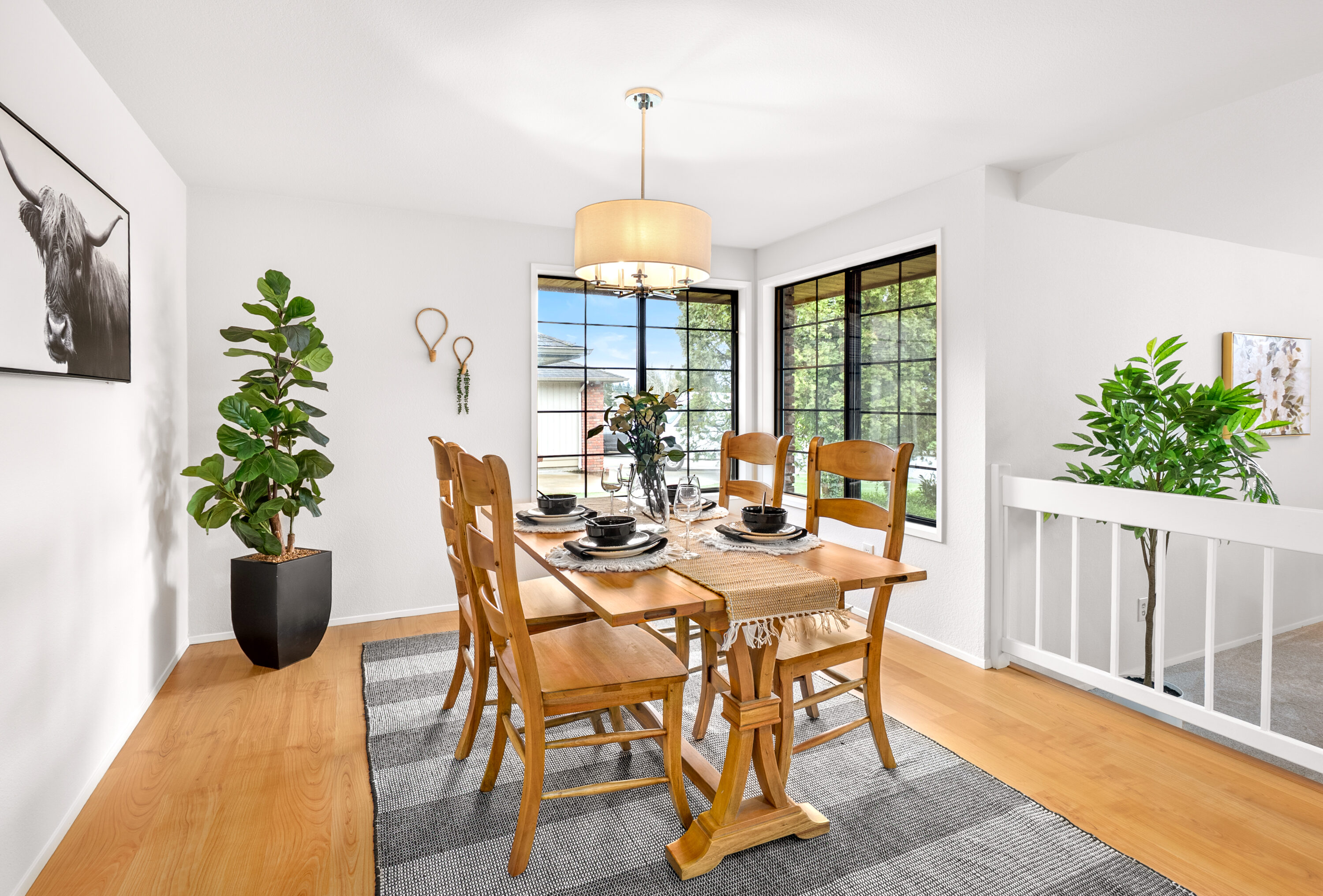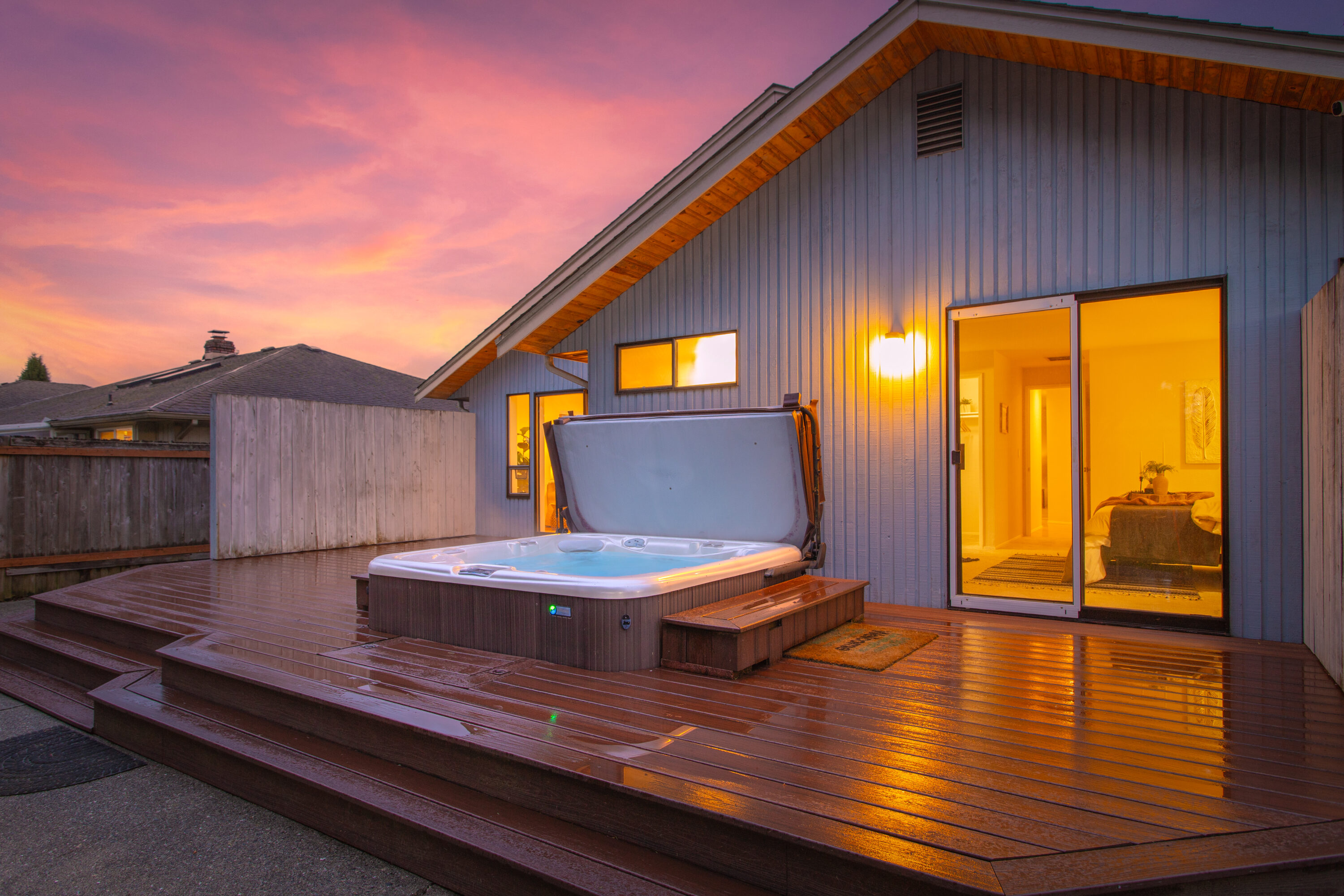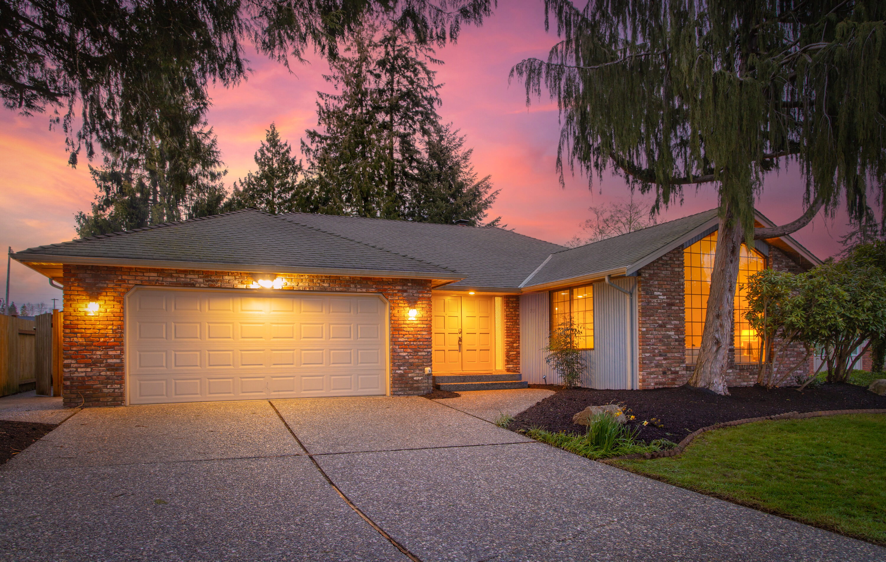Ideally located just minutes from Boeing, Paine Field, and a wide variety of shopping and dining, this Everett rambler offers the perfect blend of comfort and convenience. Enjoy simple daily routines with local schools and parks just steps away, plus quick access to commuter routes. A spacious entry welcomes you in with bright, fresh paint, leading into a sun-filled living room with vaulted ceilings, exposed beams, and oversized windows. The adjacent formal dining space is designed for effortless entertaining, while the kitchen boasts stainless steel appliances, generous prep space, a walk-in pantry, and a sunny breakfast nook. A secondary living room, warmed by a cozy fireplace, opens directly to your outdoor retreat, complete with a large back deck, fully fenced yard, and a relaxing hot tub. Down the hall, the primary suite features private deck access, a walk-in closet, and an ensuite bath, while two additional bedrooms, a full hall bathroom, and a centrally located laundry room provide flexibility for guests or growing households alike.