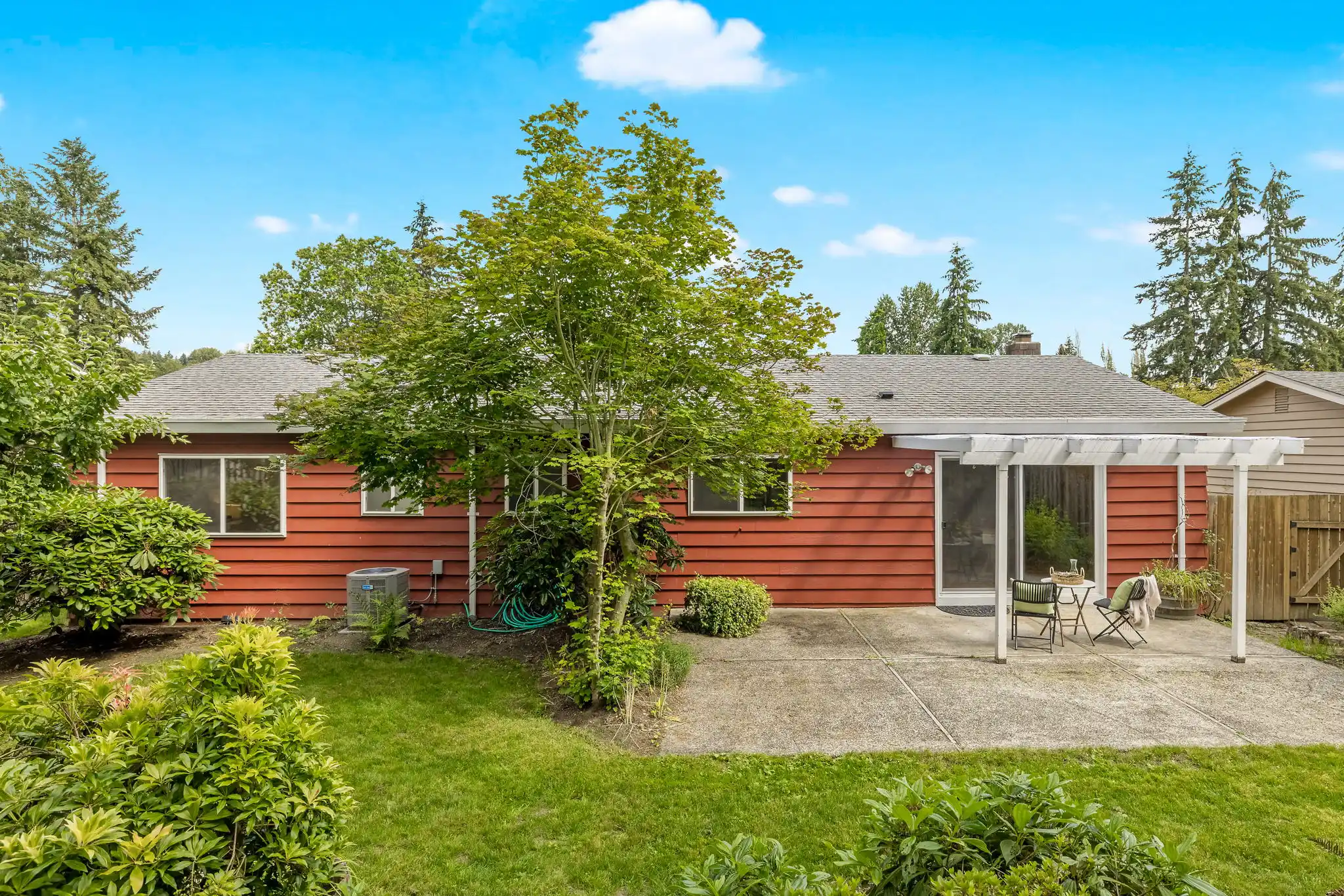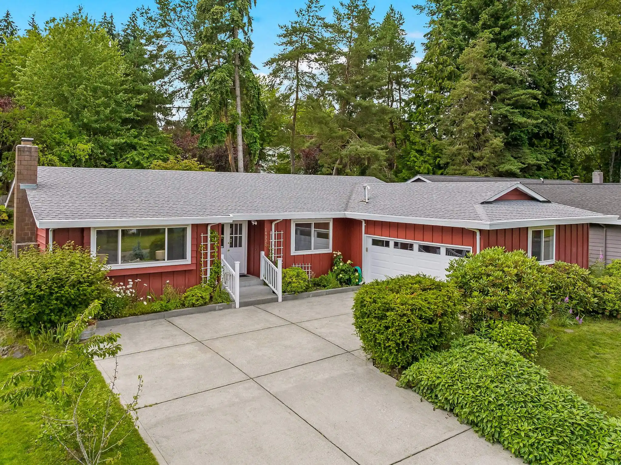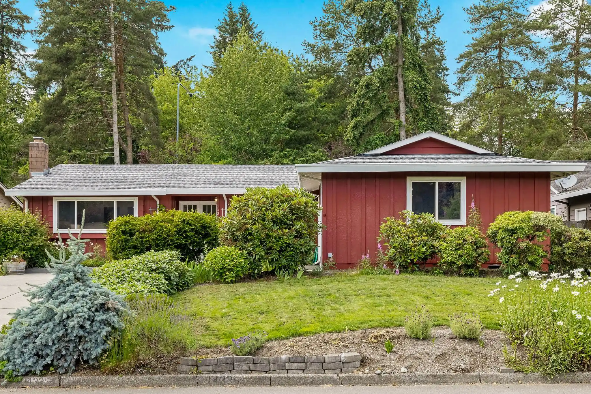 Over the years, this classic one-story home in Kirkland with central air conditioning has been meticulously transformed with a high-end quality materials, and a timeless style that you will fall in love with! Impressive architectural details in the living room will make you feel at home; the room is filled with warm, natural light from the oversized window and centered by an arched wood-burning fireplace and brick accent wall. Your culinary dreams will come to life in the chef’s kitchen that was custom-designed with efficiency and luxury in mind. The kitchen boasts a one-of-a-kind, leather-finish iridescent granite from Madagascar, stainless steel appliances, and stunning soft-close hickory cabinetry with Italian hardware and functional built-ins designed for optimal storage and ease of access. Follow the natural hardwood floors down the hall to find two guest bedrooms conveniently near a hall bathroom, complete with a free-standing soaking tub and a large vanity. The remodeled European-style ensuite in the primary bedroom features Italian ceramic tiles and a walk-in shower for a spa-like experience. A covered outdoor living space allows for year-round enjoyment, relaxation, and entertaining in the serene fully-fenced backyard. Impeccably maintained, mature landscaping fills the yard, including a variety of fruit trees, a transparent apple tree, multiple cherry trees, and two blueberry bushes, as well as flowers and plants that create a symphony of color year-round. Best of all, the home is located ideally between Kirkland, Bothell, and Woodinville, so you are just moments to public transportation, shopping, local eateries, outdoor recreation, and much more.