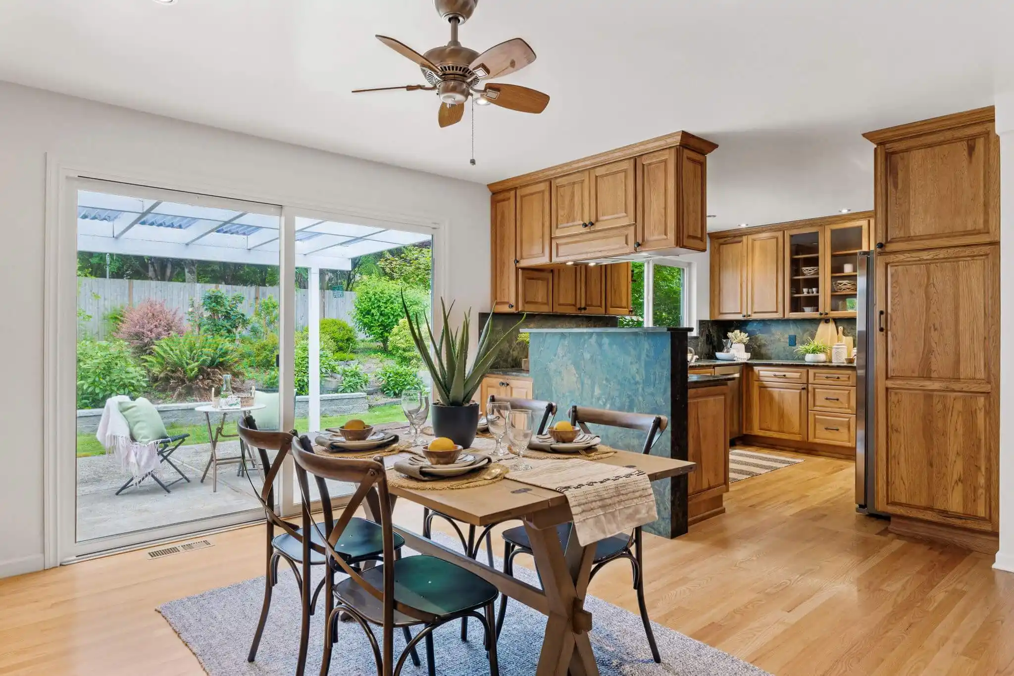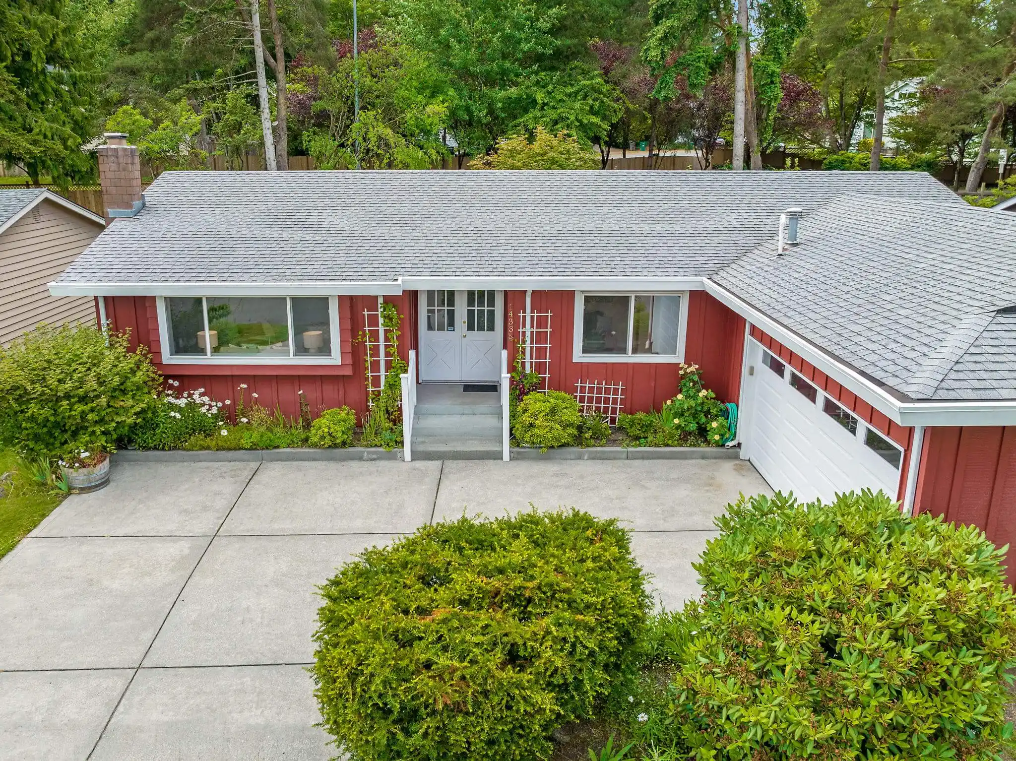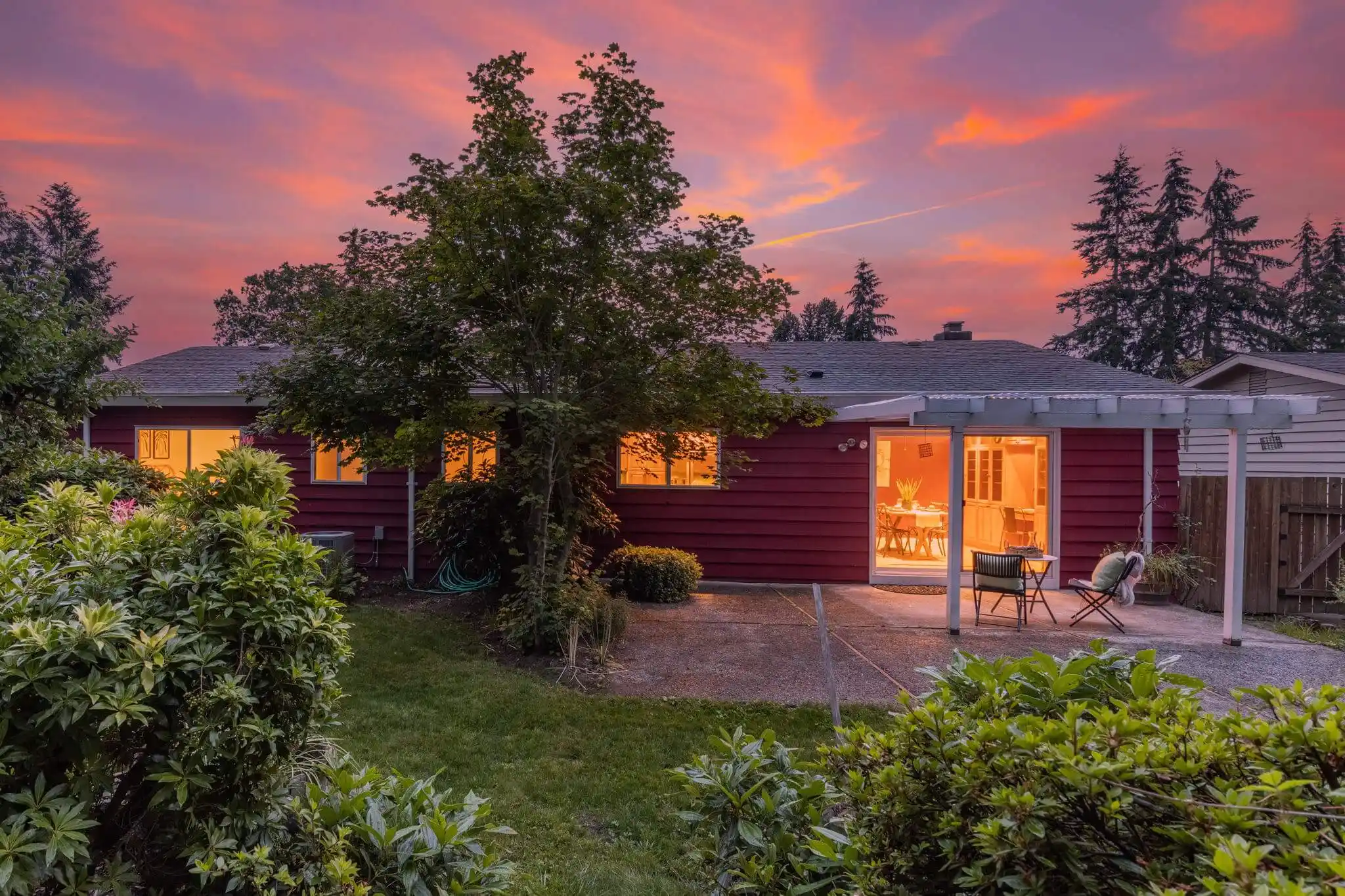 Over the years, this classic one-story home in Kirkland with central air conditioning has been meticulously transformed with a high-end quality materials, and a timeless style that you will fall in love with! Impressive architectural details in the living room will make you feel at home; the room is filled with warm, natural light from the oversized window and centered by an arched wood-burning fireplace and brick accent wall. Your culinary dreams will come to life in the chef’s kitchen that was custom-designed with efficiency and luxury in mind. The kitchen boasts a one-of-a-kind, leather-finish iridescent granite from Madagascar, stainless steel appliances, and stunning soft-close hickory cabinetry with Italian hardware and functional built-ins designed for optimal storage and ease of access. Follow the natural hardwood floors down the hall to find two guest bedrooms conveniently near a hall bathroom, complete with a free-standing soaking tub and a large vanity. The remodeled European-style ensuite in the primary bedroom features Italian ceramic tiles and a walk-in shower for a spa-like experience. A covered outdoor living space allows for year-round enjoyment, relaxation, and entertaining in the serene fully-fenced backyard. Impeccably maintained, mature landscaping fills the yard, including a variety of fruit trees, a transparent apple tree, multiple cherry trees, and two blueberry bushes, as well as flowers and plants that create a symphony of color year-round. Best of all, the home is located ideally between Kirkland, Bothell, and Woodinville, so you are just moments to public transportation, shopping, local eateries, outdoor recreation, and much more.