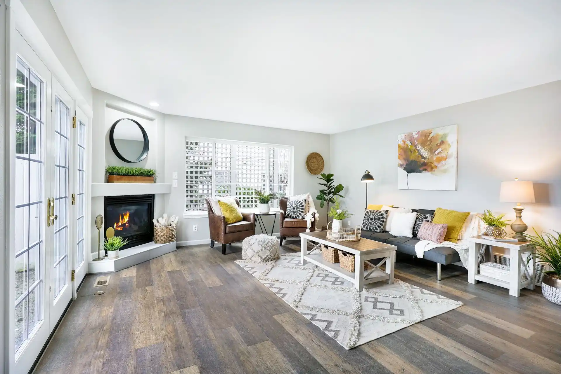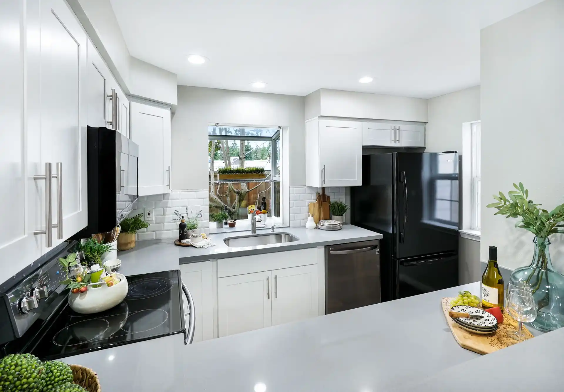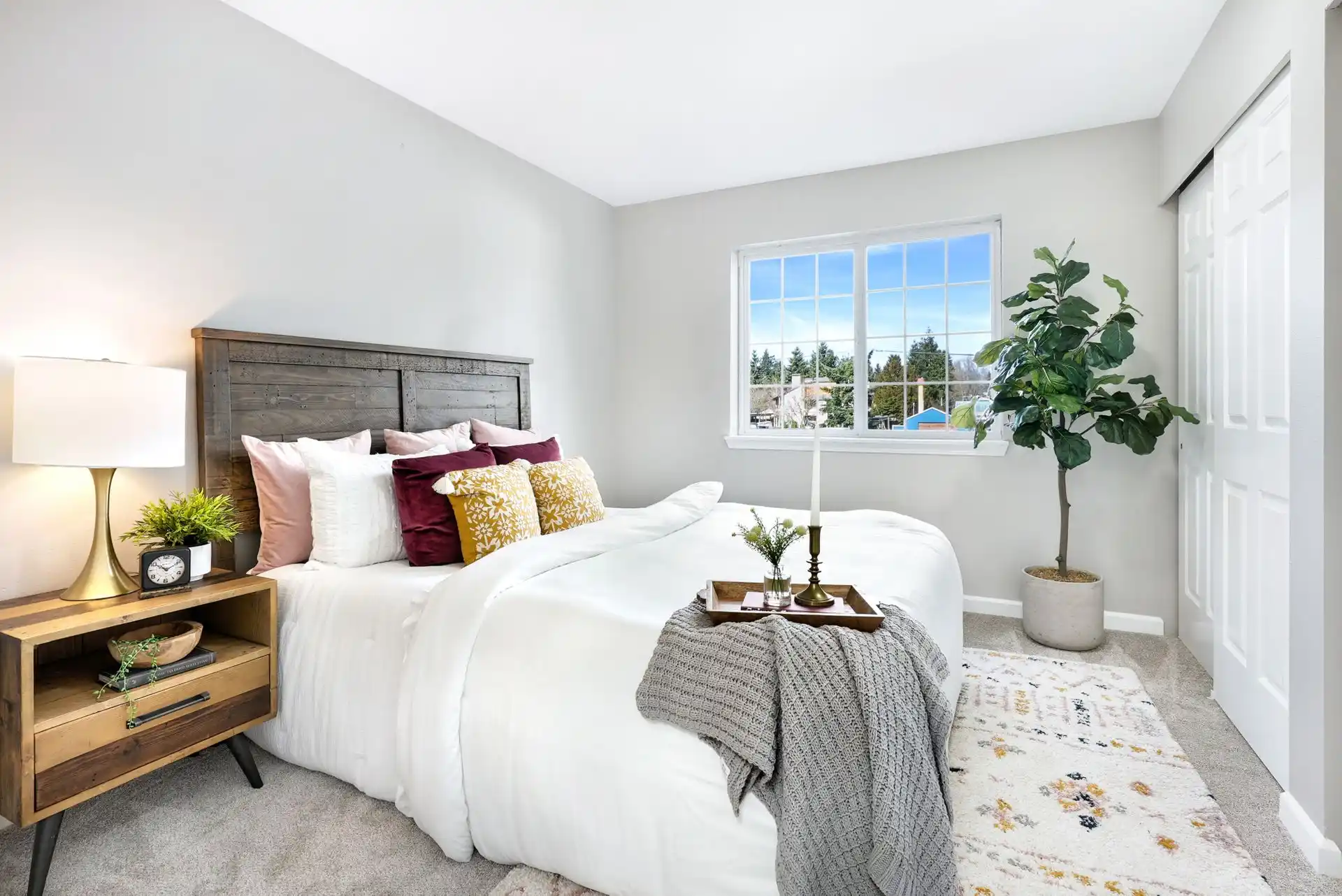 This meticulously updated Lynnwood townhouse has been transformed to bring easy and modern living to your everyday life. Elements of style will be seen throughout, from the beautiful luxury vinyl plank flooring to the new light fixtures and nearly everything in between. An open layout will allow you to effortlessly greet guests in the entry and continue conversations into the main living spaces. The spacious kitchen is a perfect combination of contemporary design and functionality with quartz countertops, ample storage space with timeless-white soft-close cabinets, a dual-shelf garden window, and a two-tier peninsula ideal for entertaining or high barstool seating. Have a meal together in the adjacent dining space and end the evening in the living room cozied up near the accent fireplace. French doors lead outside to the patio space, ideal for grilling and relaxing! The oversized owner’s suite will be a personal oasis, complete with cathedral ceilings, double closets, and a five-piece ensuite with a soaking tub and walk-in shower. Nearby, two generously-sized bedrooms and a freshly updated bathroom await. This home is located near Ash Way Park & Ride, I-5, and I-405, making it ideal for commuting. You’ll also love the convenience of the Alderwood Mall, restaurants, shopping, and outdoor recreation at Meadowdale Beach Park or Picnic Point, only being moments away.