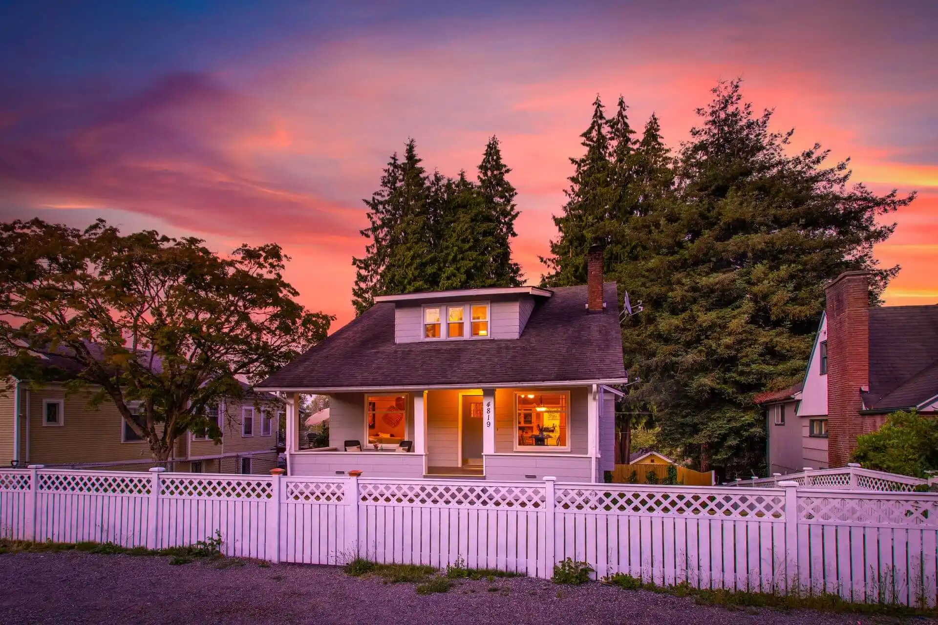 Beaming with character, historic curb appeal, and opportunity, this quiet property welcomes you with a charming picket fence and a traditional covered front porch. You will love the impressive period details found throughout, including the built-up millwork, an original clawfoot tub, custom built-ins, and beautiful wainscotting. You are welcomed into the home’s bright, airy living room with a cozy wood-burning brick fireplace and large windows overlooking the front yard. The easy floorplan flows into the formal dining room, which boasts stunning box beam ceilings and a window bench for additional seating and storage. Continue into the kitchen, where you’ll find ample cabinetry and stainless steel appliances. The main floor is rounded out by a generous bedroom and a sunroom that would make a great mudroom, pantry, or the perfect reading nook. At the end of the day, retreat to any of the three bedrooms upstairs that await near a spacious bathroom with dual vanity. The partially-finished basement includes a private entrance, a family room with a cozy wood-burning stove, and multiple bonus spaces that are waiting to be transformed into secondary living spaces, an office, or a home gym – endless possibilities! Time will be well-spent outdoors in the expansive, fully-fenced yard, grilling, playing yard games, or relaxing around the fire pit. A detached, oversized garage is perfect for working on your hobby projects and for storage! Best of all, this Lowell neighborhood is moments to Downtown Everett & Snohomish, I-5, Boeing, Lowell Riverfront Trail, shopping, and restaurants.