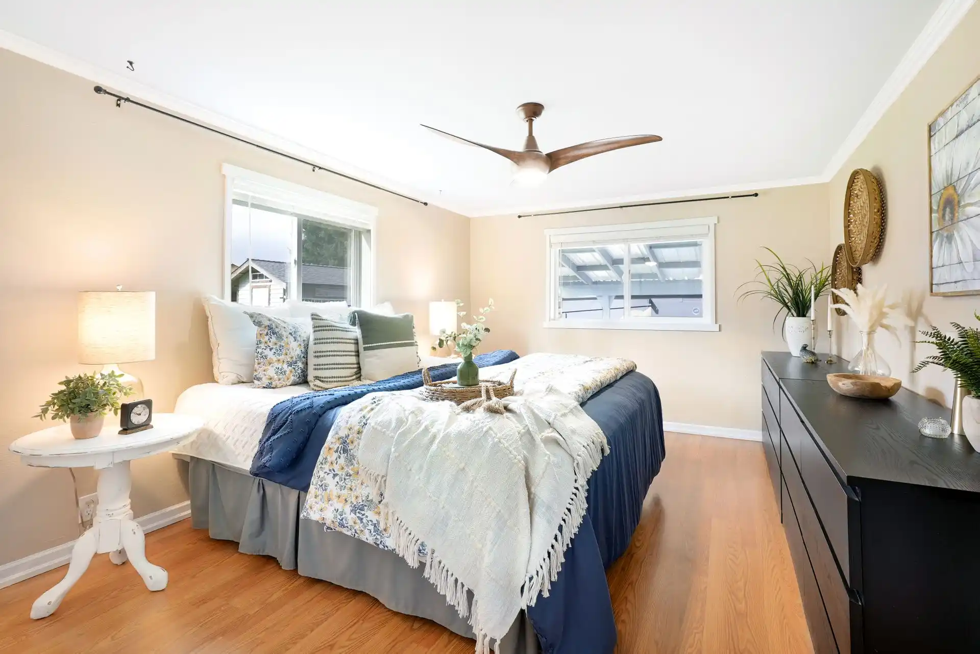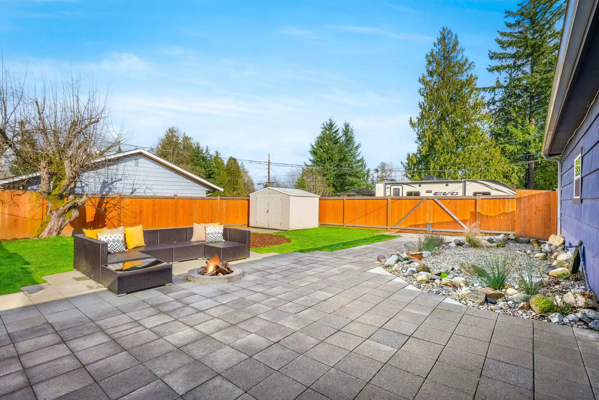 The moment you catch a glimpse of this charming home’s timeless curb appeal, you’ll fall in love. Greet guests in the entry and continue into the bright and airy living room near the cozy fireplace. Follow the warm laminate flooring and the impressive crown molding to the heart of this entertainer’s dream, the freshly updated kitchen. Here, luxury soft-close cabinetry and open shelves create a beautiful backdrop to the quartz countertops, stainless steel appliances, a hood range, ample pantry space, and a centerpiece island. An accent light fixture will intimately light the dining room for all your meals. A partially-finished 840 square foot basement includes a private entrance and the laundry. This space is ideal for storage or could potentially be finished to become a secondary living space – endless possibilities await! Time will be well spent outdoors gardening in the raised garden beds, picking fresh fruit from multiple mature trees, or in the fully-fenced backyard relaxing on the partially-covered patio or gathered around the firepit. All of this, plus a finished detached bonus space. This quiet neighborhood is centrally-located, ideal for commuting, and only moments from shopping, restaurants, Boeing, Paine Field, I-5, and outdoor recreation, including Kasch Park.
