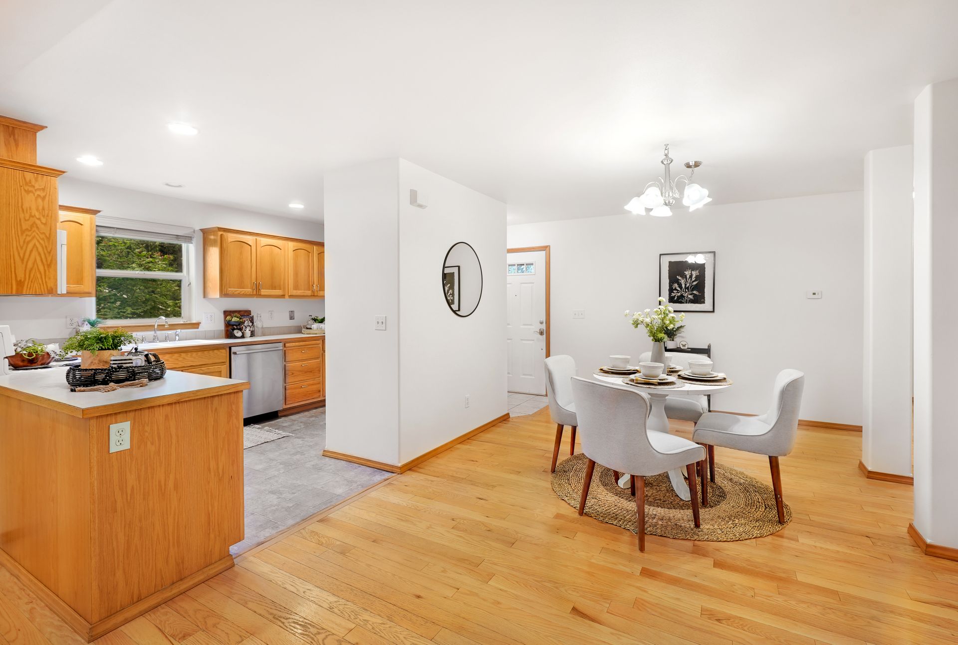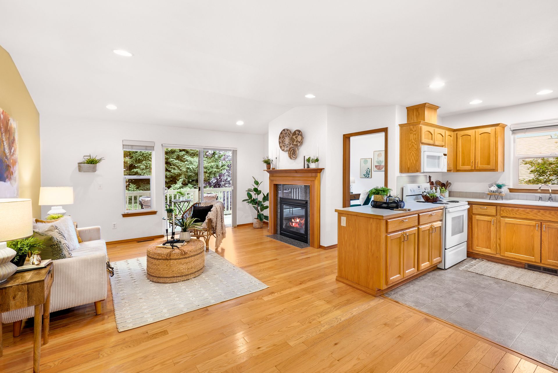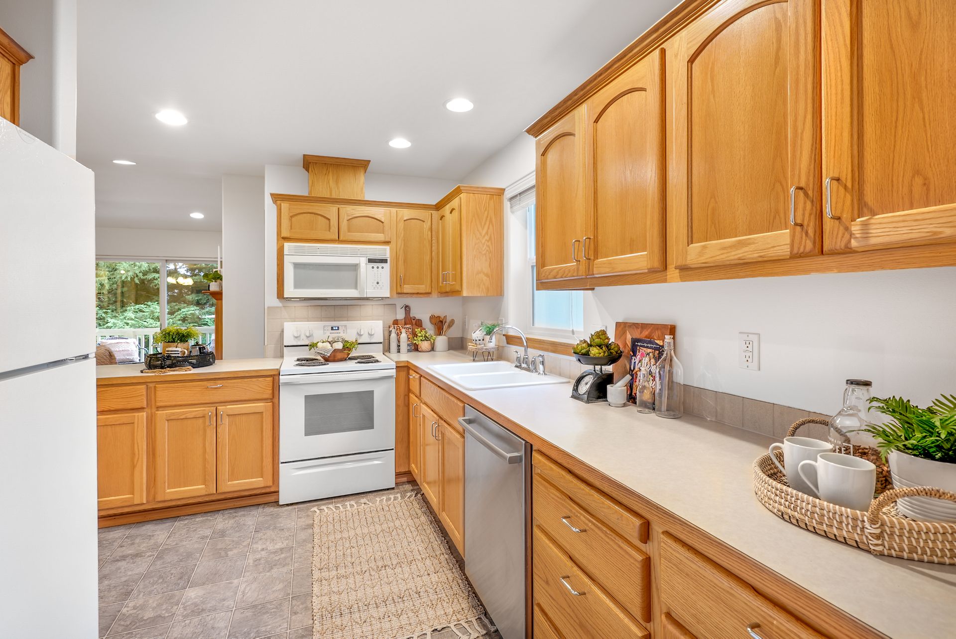 Tucked at the end of a quiet drive in a welcoming 55+ community, this charming rambler offers the perfect blend of privacy, comfort, and low-maintenance living. A darling front porch welcomes you inside, where gleaming hardwood floors flow throughout the bright and open living and dining areas. The well-appointed kitchen features ample prep space, a generous pantry, and seamless connection to the main living space, perfect for everyday ease and effortless entertaining. Step out onto your private deck for a peaceful morning coffee or quiet afternoon retreat. The sun-filled primary suite is a true sanctuary, complete with a large walk-in closet and private ensuite. Two additional bedrooms and a full guest bath provide flexible space for visitors or a home office. A spacious utility room connects to the garage for added convenience. Enjoy access to the community garden, beautifully maintained walking trails, clubhouse, free RV or boat storage, and all the thoughtful amenities this peaceful neighborhood has to offer. This home is ideally located under 5 minutes from downtown Mount Vernon, daily conveniences, and weekend activities are just moments away.