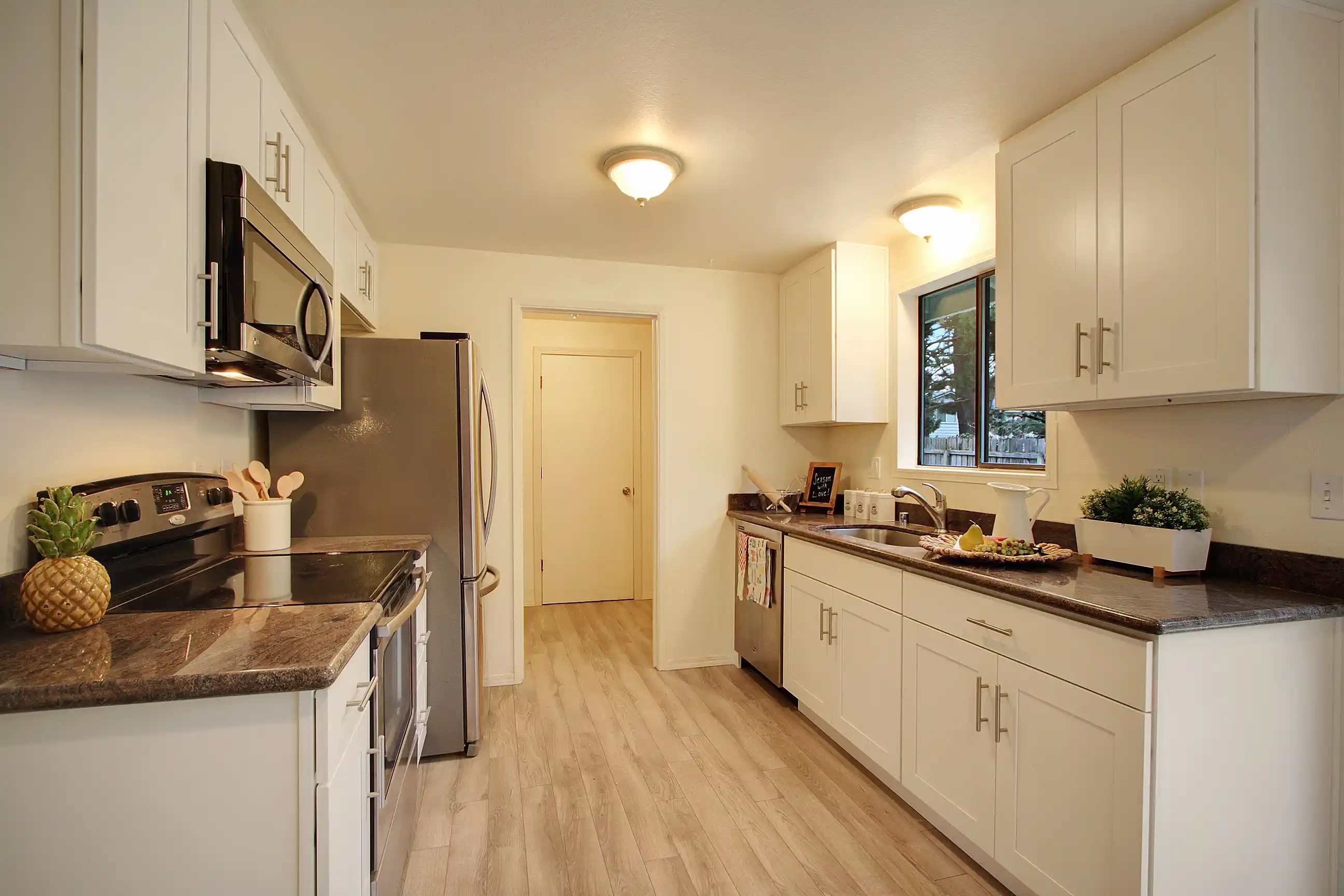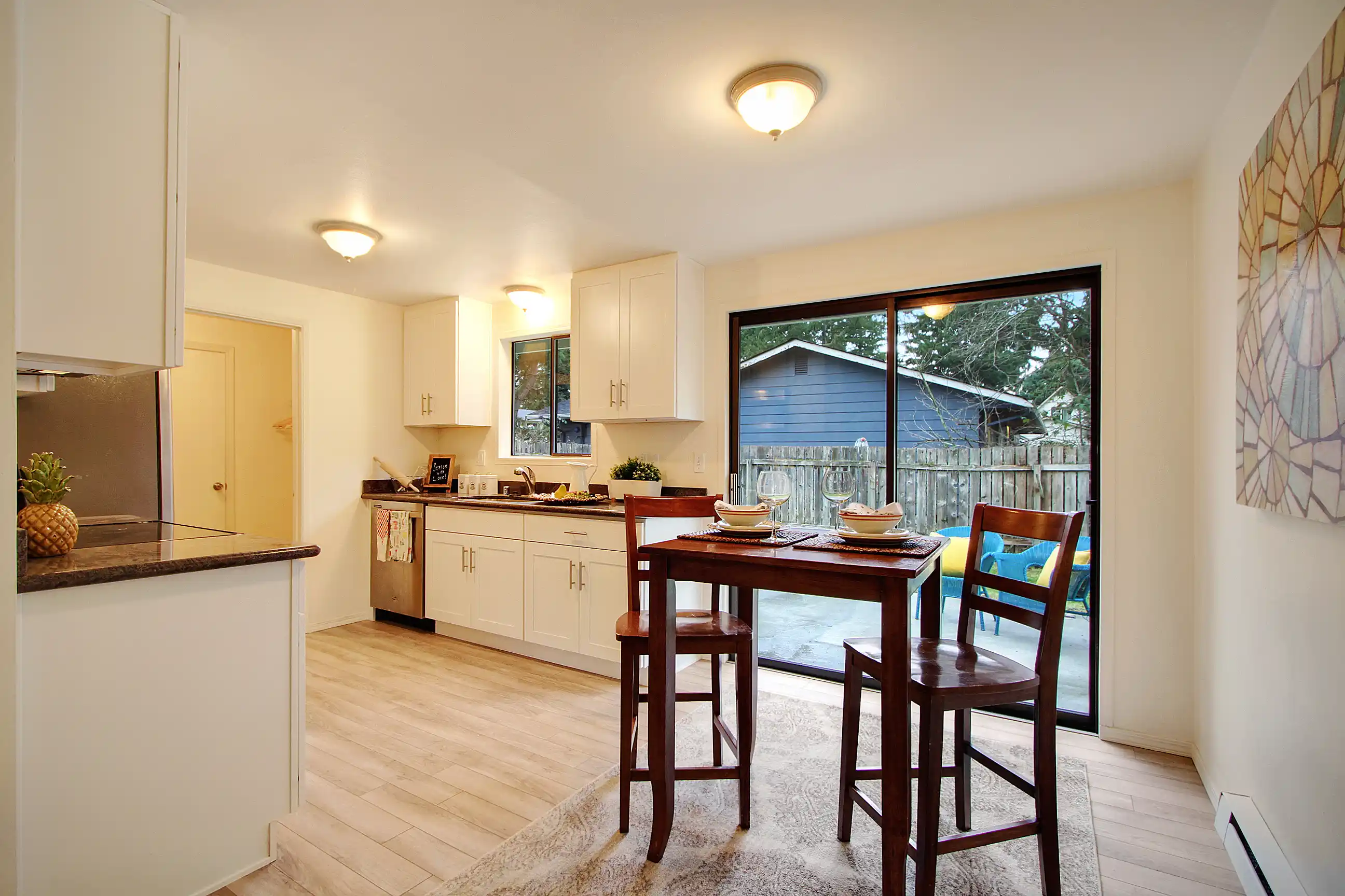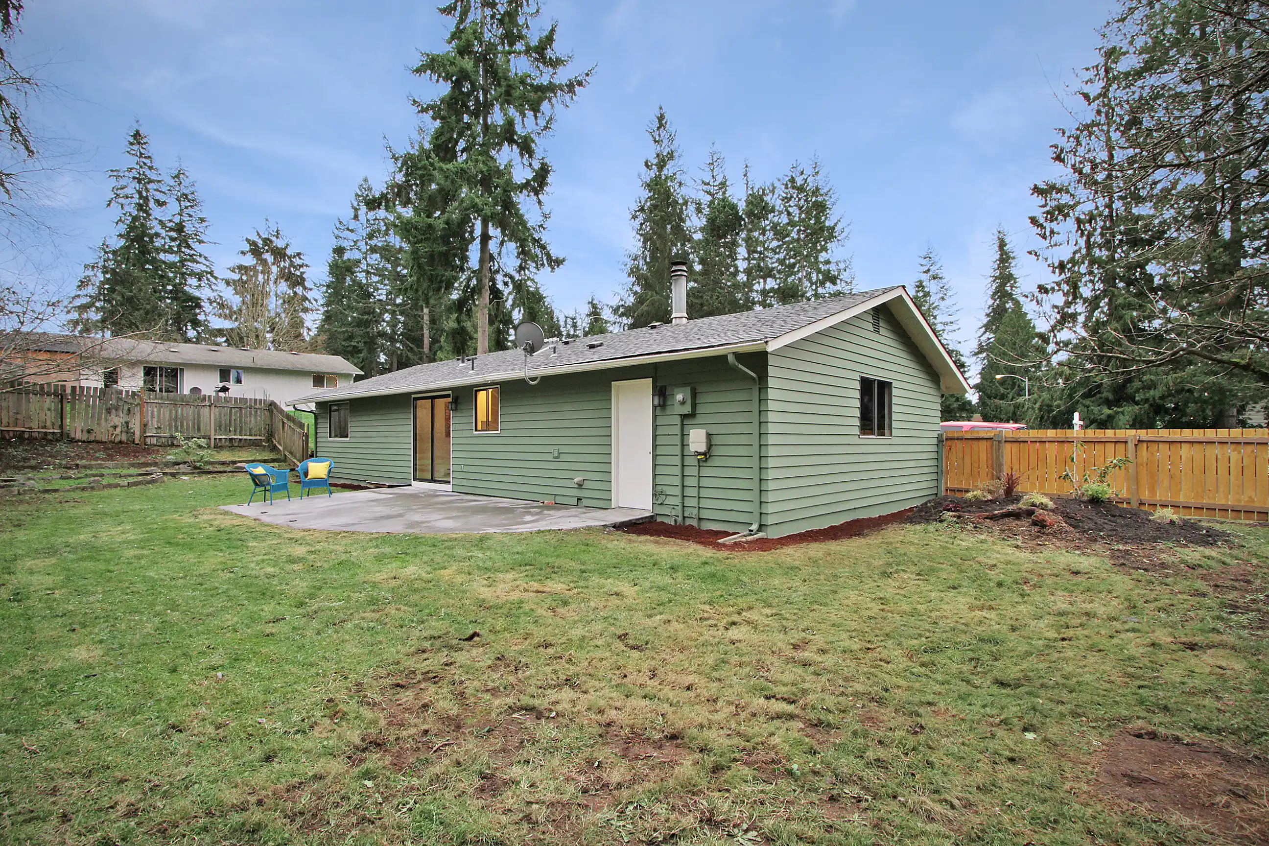 This newly updated rambler provides a clean slate for fresh new design. Enjoy cozying up to the fireplace in the living room or preparing a meal for guests with the new stainless steel appliances. Other features include a large pantry and hardwoods throughout the main living space. Outdoors is a large fenced backyard that offers great entertaining opportunity for you and your future guests. Easy access to I5!