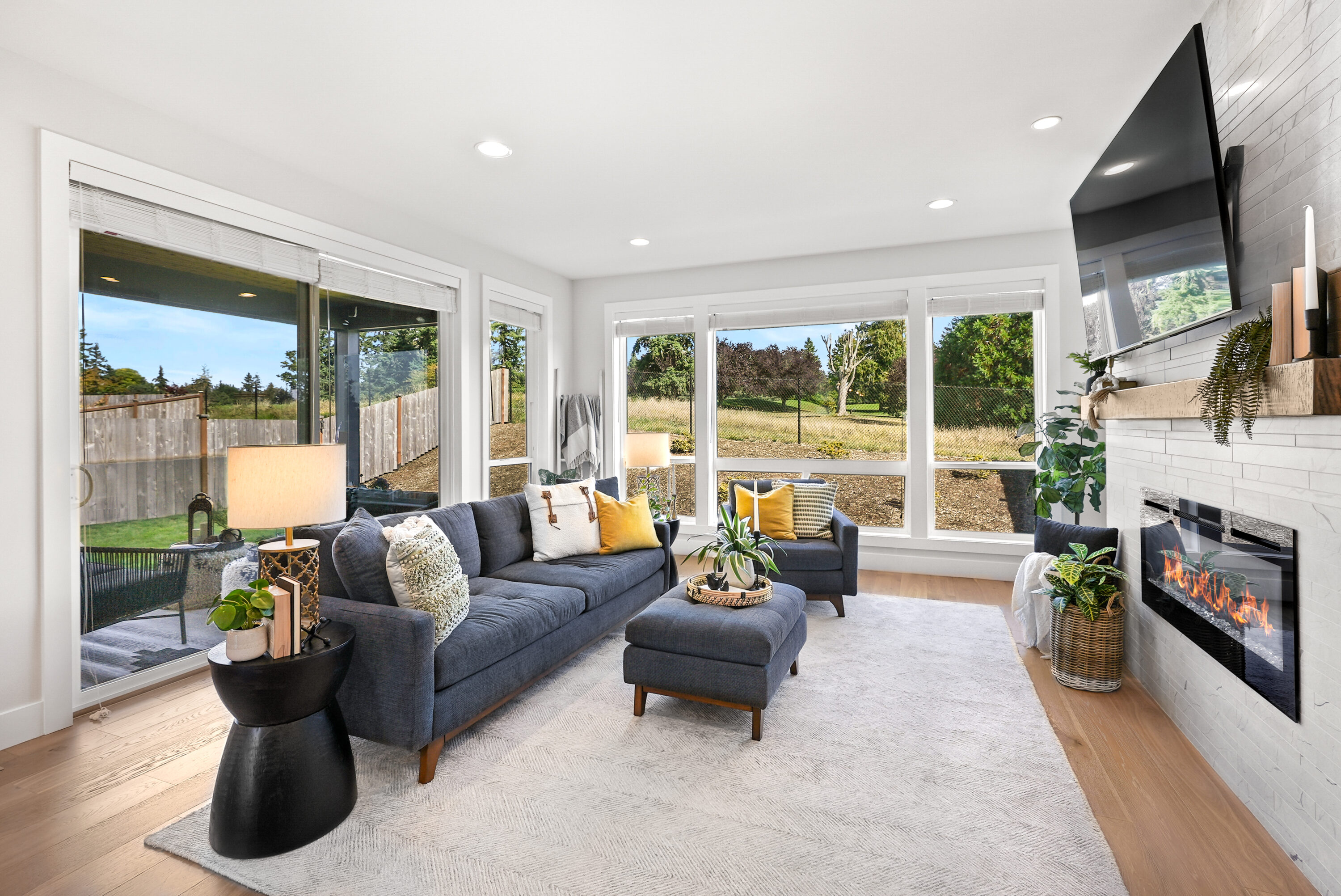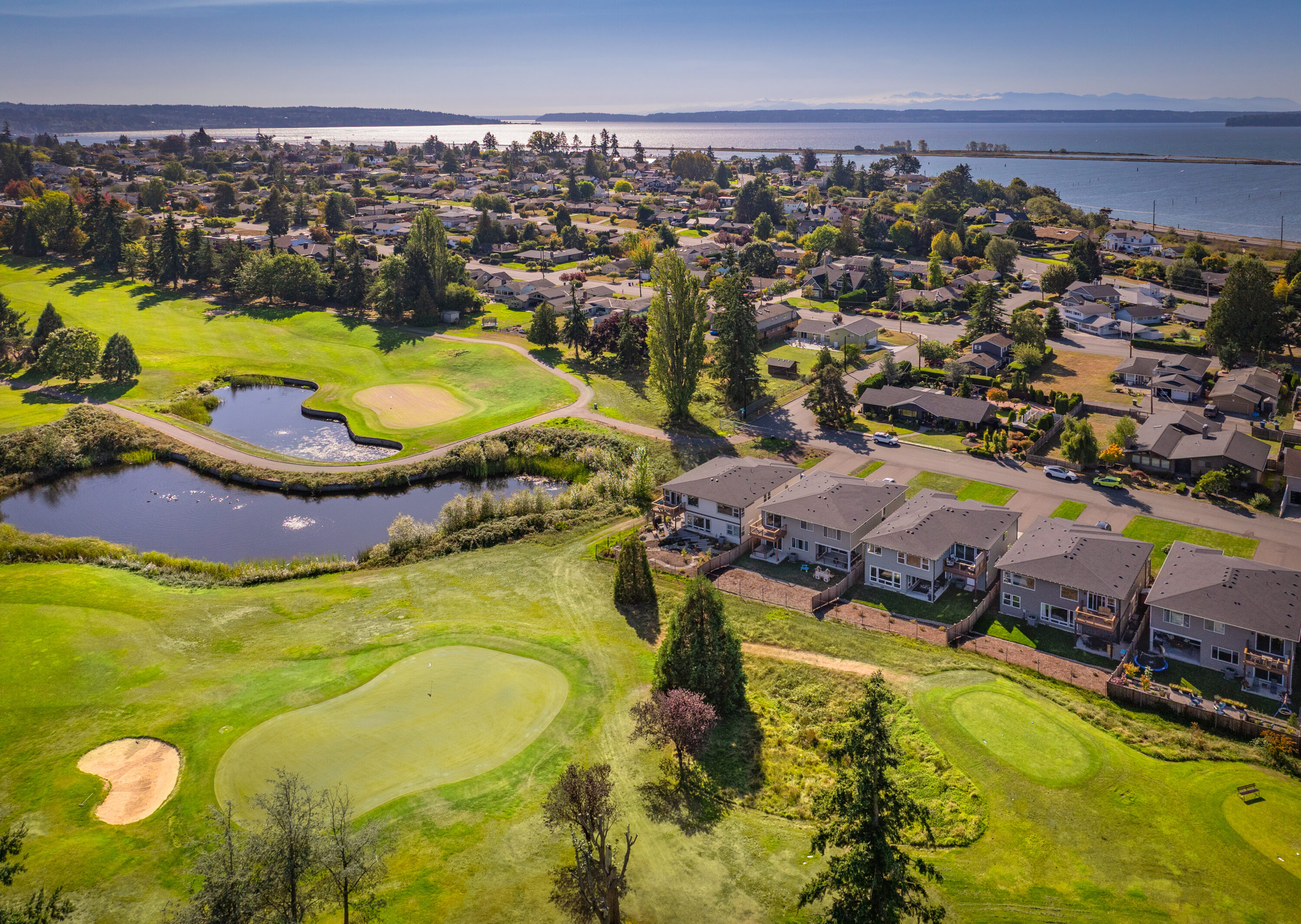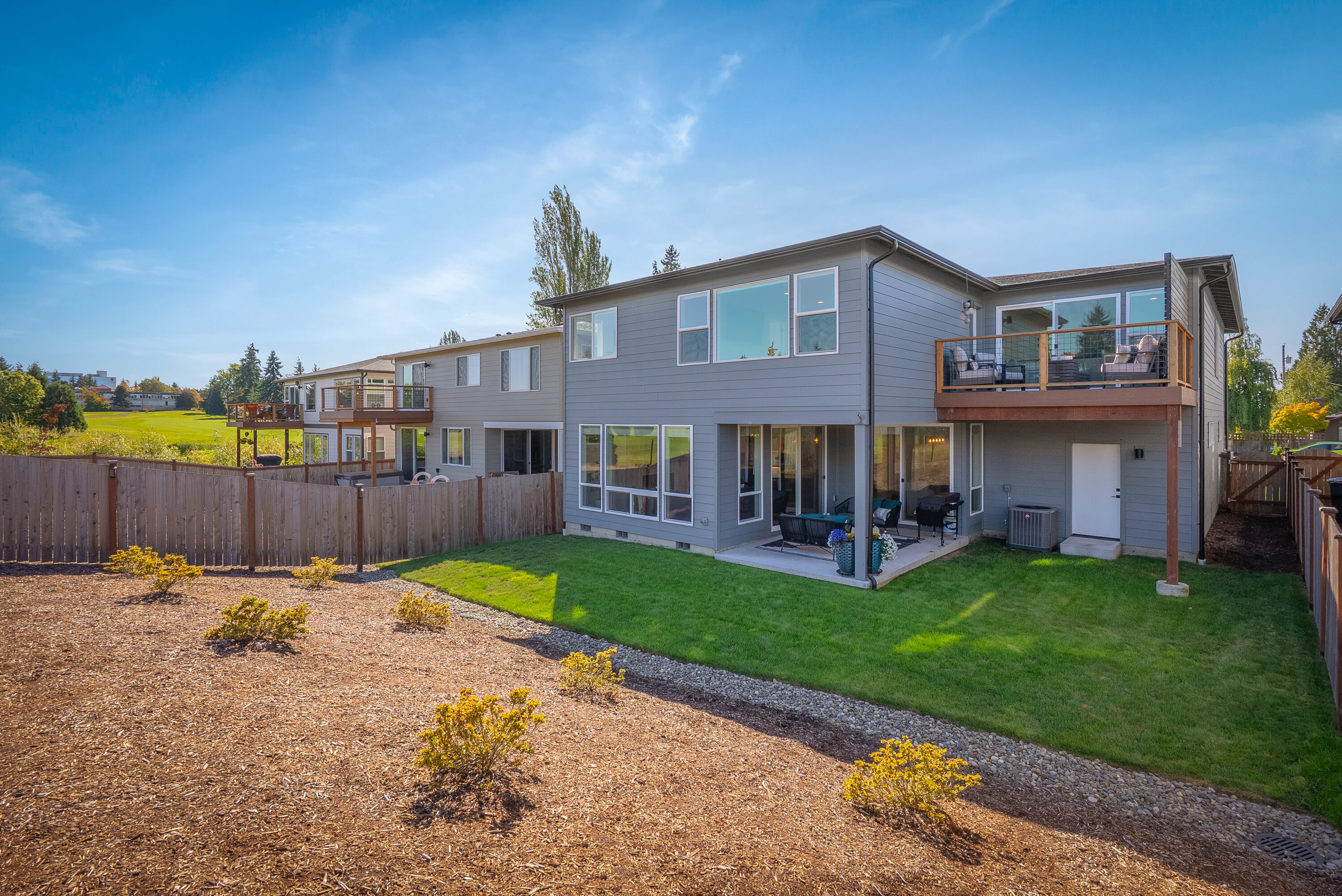 Nestled along the Legion Golf Course with sweeping views and endless sunset skies, this like-new modern home blends thoughtful design with everyday convenience. You will love living just minutes from the Everett Marina, local dining, and waterfront parks, along with proximity to I-5 and Highway 2 for ease of your daily commute. Inside, soaring ceilings and bright open spaces set the tone, with a main floor bedroom and a nearby ¾ bath, offering versatility for guests or multigenerational living. The heart of the home unfolds in the open concept living, dining, and kitchen area with an oversized island, soft-close cabinetry, quartz countertops, walk-in pantry. The living room is centered around a cozy fireplace, while a mudroom off the 3-car garage makes daily routines a breeze. Upstairs, a spacious bonus room connects to an upper deck overlooking the golf course, creating the ultimate entertaining space. The primary suite is a private retreat with a walk-in closet, a serene 5-piece bath with a soaking tub, and direct deck access. Three additional bedrooms, a full bath, and a convenient laundry room complete the upstairs. Outside, enjoy covered outdoor living, RV and boat parking, and access to American Legion Park and Grand Avenue Park just a short walk away.