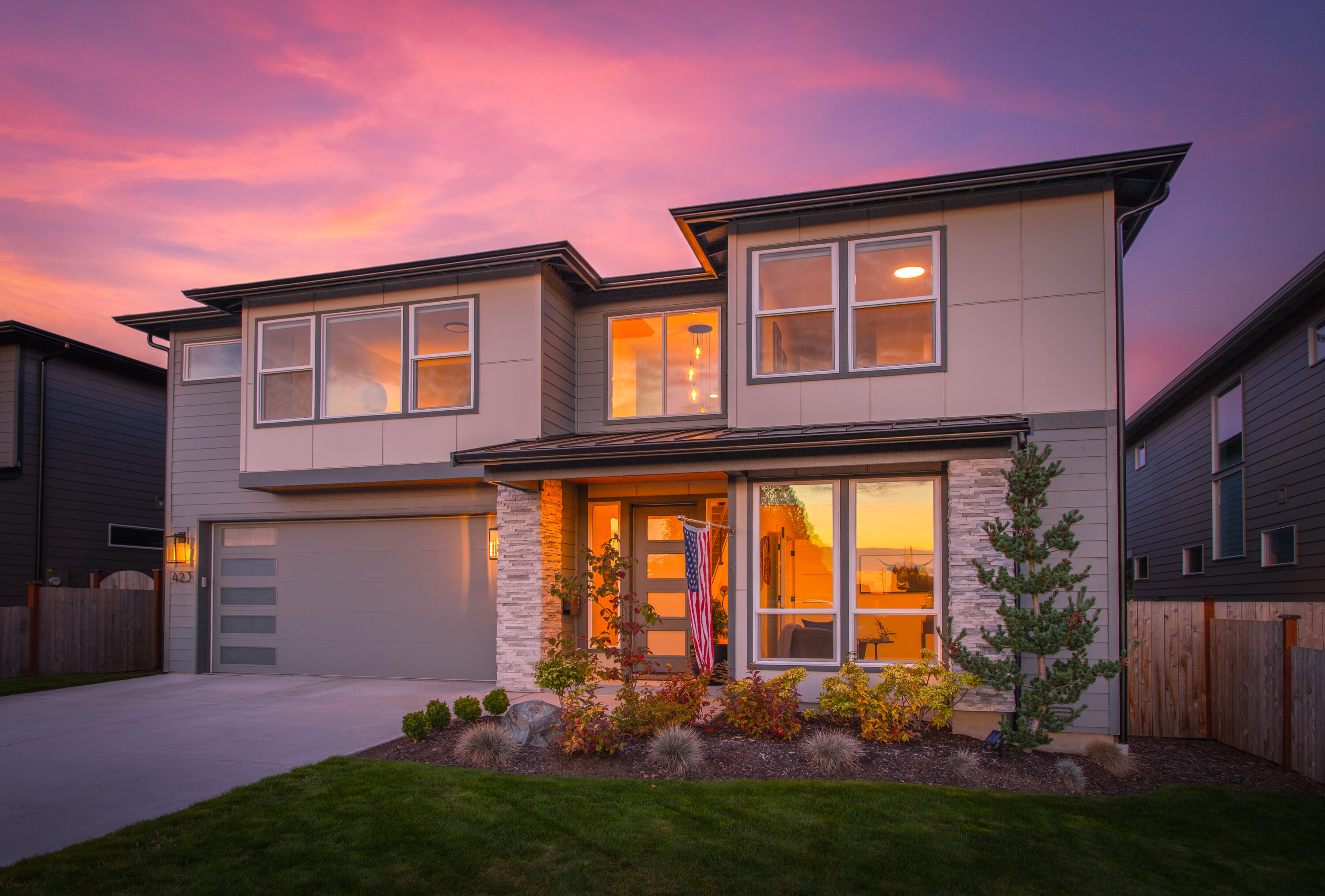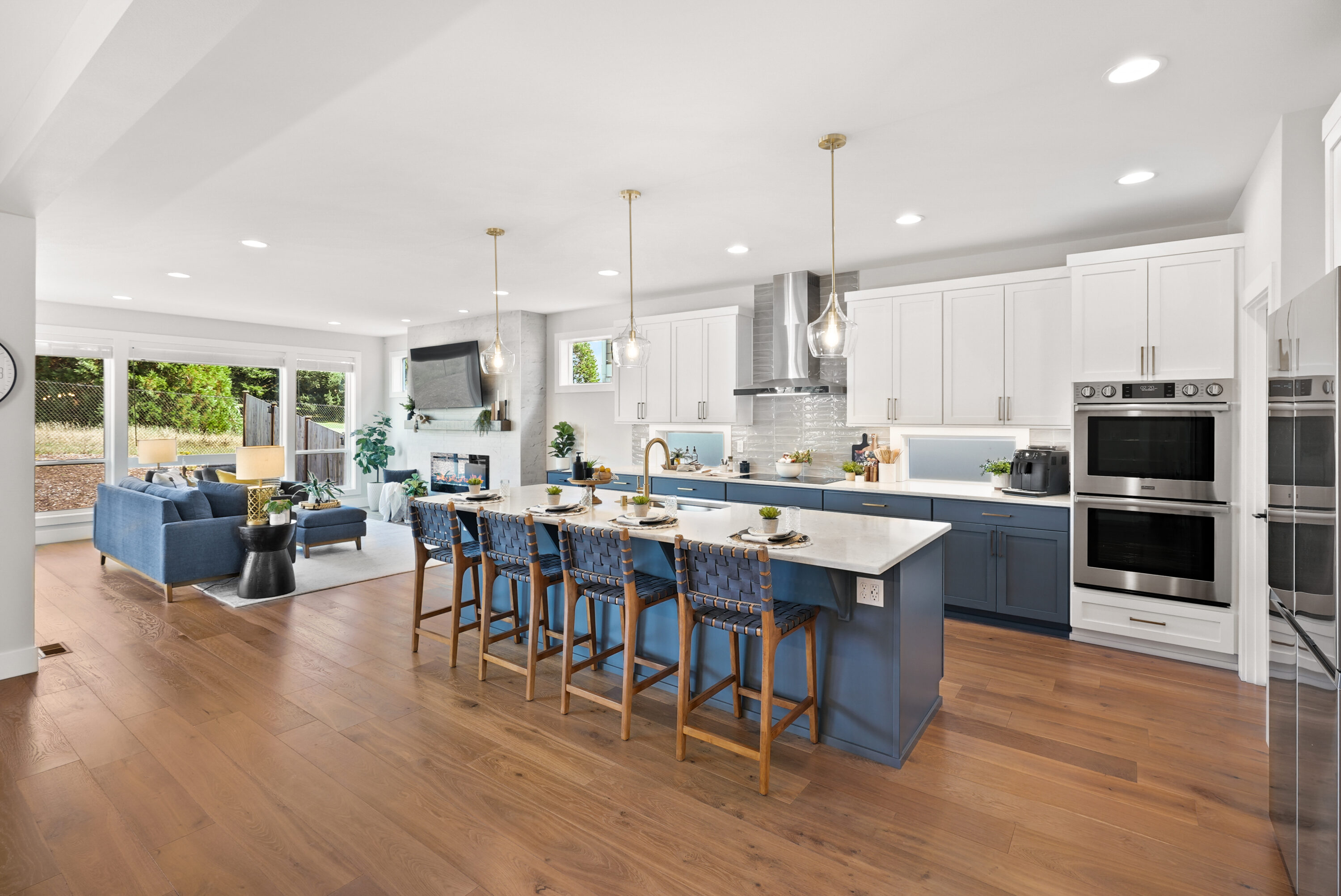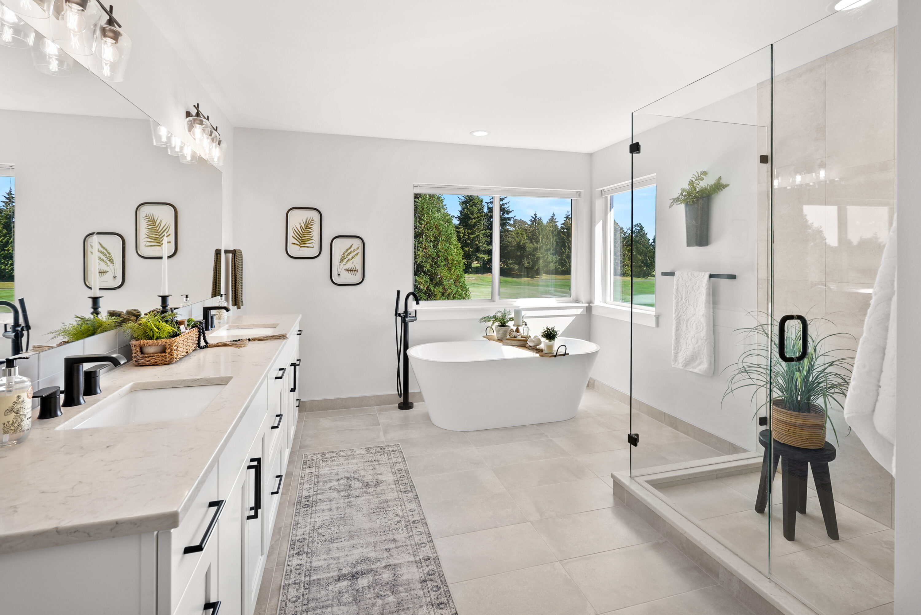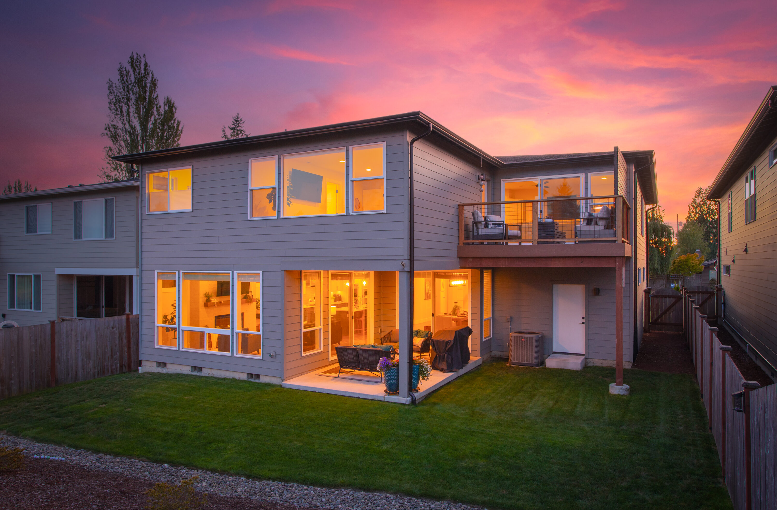 Nestled along the Legion Golf Course with sweeping views and endless sunset skies, this like-new modern home blends thoughtful design with everyday convenience. You will love living just minutes from the Everett Marina, local dining, and waterfront parks, along with proximity to I-5 and Highway 2 for ease of your daily commute. Inside, soaring ceilings and bright open spaces set the tone, with a main floor bedroom and a nearby ¾ bath, offering versatility for guests or multigenerational living. The heart of the home unfolds in the open concept living, dining, and kitchen area with an oversized island, soft-close cabinetry, quartz countertops, walk-in pantry. The living room is centered around a cozy fireplace, while a mudroom off the 3-car garage makes daily routines a breeze. Upstairs, a spacious bonus room connects to an upper deck overlooking the golf course, creating the ultimate entertaining space. The primary suite is a private retreat with a walk-in closet, a serene 5-piece bath with a soaking tub, and direct deck access. Three additional bedrooms, a full bath, and a convenient laundry room complete the upstairs. Outside, enjoy covered outdoor living, RV and boat parking, and access to American Legion Park and Grand Avenue Park just a short walk away.