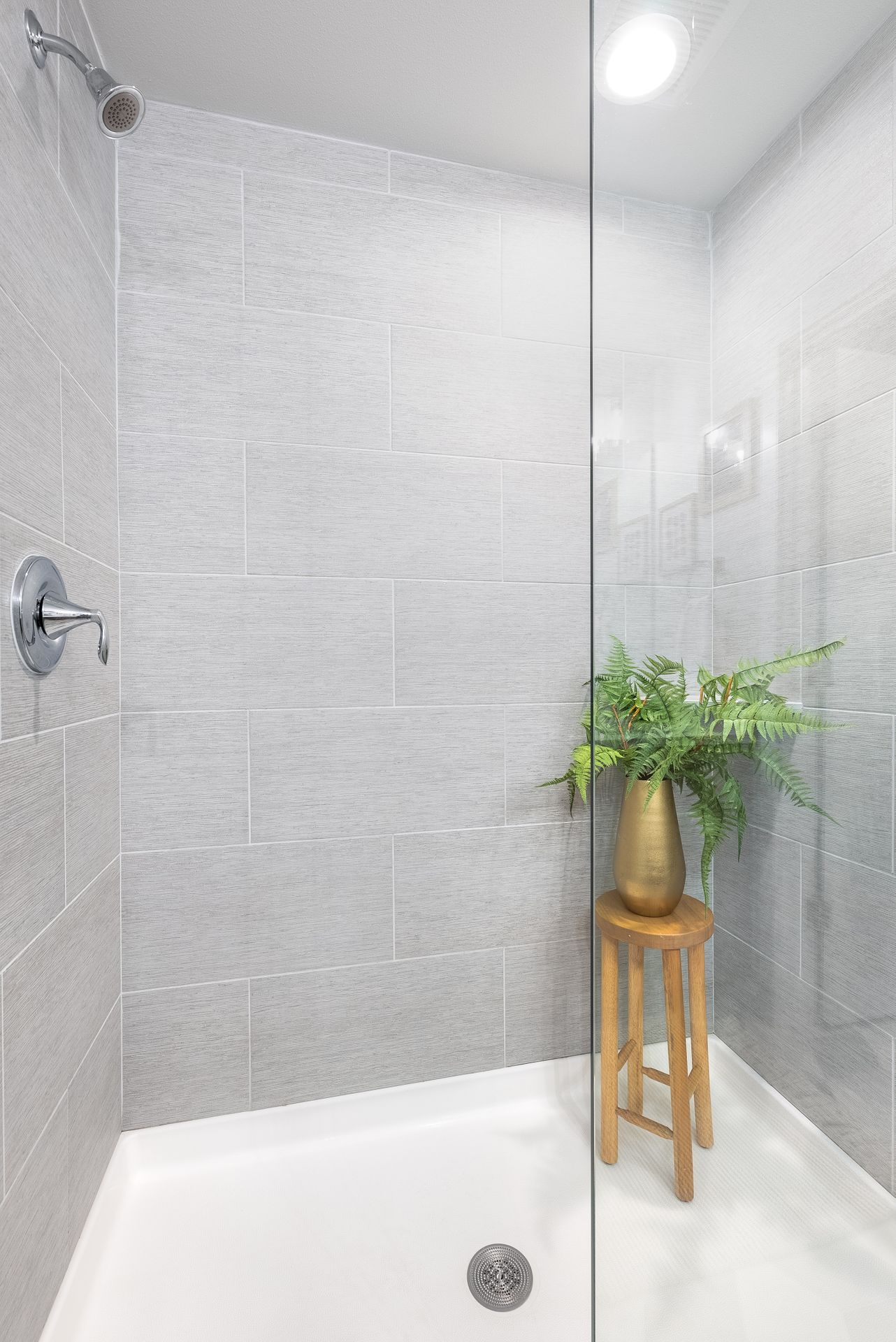 The lower level offers an inviting entry, a spacious two-car tandem-style garage with extra space for storage, or even a home gym. The main floor, centered by a gorgeous statement floor-to-ceiling tile fireplace, blends each living space to create a warm and inviting atmosphere, perfect for relaxing and entertaining. The chef’s kitchen has an oversized island with quartz countertops, sleek upgraded Bellmont cabinetry, and stainless steel appliances.
