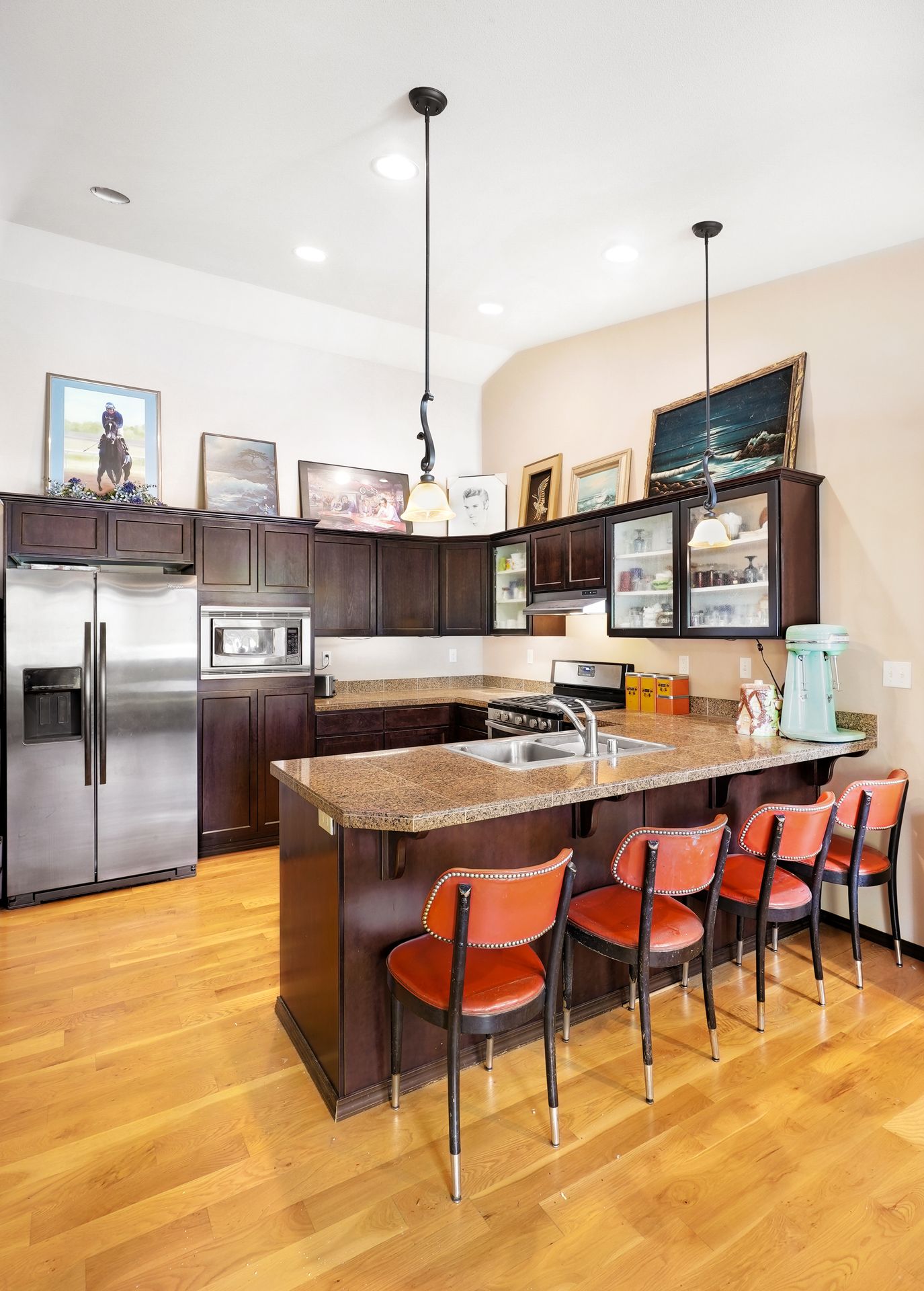 The home’s layout is surrounded around the light-filled great room, the perfect space for cherished gatherings. As you enter your spacious kitchen, you will be greeted by gleaming granite countertops and stainless steel appliances. Casual dining and lively conversations find their home at the kitchen’s peninsula. Picture countless evenings spent in the warm glow of the living room’s striking fireplace. Just outside, discover a generously sized, covered deck and fully enclosed yard, offering endless opportunities for outdoor enjoyment.