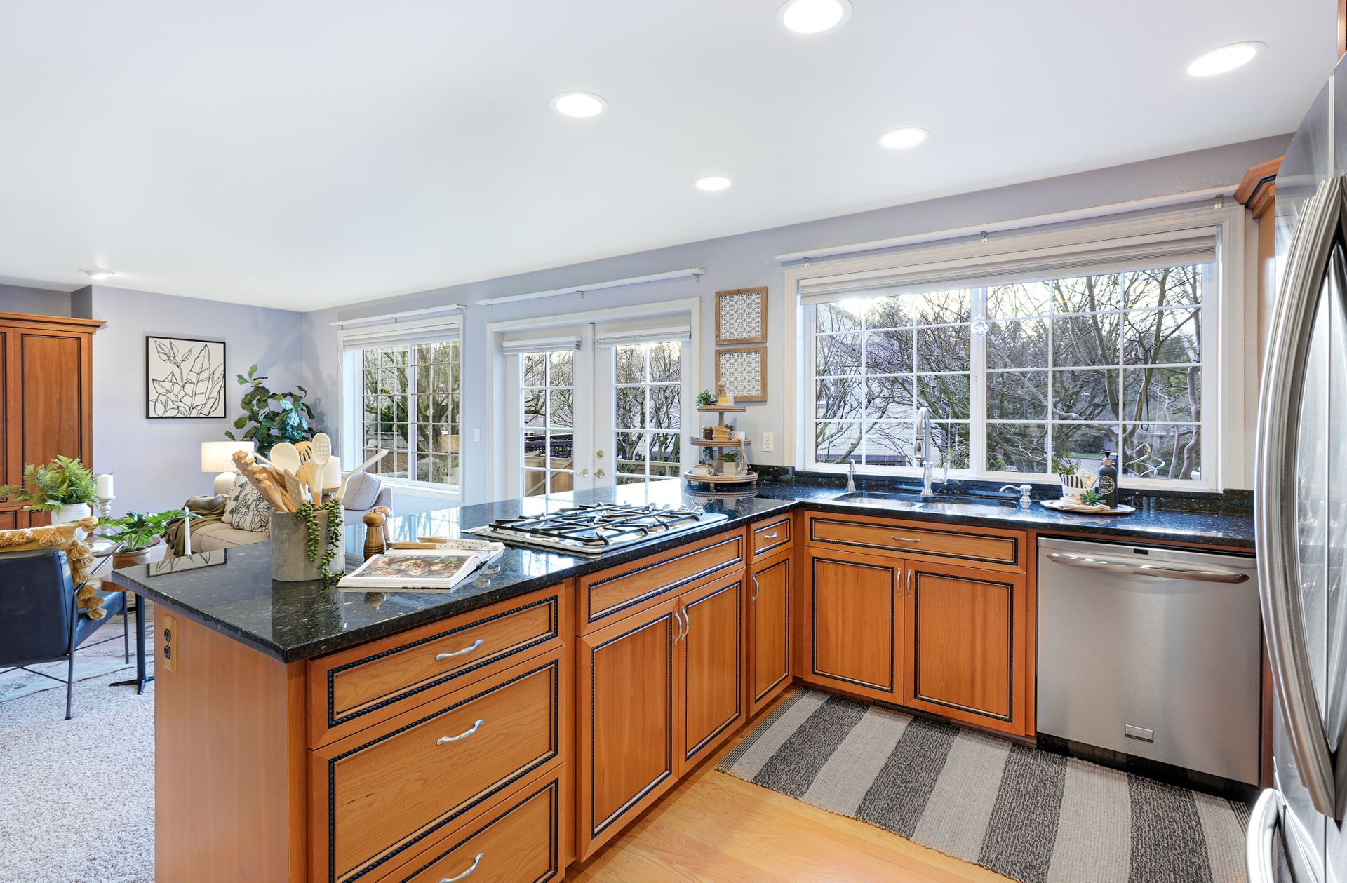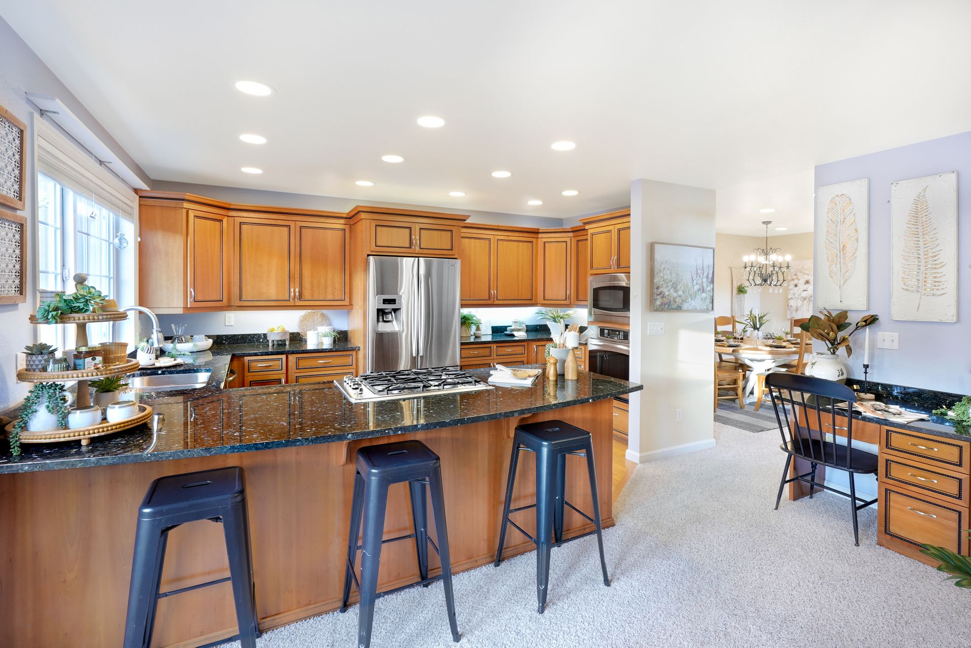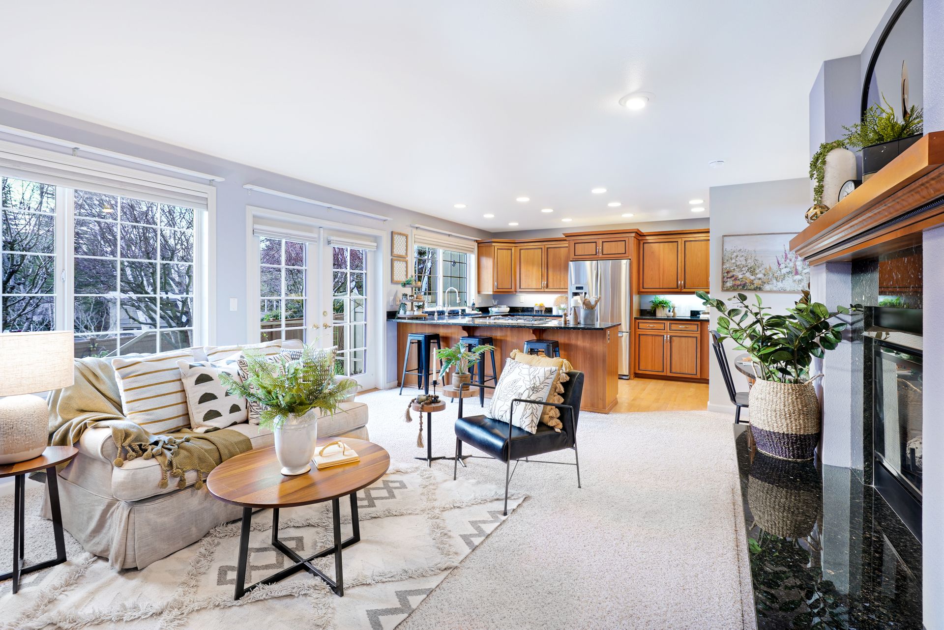This multi-level townhouse is ready to bring easy and modern living to your everyday life. You’re welcomed into this stunning home with abundant natural light, soaring cathedral ceilings, floor-to-ceiling two-story windows, and an entertainment-ready floor plan. You’ll find iridescent granite countertops, stainless steel appliances, and ample storage with under-cabinet lighting in the kitchen. Time will be well spent in either of the main living spaces, watching movies or cozied up with a good book near the dual-sided gas fireplace. The private, tranquil outdoor living space includes an expansive patio, perfect for hosting, grilling, and unwinding. Three bedrooms, each with large walk-in closets, await upstairs, including a guest bedroom with a personal deck and the primary suite with a refreshed five-piece ensuite with new luxury vinyl plank flooring and hardware. In addition to a two-car garage, the unit also includes one off-street parking spot. The home has access to the Normandy Park private beach area and, with a membership, also has access to the community tennis courts, pickleball courts, and two swimming pools. Best of all, it’s conveniently located just moments from shopping and restaurants.