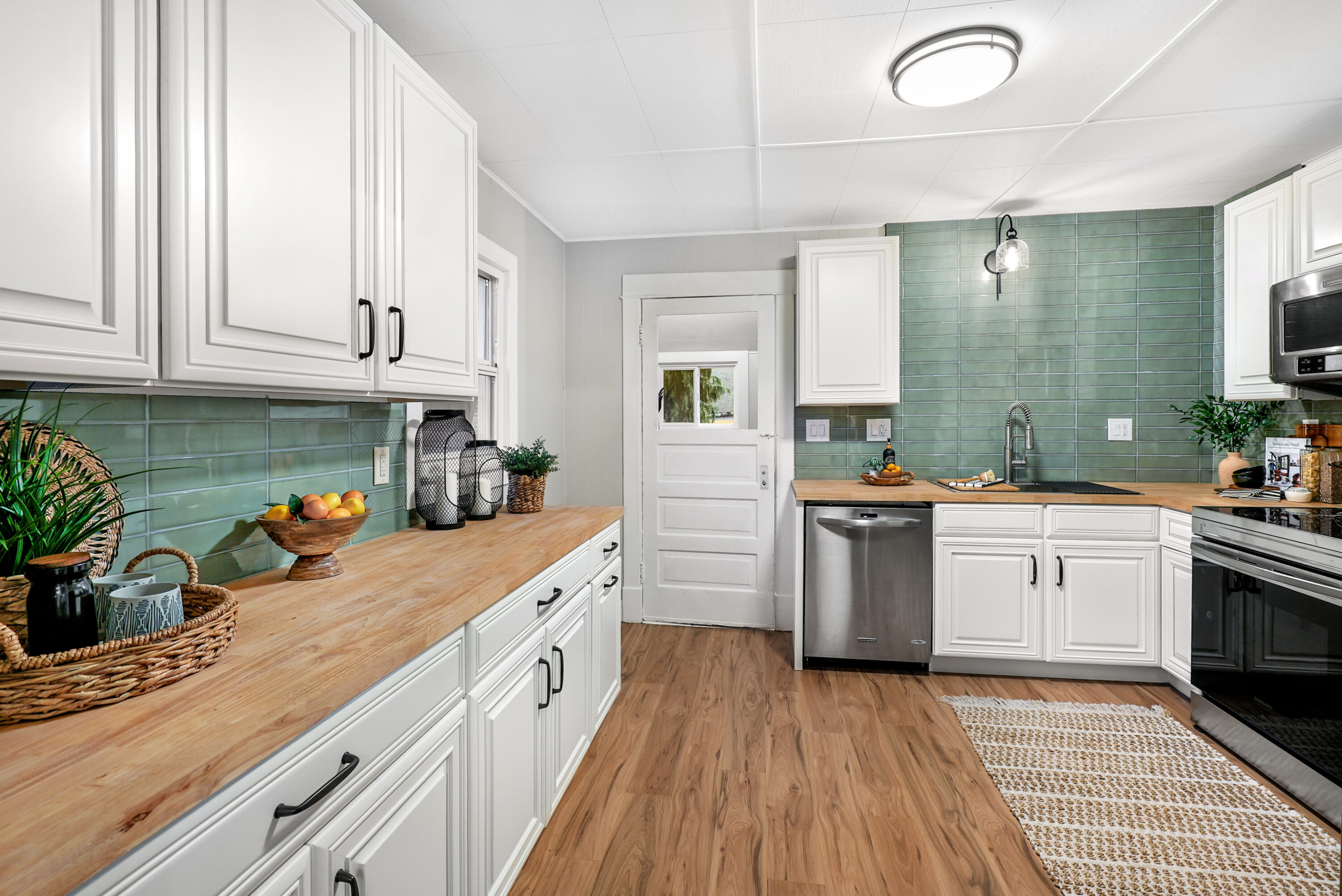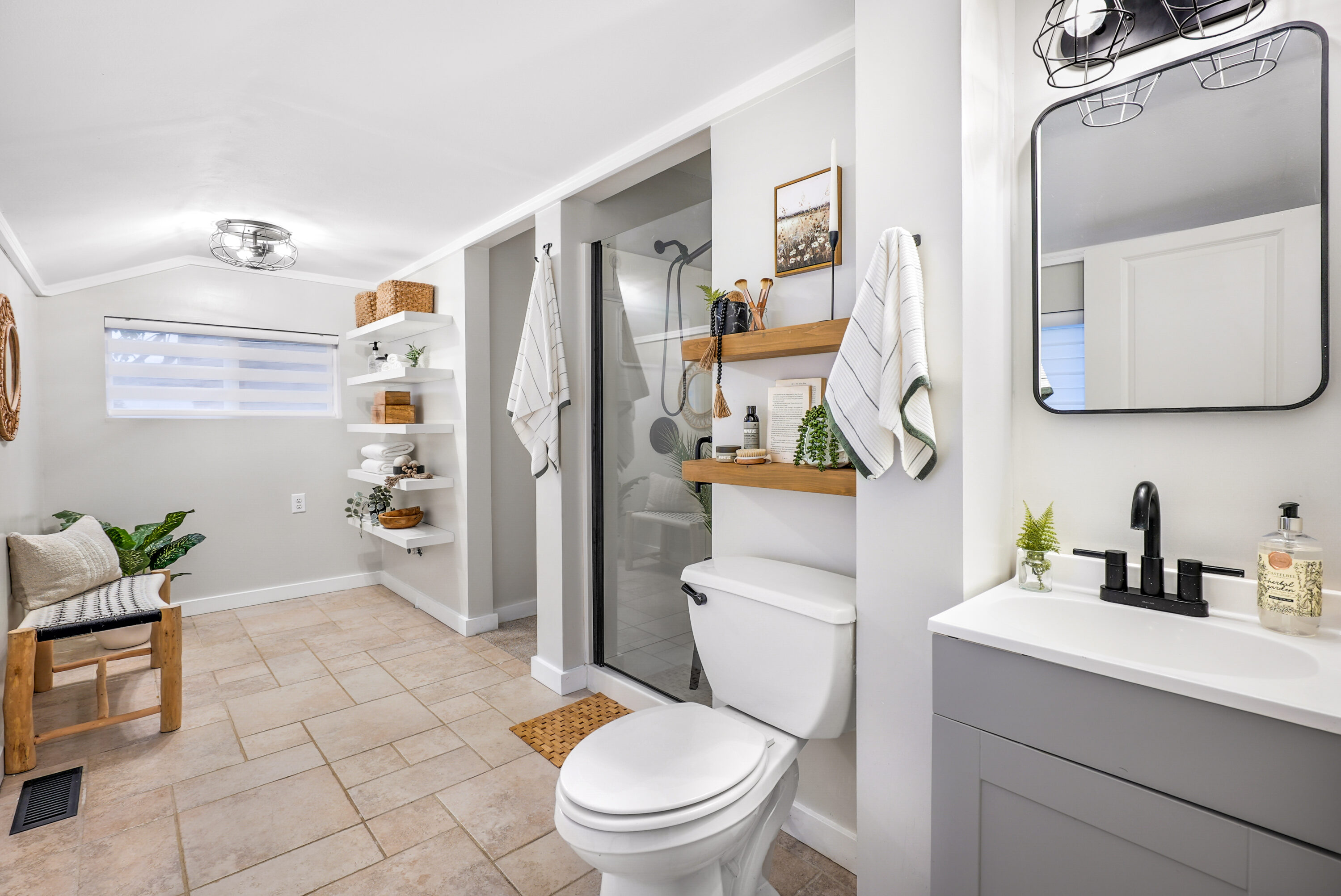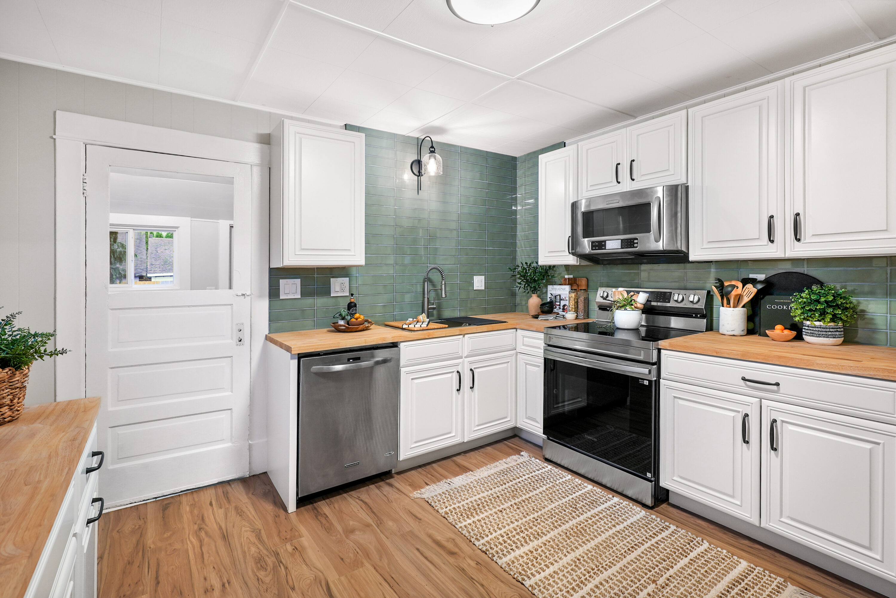 This charming Everett home seamlessly combines everyday comfort with modern style, with easy access to I-5 and Highway 2. Step inside from the covered front porch to find extensive updates throughout, starting with fresh interior paint, new LVP flooring, and thoughtful touches. The light-filled living room flows effortlessly into the dining area, creating the ideal space for hosting holiday gatherings or cozy nights in. The brand-new kitchen shines with sleek cabinetry, stylish tile, butcherblock countertops, and a new stainless steel appliance package. The first bedroom is accompanied by a beautifully updated hall bath featuring a new vanity, modern fixtures, and chic tile. The second bedroom includes an en suite bathroom that connects you to the laundry room with extra storage, plus direct access to the fully fenced backyard