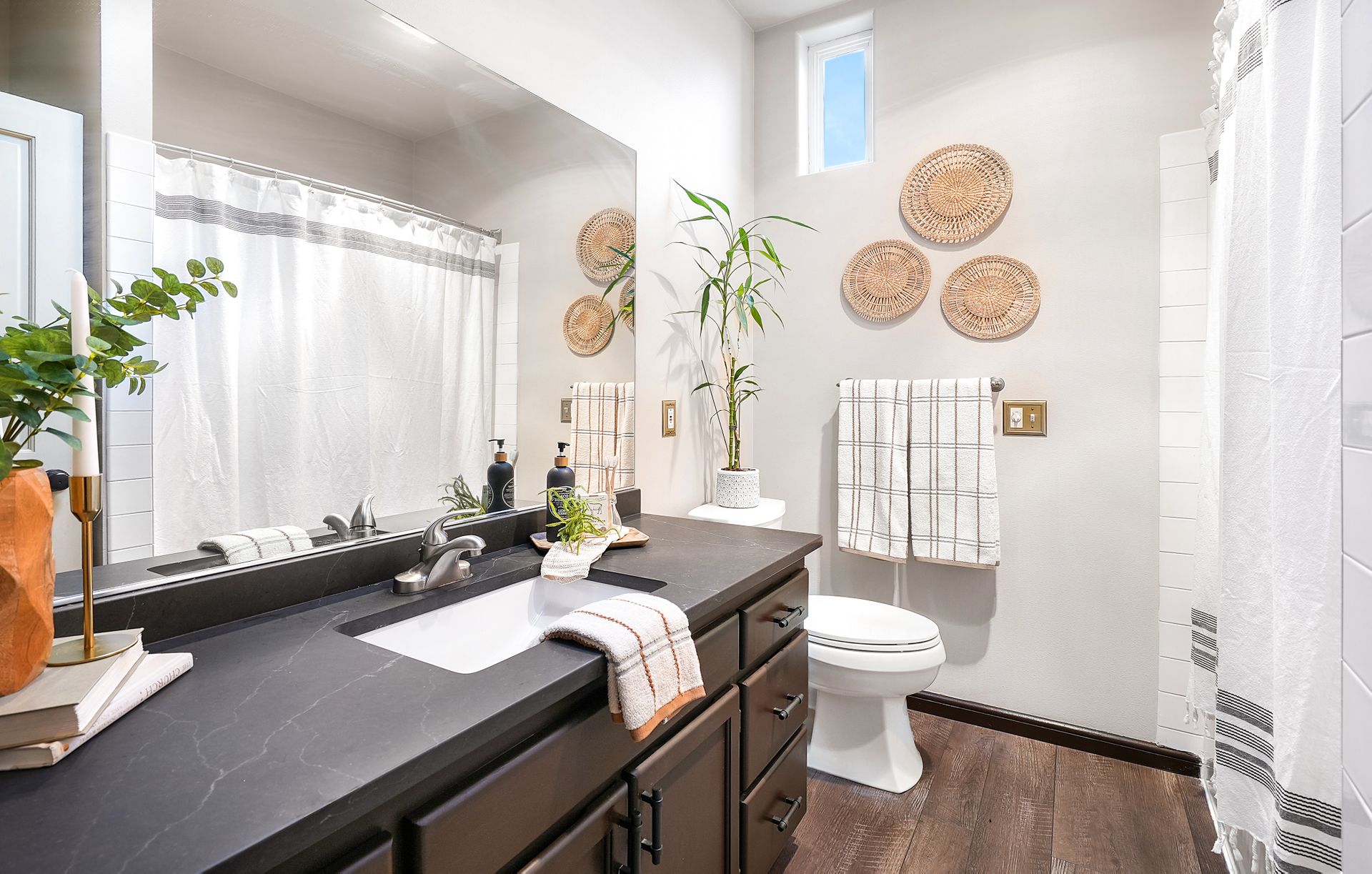 Retreat upstairs to the primary suite, which features a large walk-in closet with built-in shelving, a luxurious 5-piece ensuite bathroom with double vanity, quartz countertops, towel warming bar, rain shower head, and heated flooring. Two additional bedrooms with unique architectural details and an oversized bonus room to round out this magnificent floorplan.