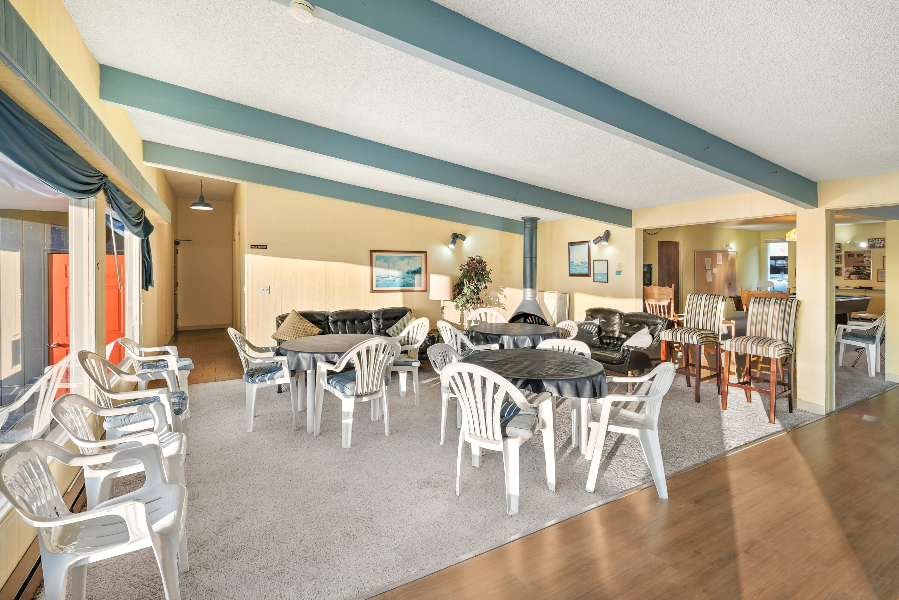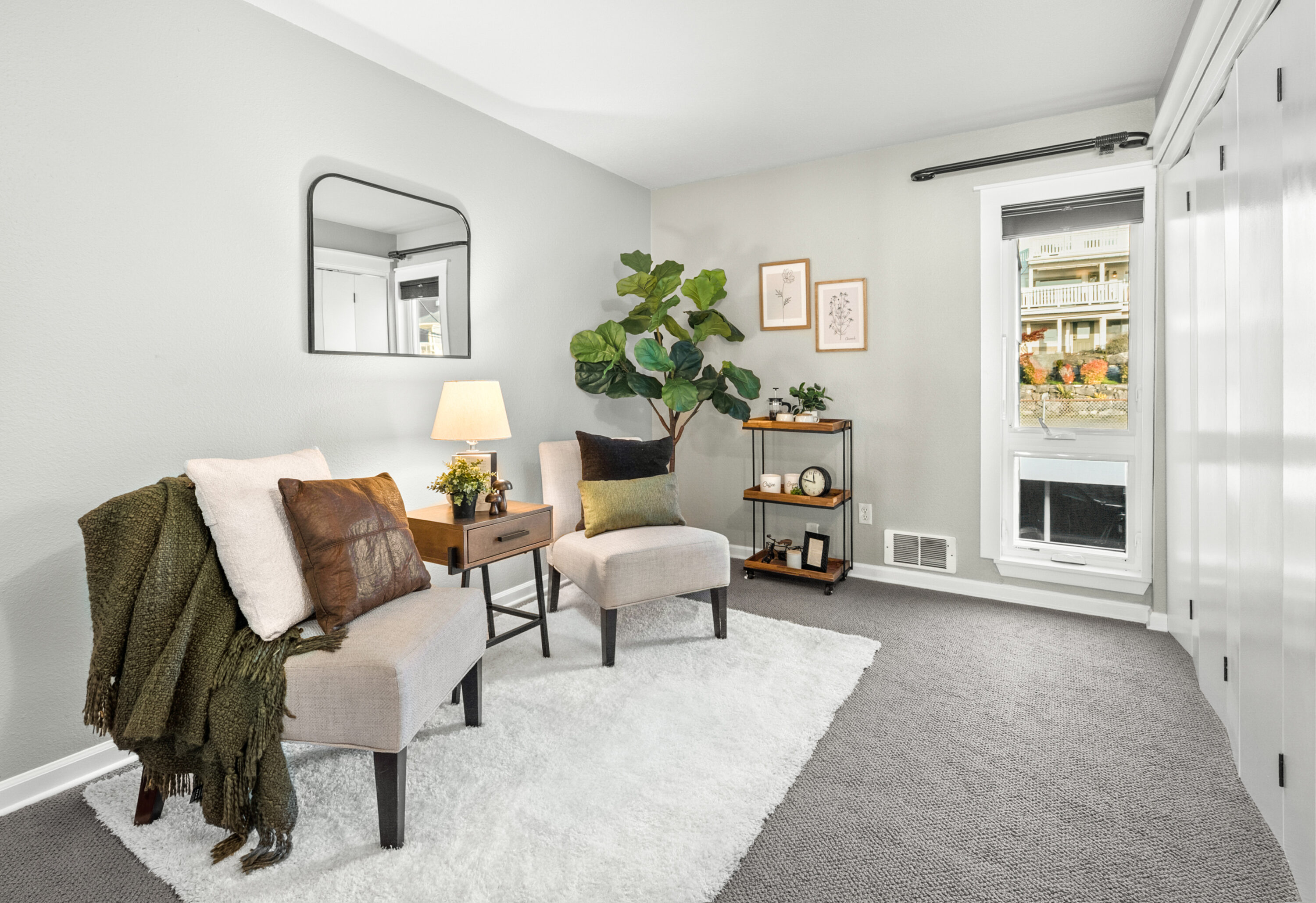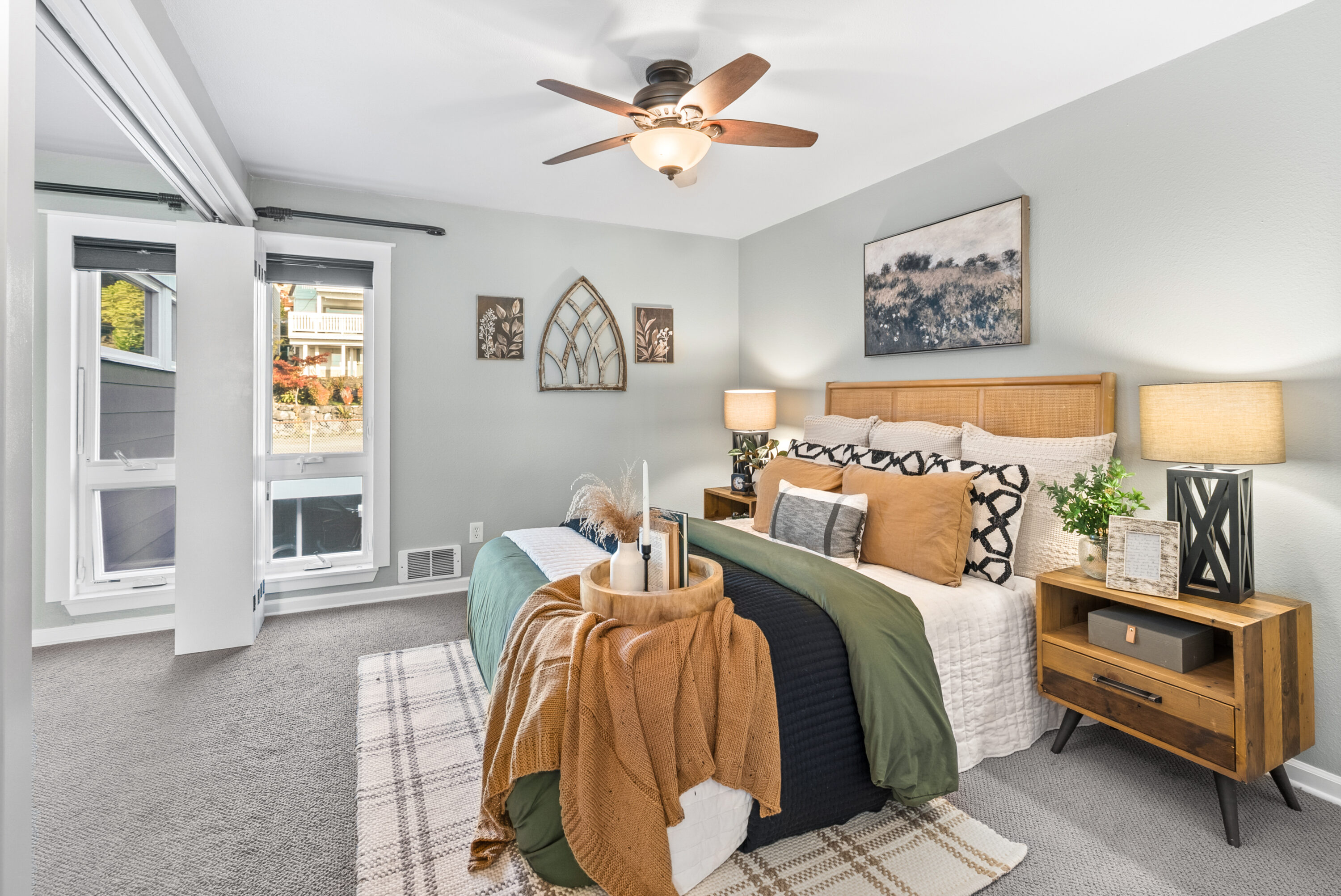 Step inside to find an inviting and airy living room anchored by a cozy fireplace. The updated kitchen features quartz countertops, a farmhouse sink, and ample storage, while the sunlit dining nook showcases panoramic views. Down the hall, two flexible bedrooms feature an accordion-style wall that can open to create a large primary suite or close to form a private second bedroom. The chic, updated bathroom and in-unit washer and dryer complete the thoughtful layout. Every major system has been upgraded with a complete studs-out rebuild in 2022, including a new roof, siding, insulation, windows, and more. A dedicated covered parking space and two storage units provide ease in your daily routine.