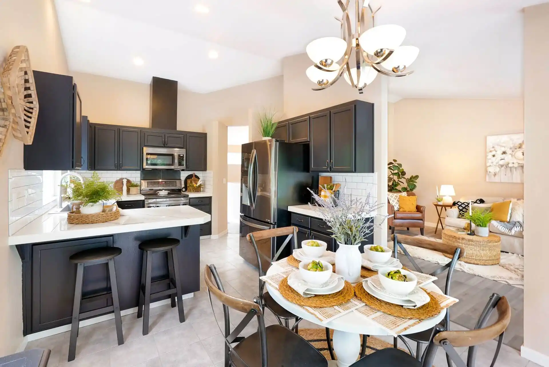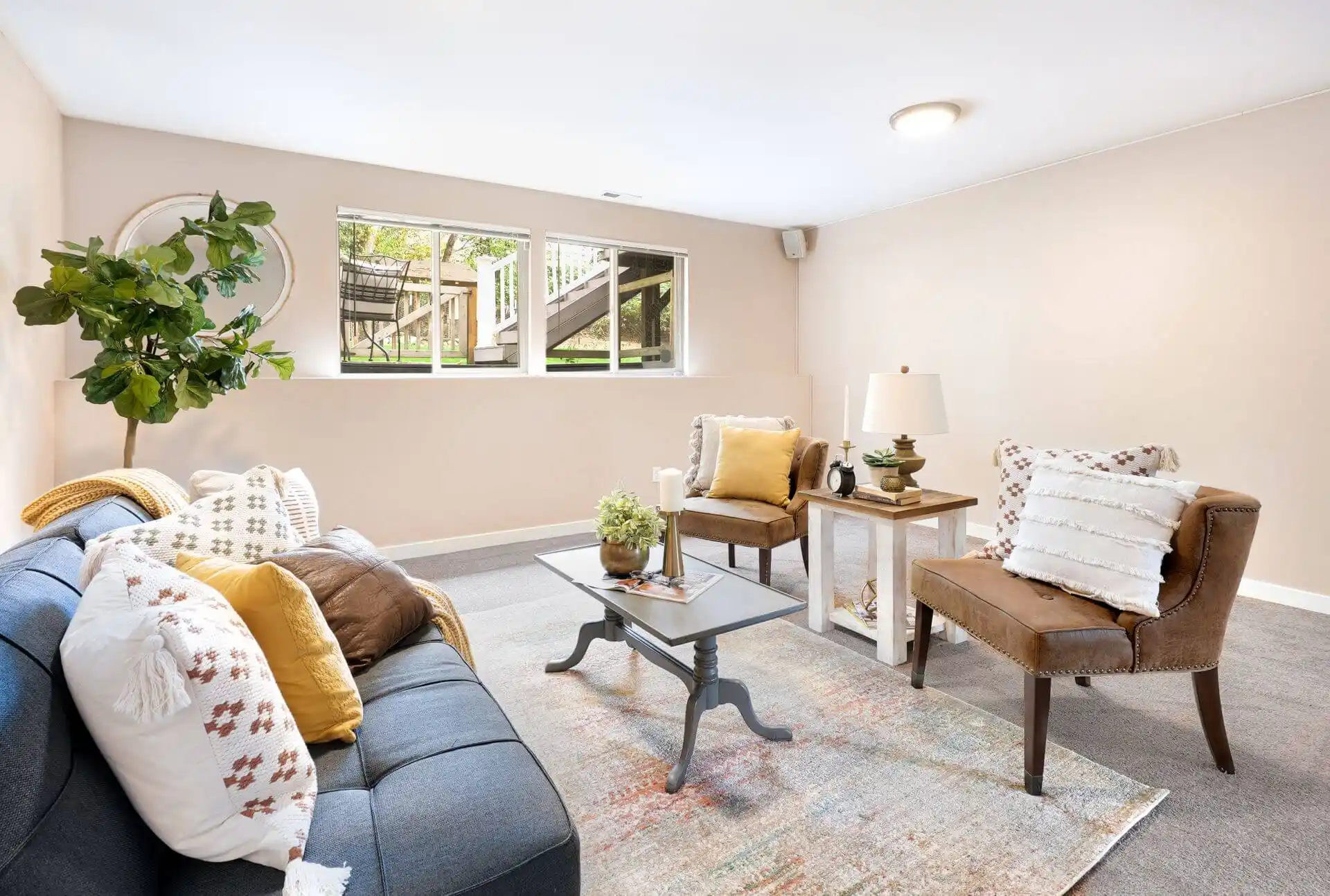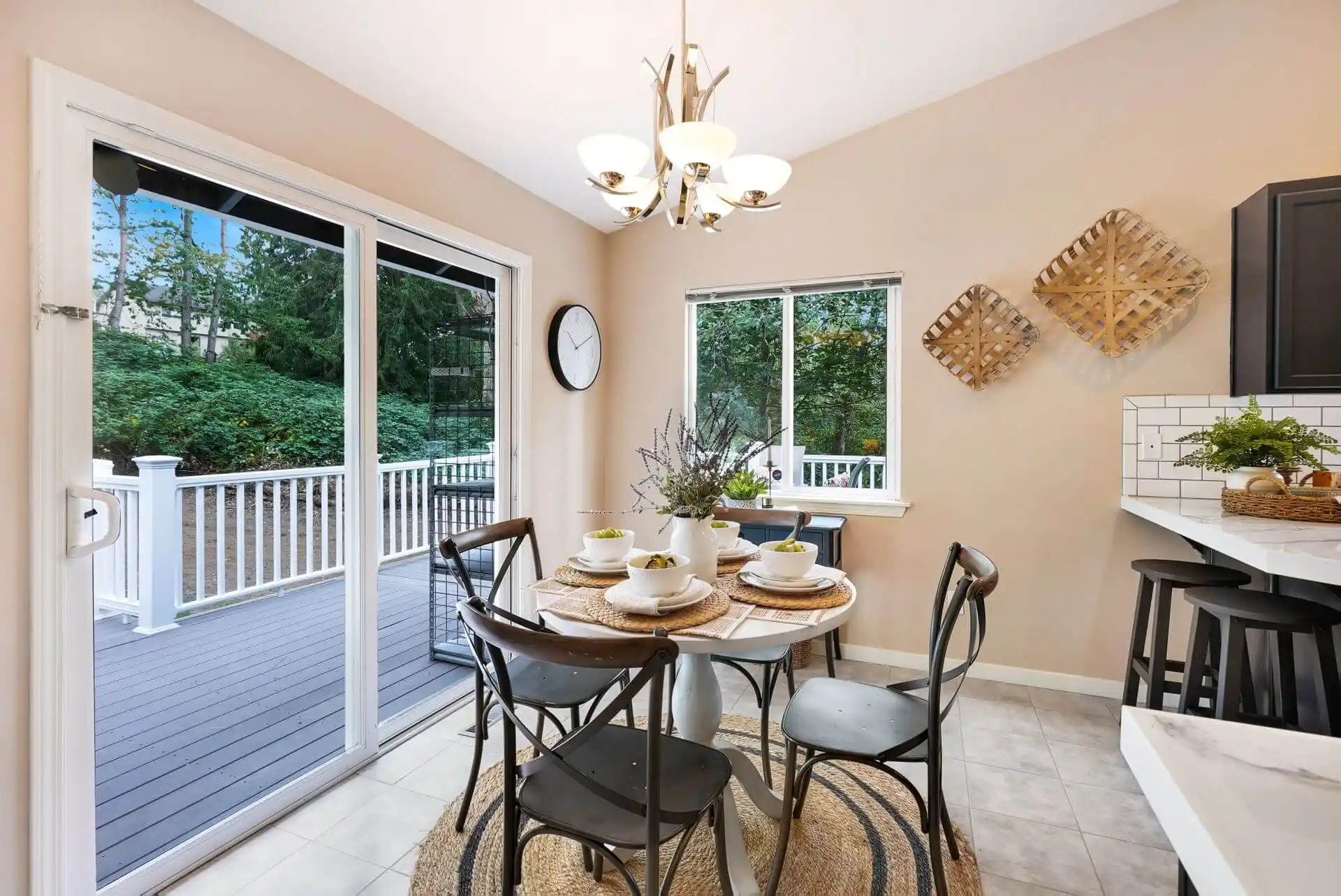 Updates that transformed this home include refreshing interior paint, contemporary fixtures, energy-efficient lighting, and new luxury vinyl plank flooring, including all three bedrooms upstairs. In the chef’s kitchen, you’ll find an LG black stainless steel appliance package, modern white countertops with marbling, and a high-end, durable graphite sink.