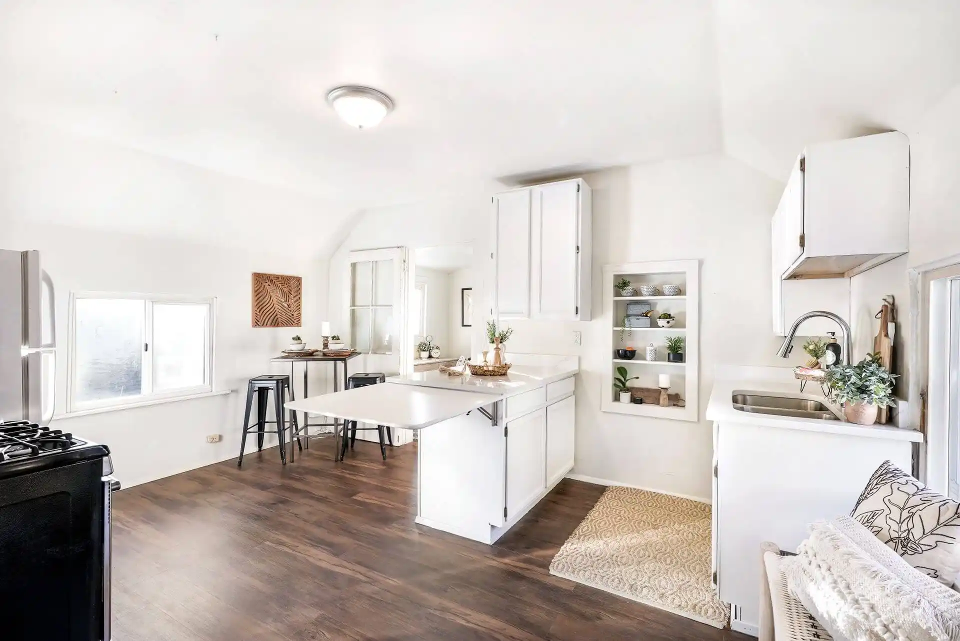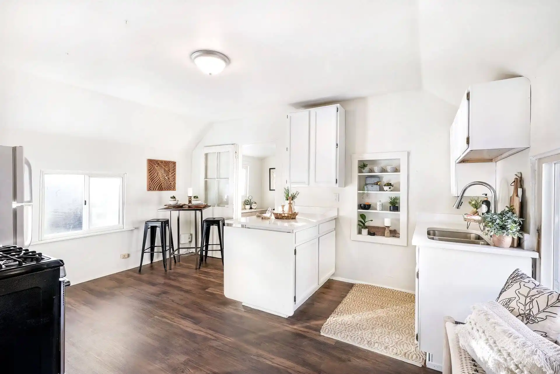 This charming, updated home boasts two units with private entrances in the historic Bayside neighborhood, creating endless investment opportunities – Live in one unit and rent the other, or rent both! Modern updates, including new carpet, luxury vinyl plank flooring, fresh interior, and exterior paint, blend effortlessly with the original charm. The 1,183 square foot lower unit includes two comfortable bedrooms, a spacious living area, and a recently reimagined kitchen with new soft-close cabinets, quartz countertops, and floating wood shelves. In the 952 square foot upstairs unit, you’ll find a spacious and bright bedroom with dual closets, a bonus space perfect for an office, and a kitchen that has freshly painted cabinets and new quartz countertops. Both units have their own washer and dryer, backyard access, and access to shared off-street parking. Just moments from multiple shopping centers, restaurants, local schools, including Everett High School and Everett Community College, the Everett Waterfront, and Bayside Park, making it ideal for short or long-term rentals.