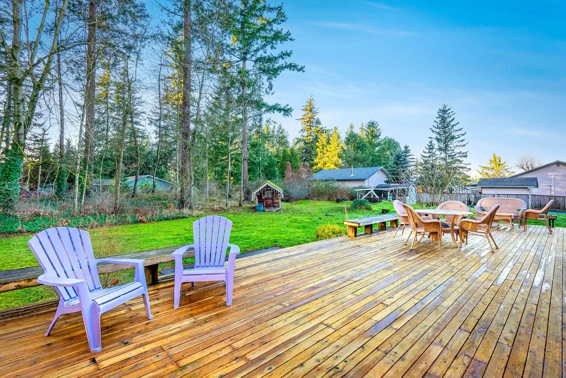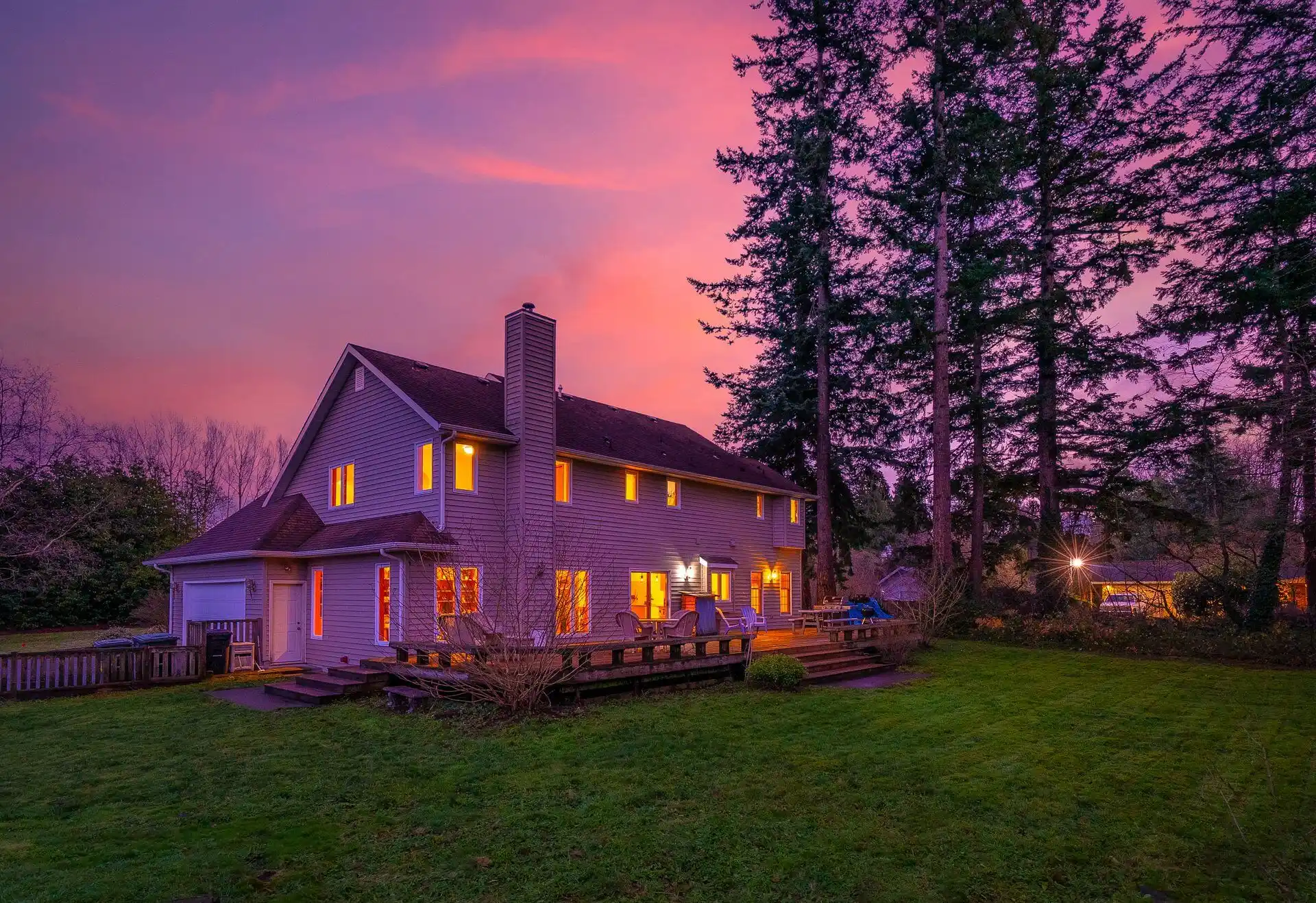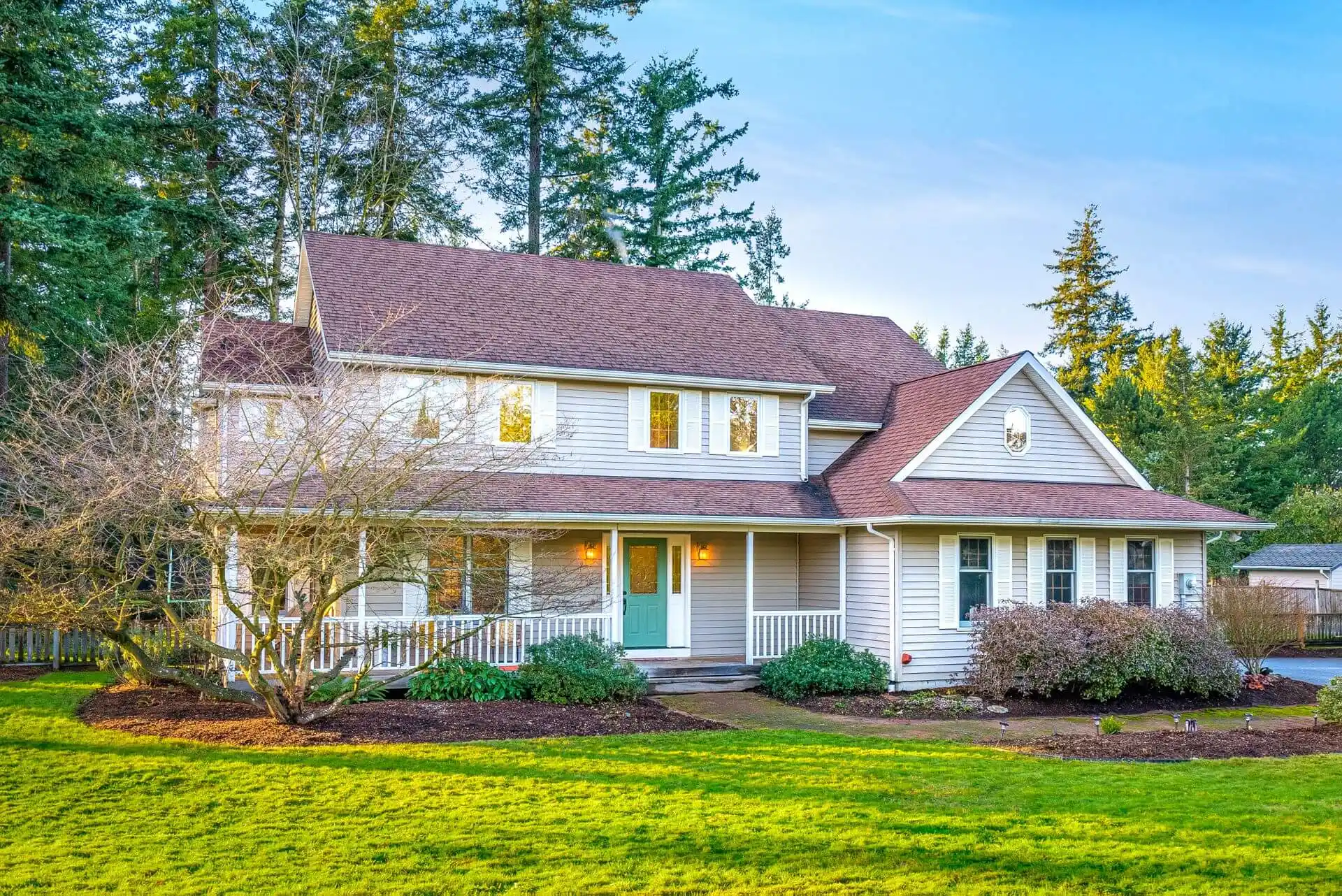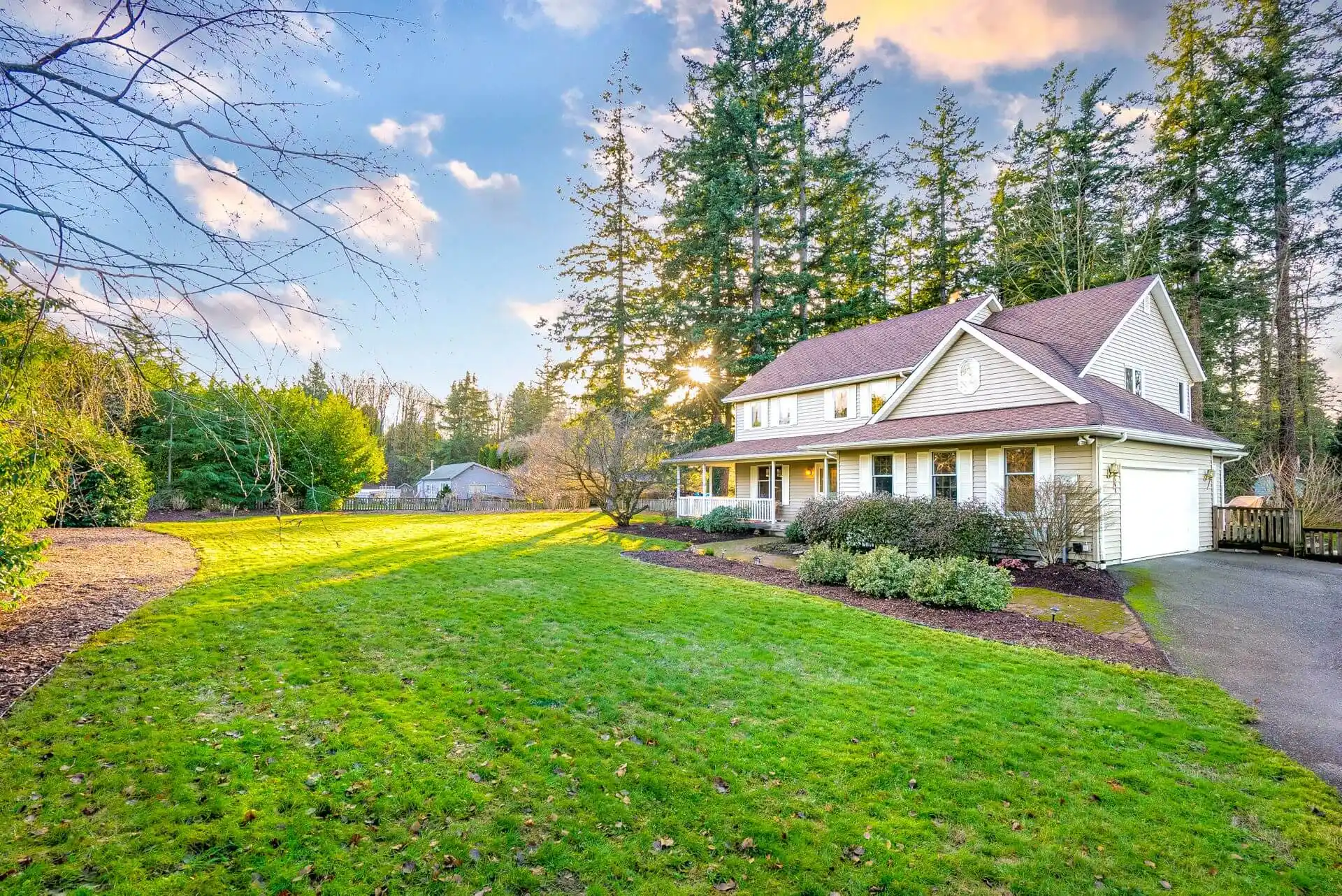You’ll love coming home to this beautiful two-story home tucked away on nearly an acre of quiet property. The moment you enter the full-circle driveway, mature landscaping and a brick paver path leads you to the welcoming wrap-around porch. The entry flows into the first living room made cozy with an accent fireplace and continues effortlessly into the formal dining space. Entertaining is made easy in the kitchen, boasting granite countertops, ample cabinetry, a centerpiece island, and a dry bar with a kegerator and drink fridge. Spend evenings relaxing by the wood-burning stove in the main living room or on the back deck, enjoying beautiful PNW evenings in the quiet and private backyard. The owner’s suite is a personal oasis where you can start your mornings with ease in the spacious walk-in closet and retreat at the end of the day in the jetted soaking tub. There are three additional generously sized bedrooms adjacent to a full bathroom down the hall. The home is conveniently located moments to Historic Downtown Ferndale, shopping, restaurants, and plentiful outdoor recreation within a short twenty-minute commute, including North Bellingham Golf Course and Birch Bay State Park.