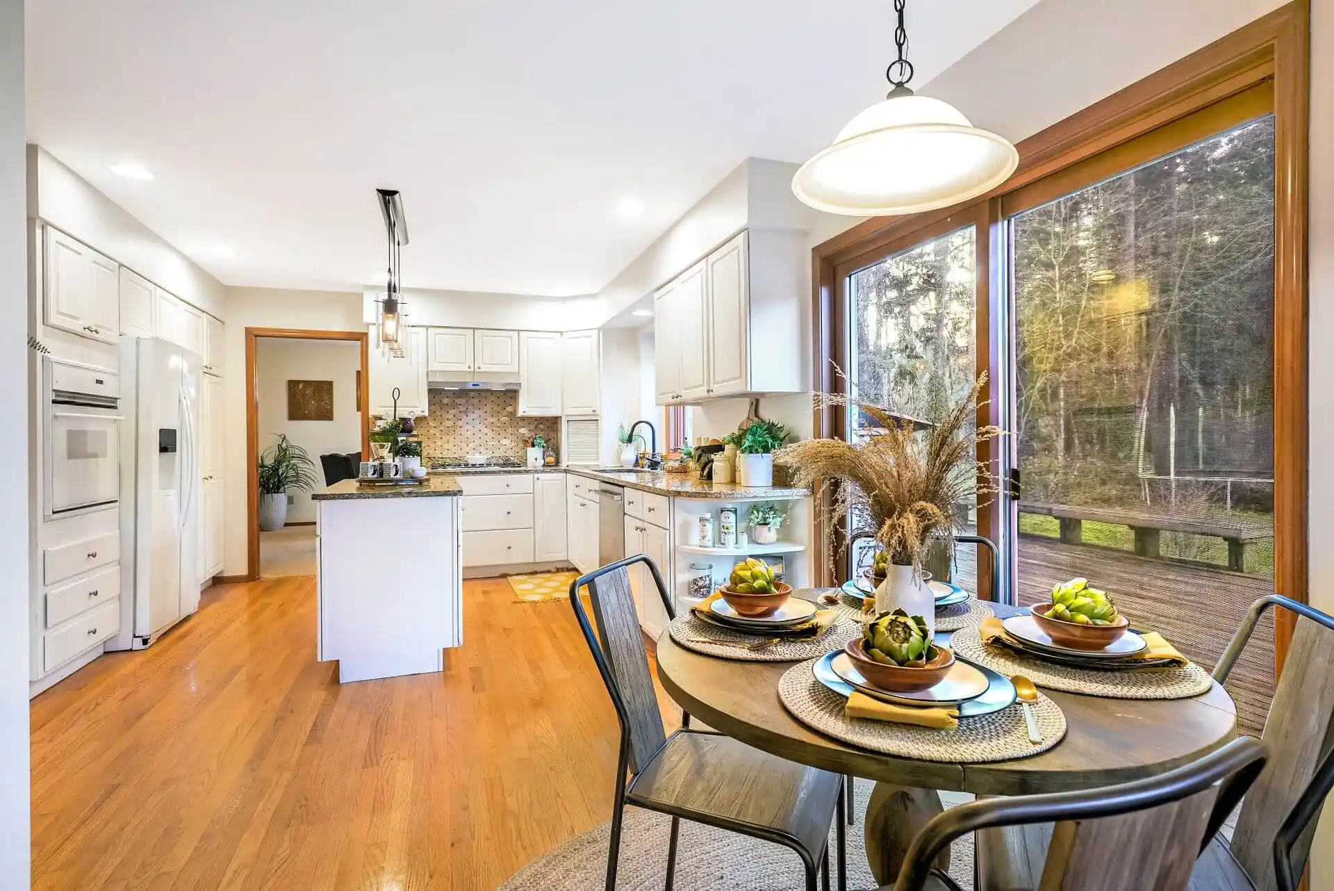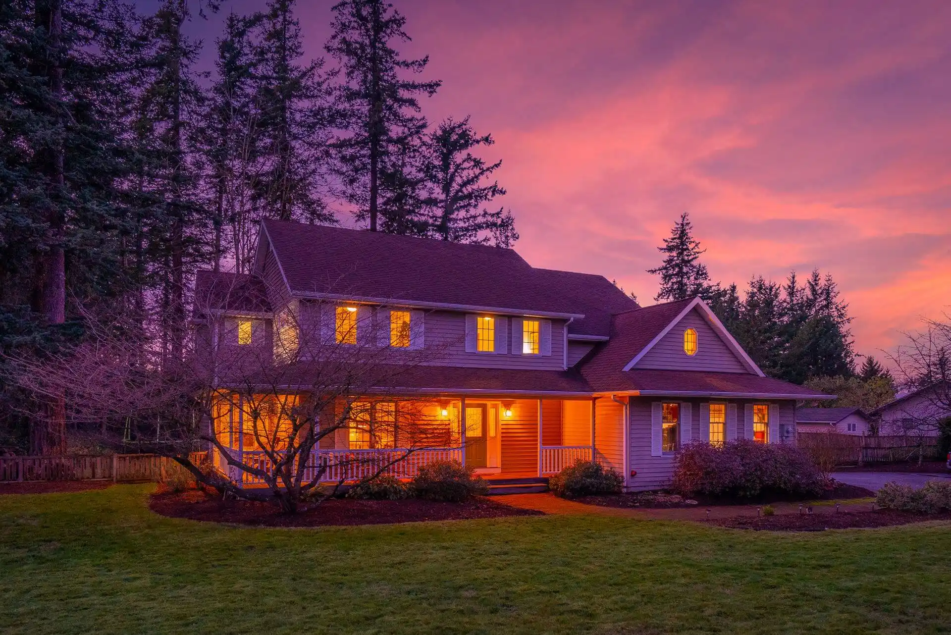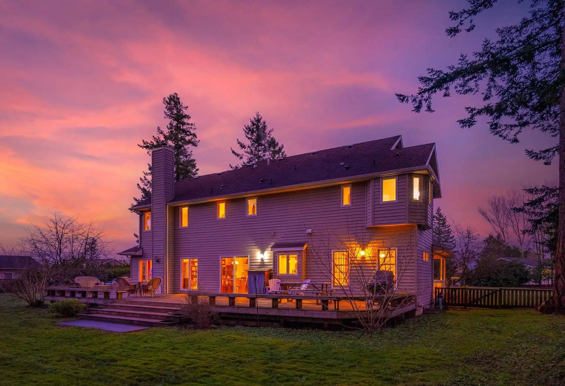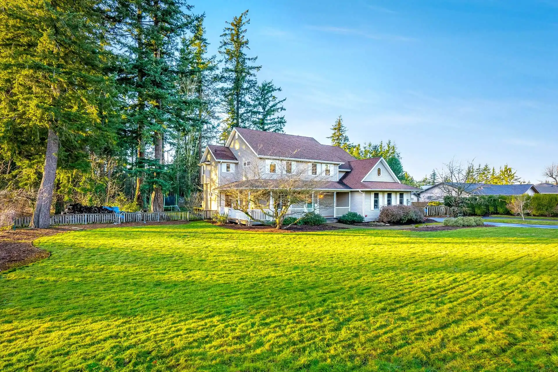 You’ll love coming home to this beautiful two-story home tucked away on nearly an acre of quiet property. The moment you enter the full-circle driveway, mature landscaping and a brick paver path leads you to the welcoming wrap-around porch. The entry flows into the first living room made cozy with an accent fireplace and continues effortlessly into the formal dining space. Entertaining is made easy in the kitchen, boasting granite countertops, ample cabinetry, a centerpiece island, and a dry bar with a kegerator and drink fridge. Spend evenings relaxing by the wood-burning stove in the main living room or on the back deck, enjoying beautiful PNW evenings in the quiet and private backyard. The owner’s suite is a personal oasis where you can start your mornings with ease in the spacious walk-in closet and retreat at the end of the day in the jetted soaking tub. There are three additional generously sized bedrooms adjacent to a full bathroom down the hall. The home is conveniently located moments to Historic Downtown Ferndale, shopping, restaurants, and plentiful outdoor recreation within a short twenty-minute commute, including North Bellingham Golf Course and Birch Bay State Park.