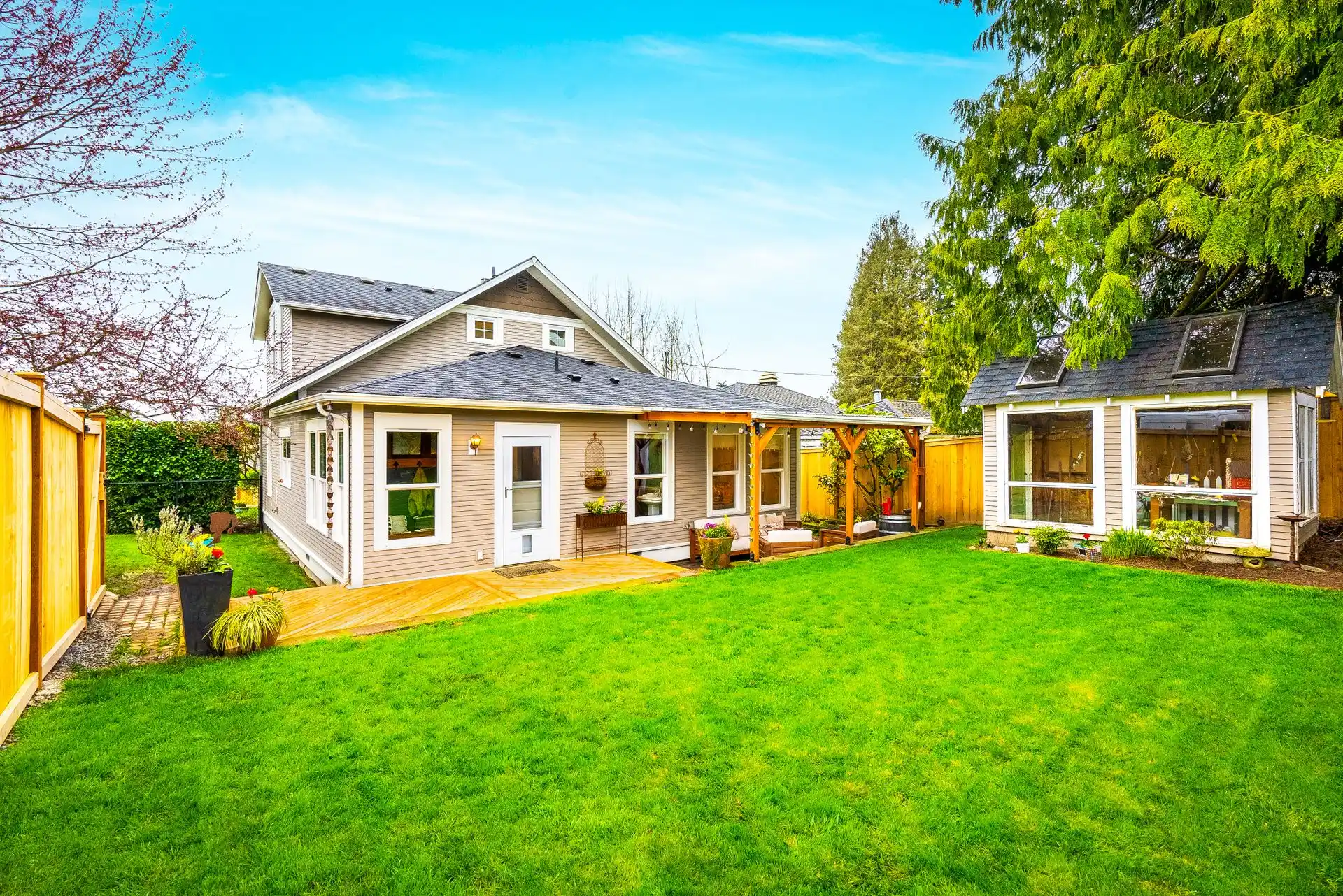 This 1910 craftsman bungalow features modern conveniences, like updated electrical and plumbing, without sacrificing the old-world charm. Beautiful craftsmanship, well-appointed landscaping, and a charming covered front porch welcome you to this one-a-kind home. Gorgeous hardwood floors, built-up millwork, and fresh paint will be your guide through the most important spaces in this home. Flanked by custom-crafted bookshelves, a fireplace with the original brick surround warms the family room. Thoughtfully updated, the kitchen boasts quartz countertops, stainless steel appliances, and a hand-crafted fireclay Shaws farmhouse sink. Retreat to the private and secluded owner’s suite upstairs that includes multiple closets with luxury closet systems and an ensuite with a clawfoot tub. Time will be well spent outdoors in the fully-fenced yard relaxing on the deck, grilling on the covered patio, or gardening in the greenhouse with water collected from the nearby rain barrel. A detached garage includes a private workshop, and a finished bonus space, ideal for a secondary living space, a game room, or a work-from-home office. Take a relaxing stroll to Historic Downtown Snohomish for a bite to eat, shop at countless boutiques or antique shops, or walk along the Snohomish River.