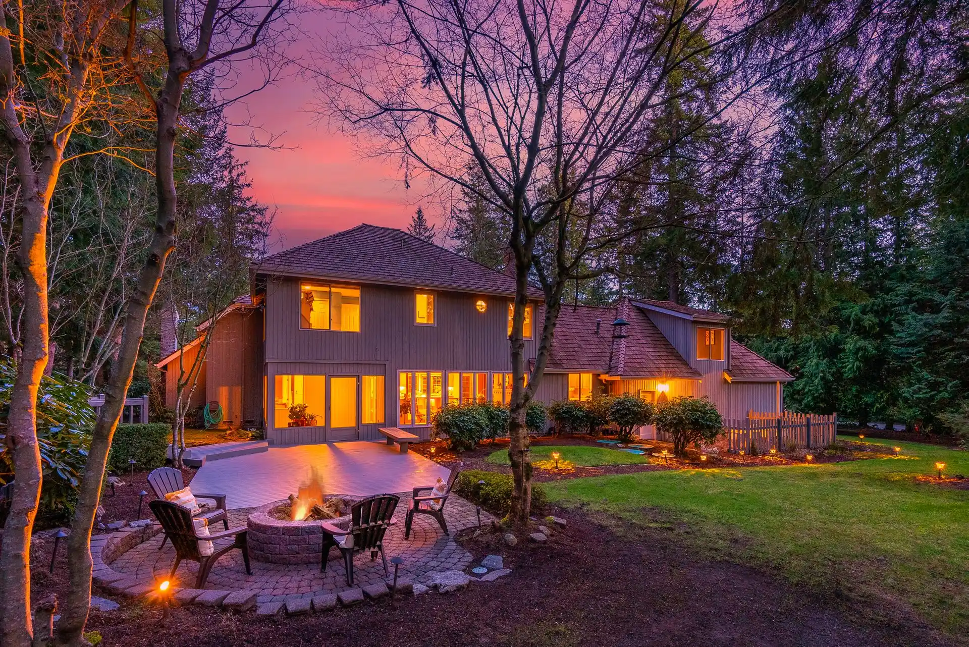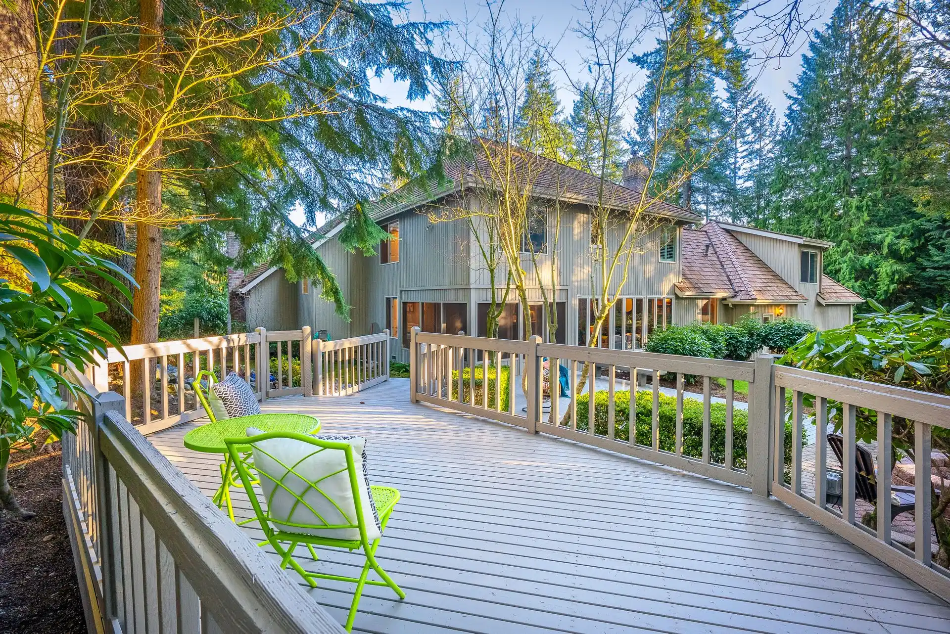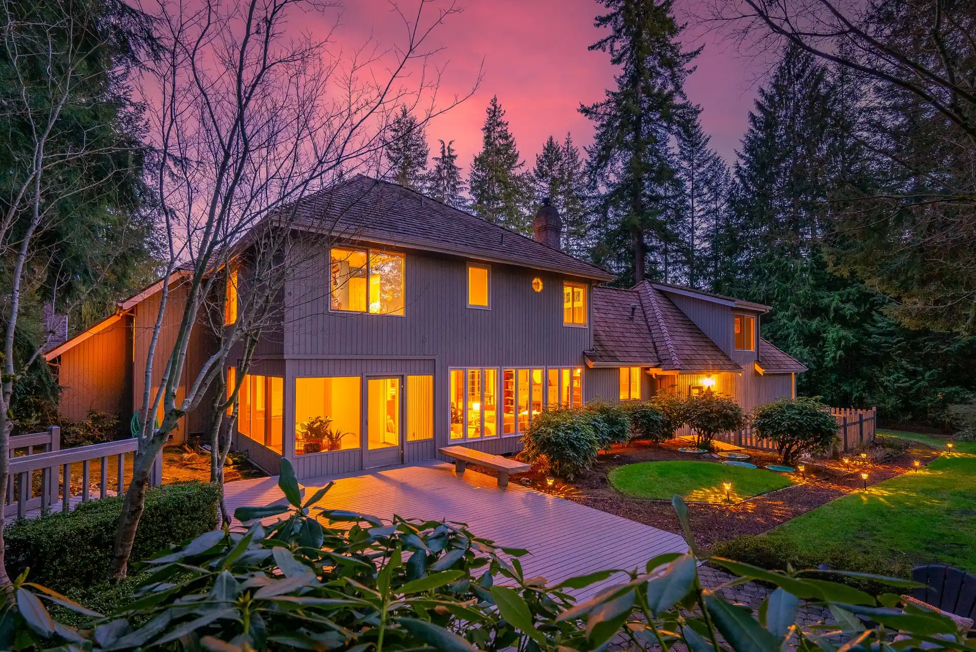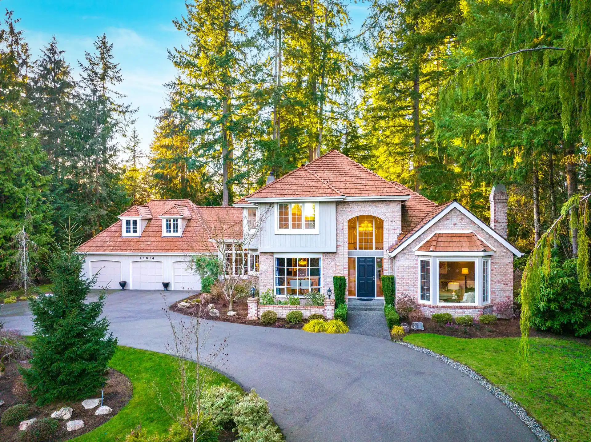 On over an acre of property in one of the Eastside’s most sought-after neighborhoods, this home is a few steps from the private 17-acre community lake and many other community amenities. An ideal combination of contemporary Northwest and traditional style like rich wood tones, large windows that overlook the beautiful landscape, and impressive architectural details. A thoughtful floorplan leads you from the multi-level entry to the heart of this entertainer’s dream. Beautiful wood cabinetry creates a backdrop to the solid stone counters, oversized centerpiece island, and luxury stainless steel appliances in the professional kitchen. Gather in the family room where exposed wood beams, custom-crafted shelving units, a gas fireplace, and a wall of windows overlooking the backyard make it the ideal place to spend time together. Designed with relaxing in mind, the spacious owner’s suite features a luxury walk-in closet and a five-piece ensuite with a soaking tub, a walk-in shower, and a TOTO toilet. Nestled in mature Evergreens, a sprawling deck, a custom waterfall feature, an enclosed garden with raised garden beds, a fire pit, and an enclosed sunroom will transport you to the heart of nature. Revel in the seclusion and serenity this community offers and enjoy the convenience of Downtown Woodinville, Downtown Redmond, and Lake Washington Schools less than fifteen minutes away.