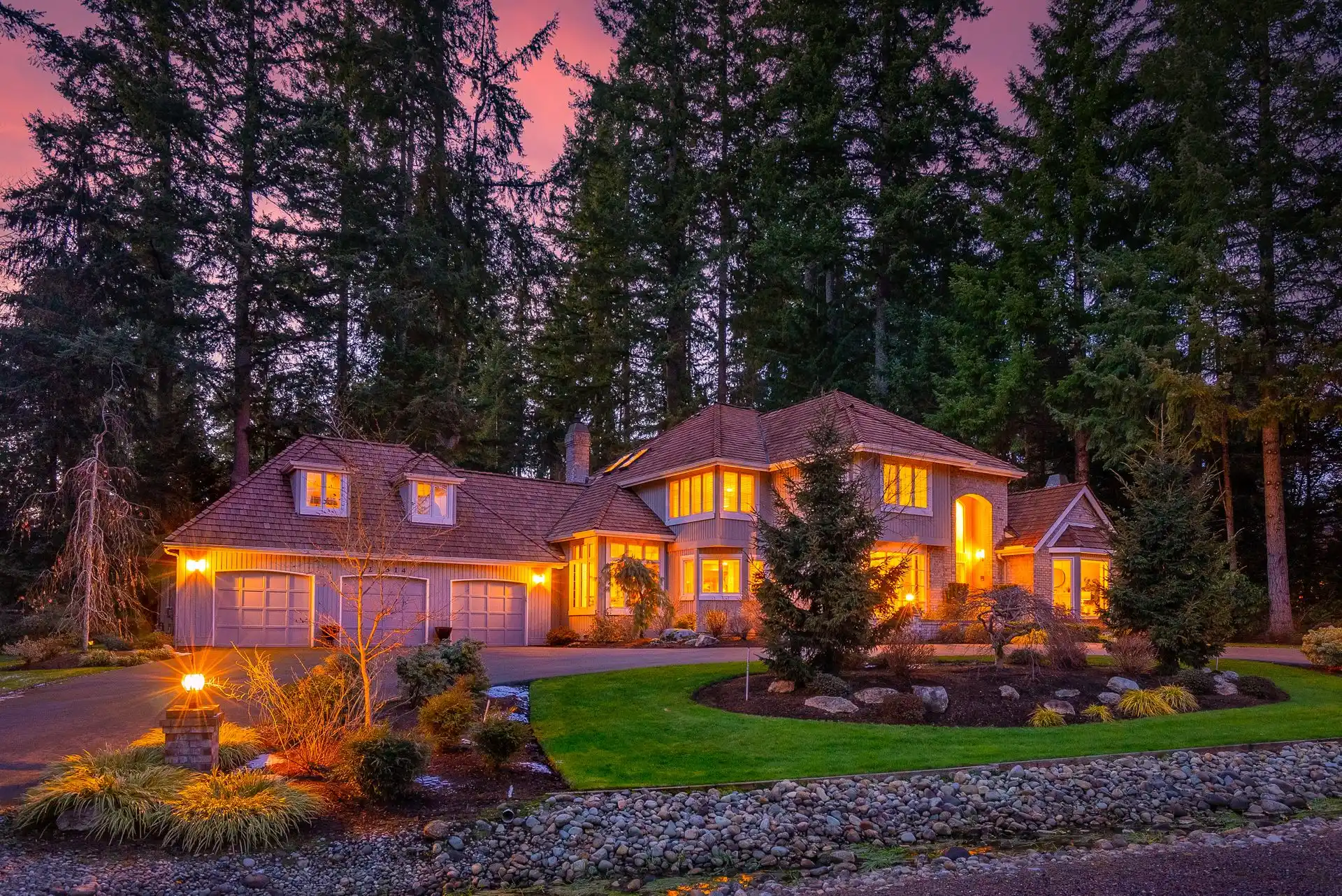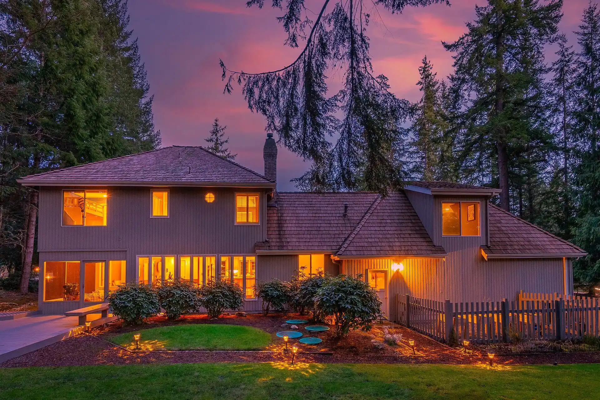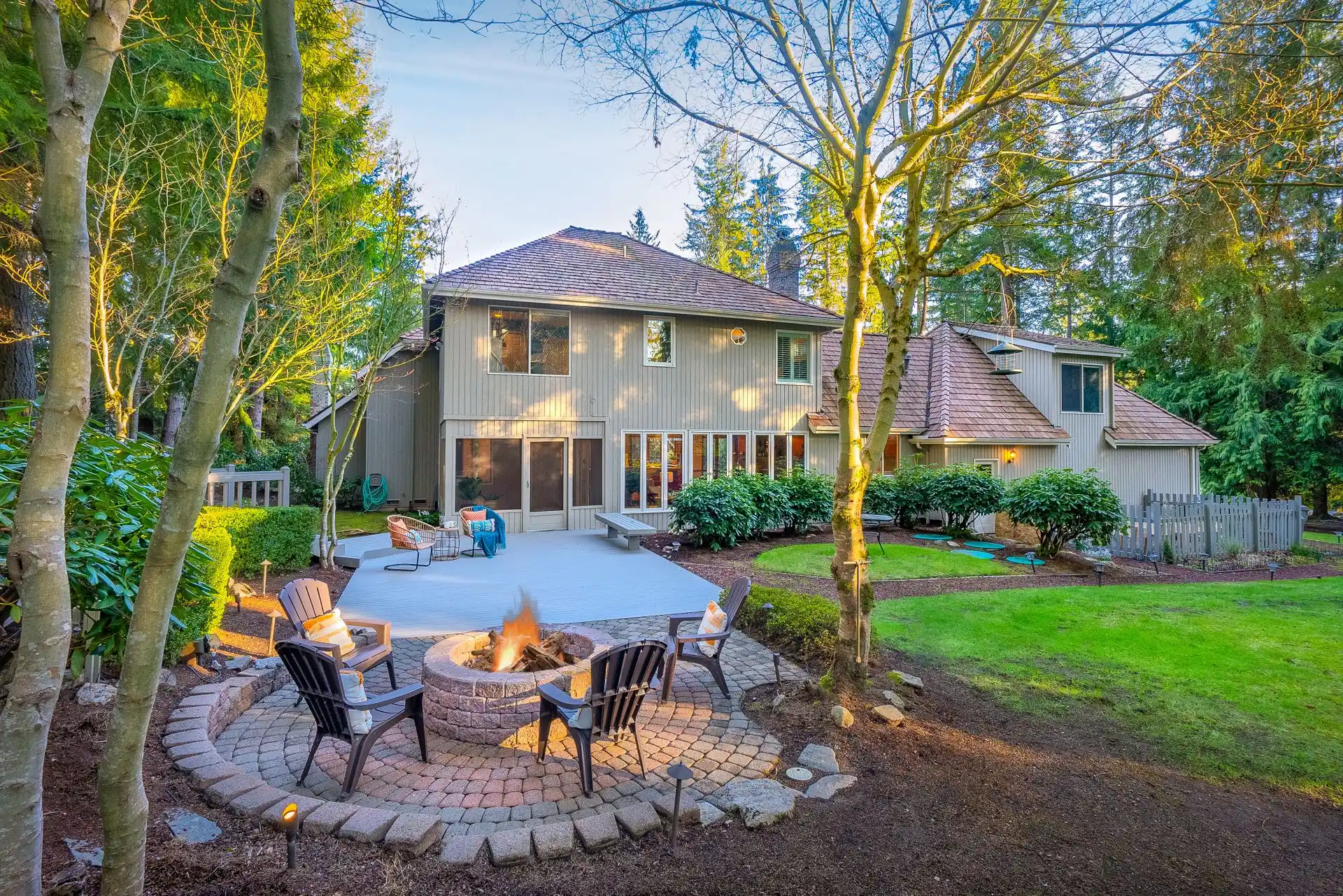 On over an acre of property in one of the Eastside’s most sought-after neighborhoods, this home is a few steps from the private 17-acre community lake and many other community amenities. An ideal combination of contemporary Northwest and traditional style like rich wood tones, large windows that overlook the beautiful landscape, and impressive architectural details. A thoughtful floorplan leads you from the multi-level entry to the heart of this entertainer’s dream. Beautiful wood cabinetry creates a backdrop to the solid stone counters, oversized centerpiece island, and luxury stainless steel appliances in the professional kitchen. Gather in the family room where exposed wood beams, custom-crafted shelving units, a gas fireplace, and a wall of windows overlooking the backyard make it the ideal place to spend time together. Designed with relaxing in mind, the spacious owner’s suite features a luxury walk-in closet and a five-piece ensuite with a soaking tub, a walk-in shower, and a TOTO toilet. Nestled in mature Evergreens, a sprawling deck, a custom waterfall feature, an enclosed garden with raised garden beds, a fire pit, and an enclosed sunroom will transport you to the heart of nature. Revel in the seclusion and serenity this community offers and enjoy the convenience of Downtown Woodinville, Downtown Redmond, and Lake Washington Schools less than fifteen minutes away.