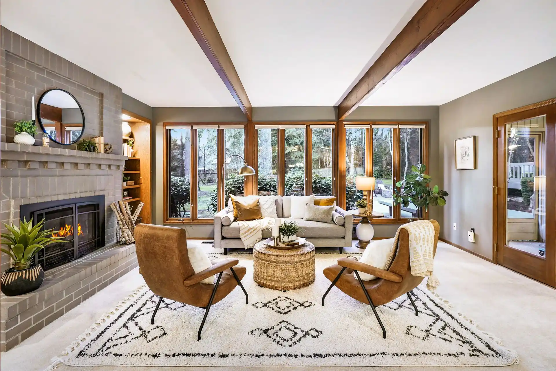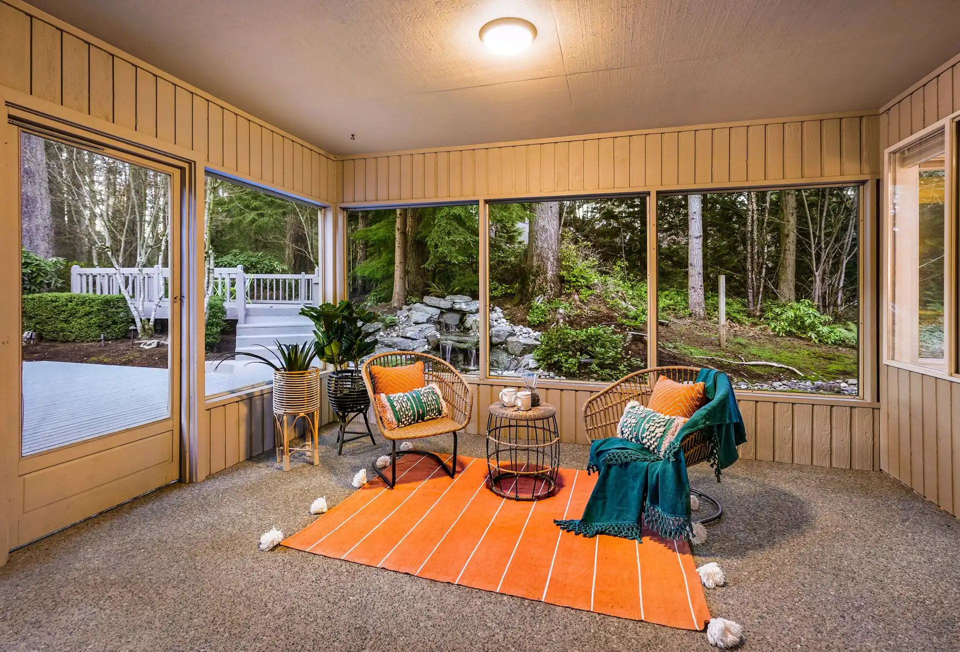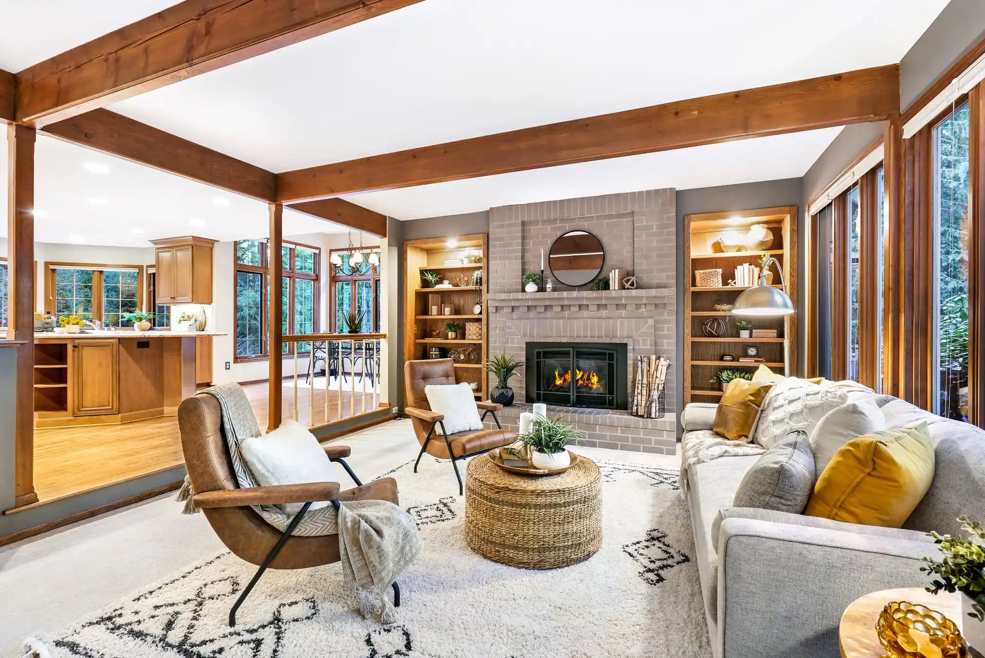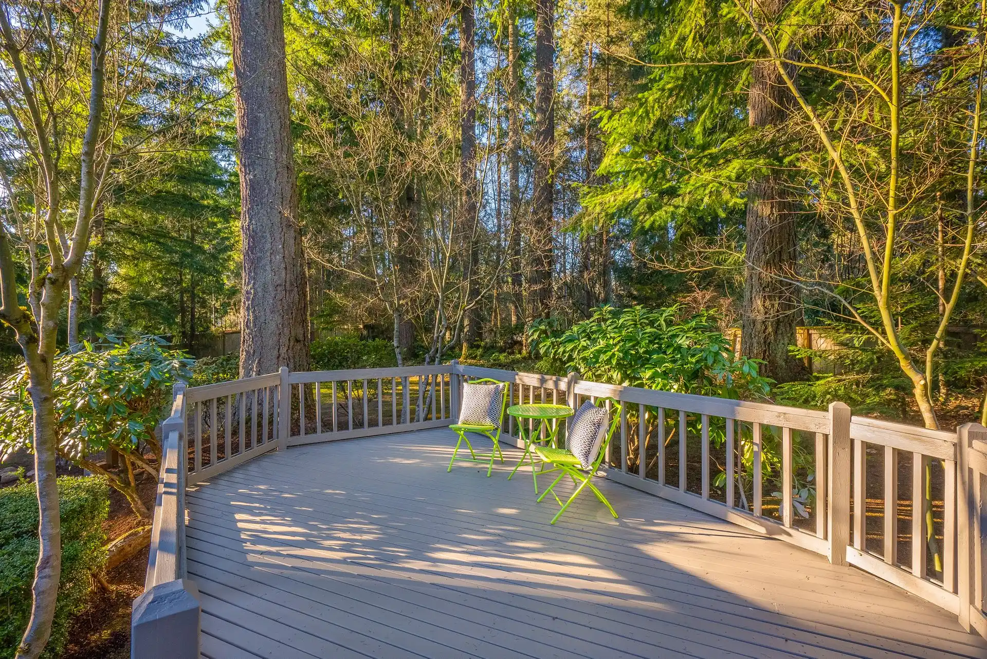 On over an acre of property in one of the Eastside’s most sought-after neighborhoods, this home is a few steps from the private 17-acre community lake and many other community amenities. An ideal combination of contemporary Northwest and traditional style like rich wood tones, large windows that overlook the beautiful landscape, and impressive architectural details. A thoughtful floorplan leads you from the multi-level entry to the heart of this entertainer’s dream. Beautiful wood cabinetry creates a backdrop to the solid stone counters, oversized centerpiece island, and luxury stainless steel appliances in the professional kitchen. Gather in the family room where exposed wood beams, custom-crafted shelving units, a gas fireplace, and a wall of windows overlooking the backyard make it the ideal place to spend time together. Designed with relaxing in mind, the spacious owner’s suite features a luxury walk-in closet and a five-piece ensuite with a soaking tub, a walk-in shower, and a TOTO toilet. Nestled in mature Evergreens, a sprawling deck, a custom waterfall feature, an enclosed garden with raised garden beds, a fire pit, and an enclosed sunroom will transport you to the heart of nature. Revel in the seclusion and serenity this community offers and enjoy the convenience of Downtown Woodinville, Downtown Redmond, and Lake Washington Schools less than fifteen minutes away.