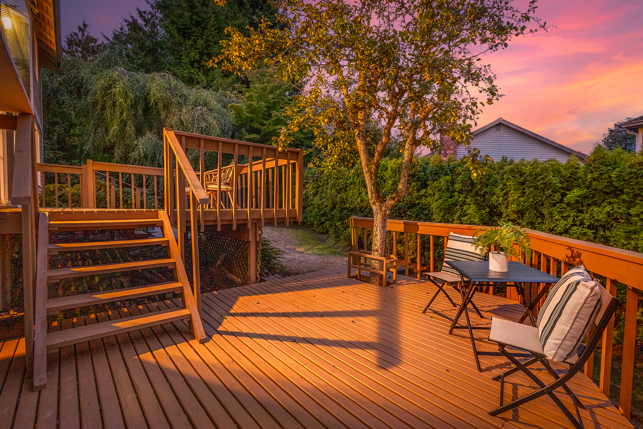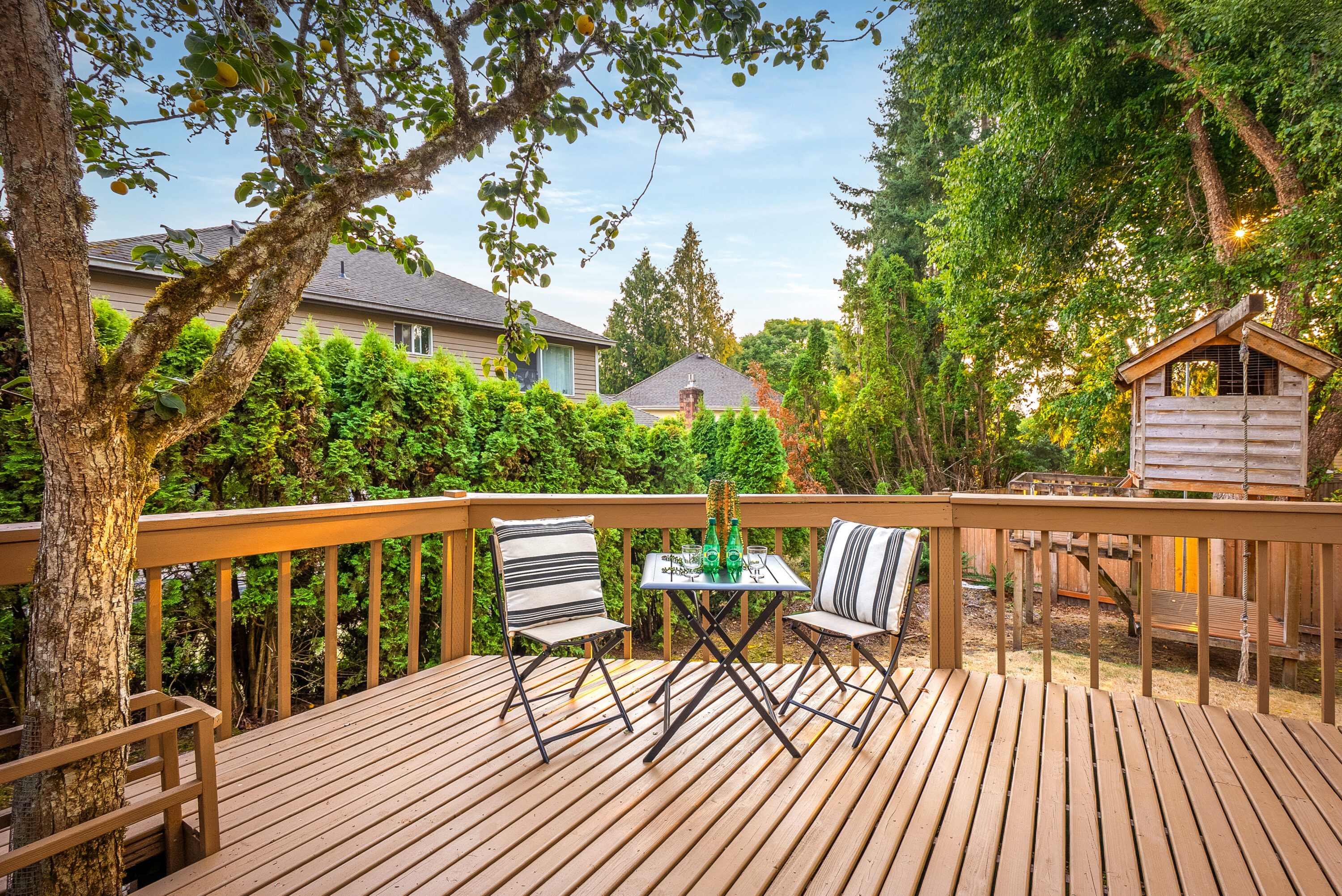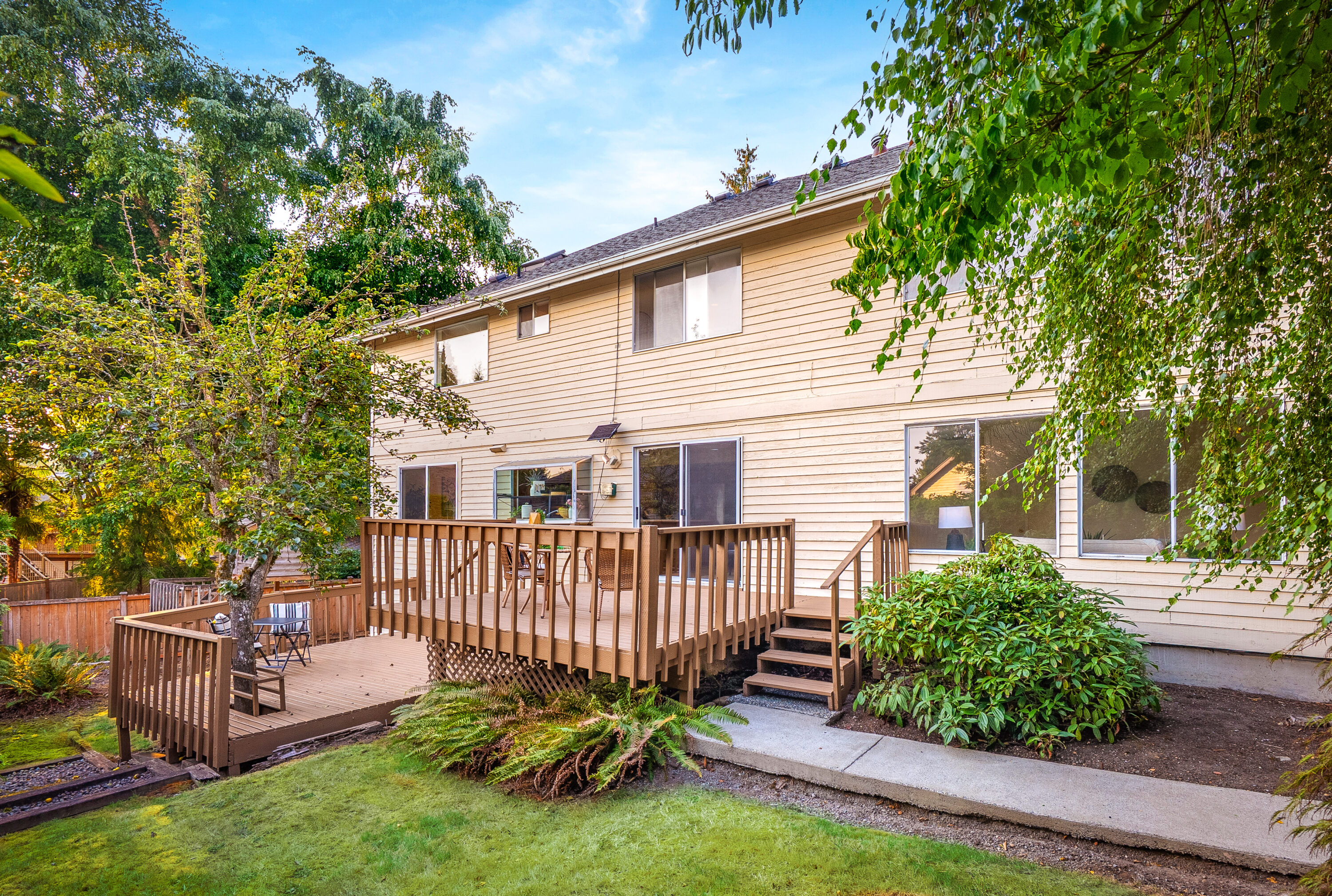 Situated in Renton’s desirable Fairway neighborhood, this inviting home offers both comfort and convenience with quick access to I-405, local parks, and nearby amenities. Step inside to a freshly painted interior where a bright living room flows effortlessly into the dining area, perfect for everyday living or hosting gatherings. The well-appointed kitchen features stainless steel appliances, abundant storage, and a sunny breakfast nook, while a secondary living space with a cozy wood-burning fireplace provides the ideal spot to unwind. Extend your living outdoors to the private backyard, complete with a multi-level deck, mature landscaping, and a playset. Upstairs, the oversized primary suite is a true retreat with a five-piece bath and walk-in closet, joined by four additional generously sized bedrooms and two hall baths. With an oversized two-car garage, workshop space, a neighborhood park, and close proximity to Fairwood Golf & Country Club, this home effortlessly combines functionality, charm, and location.