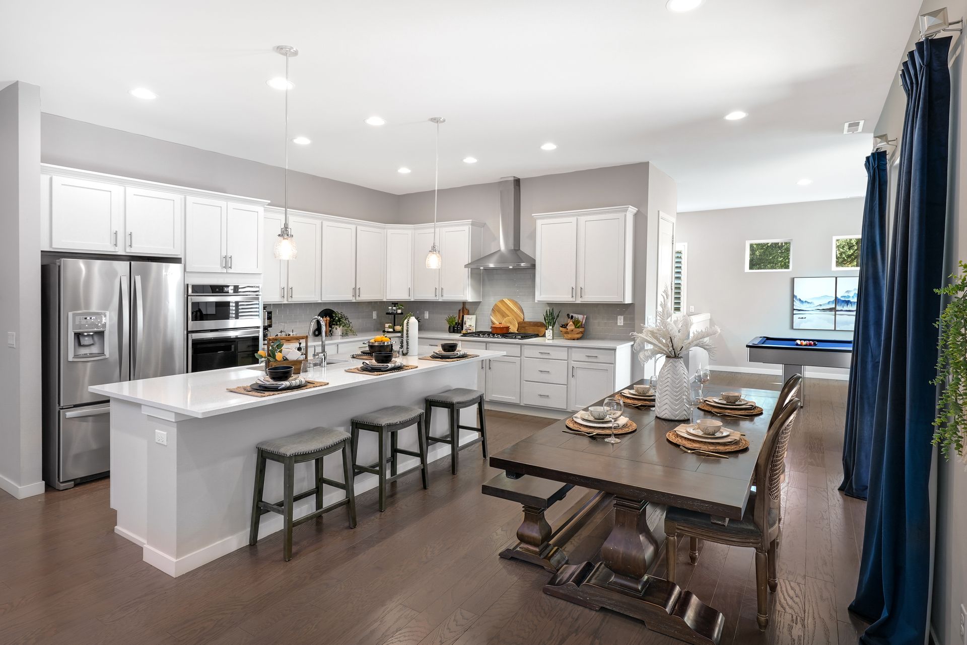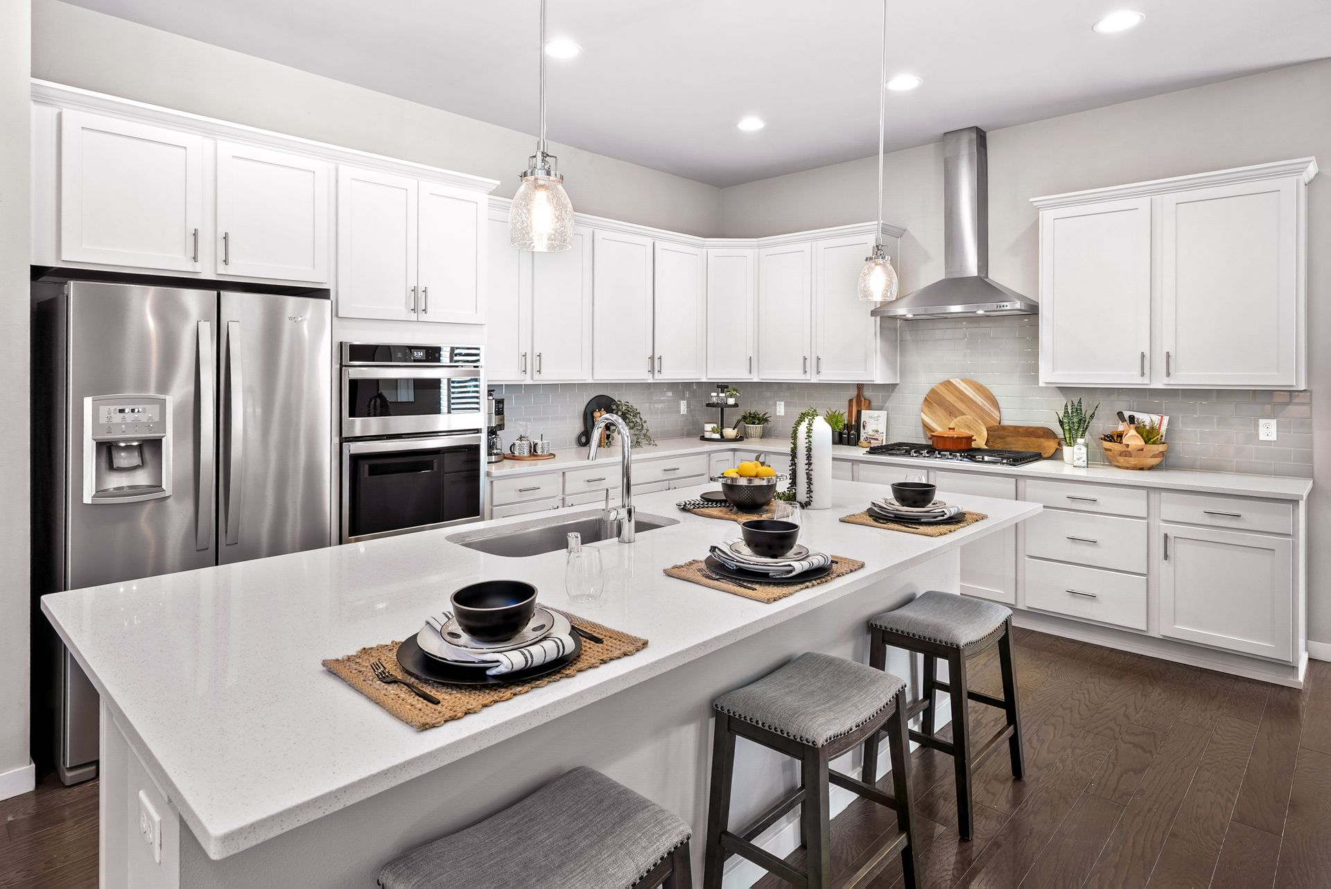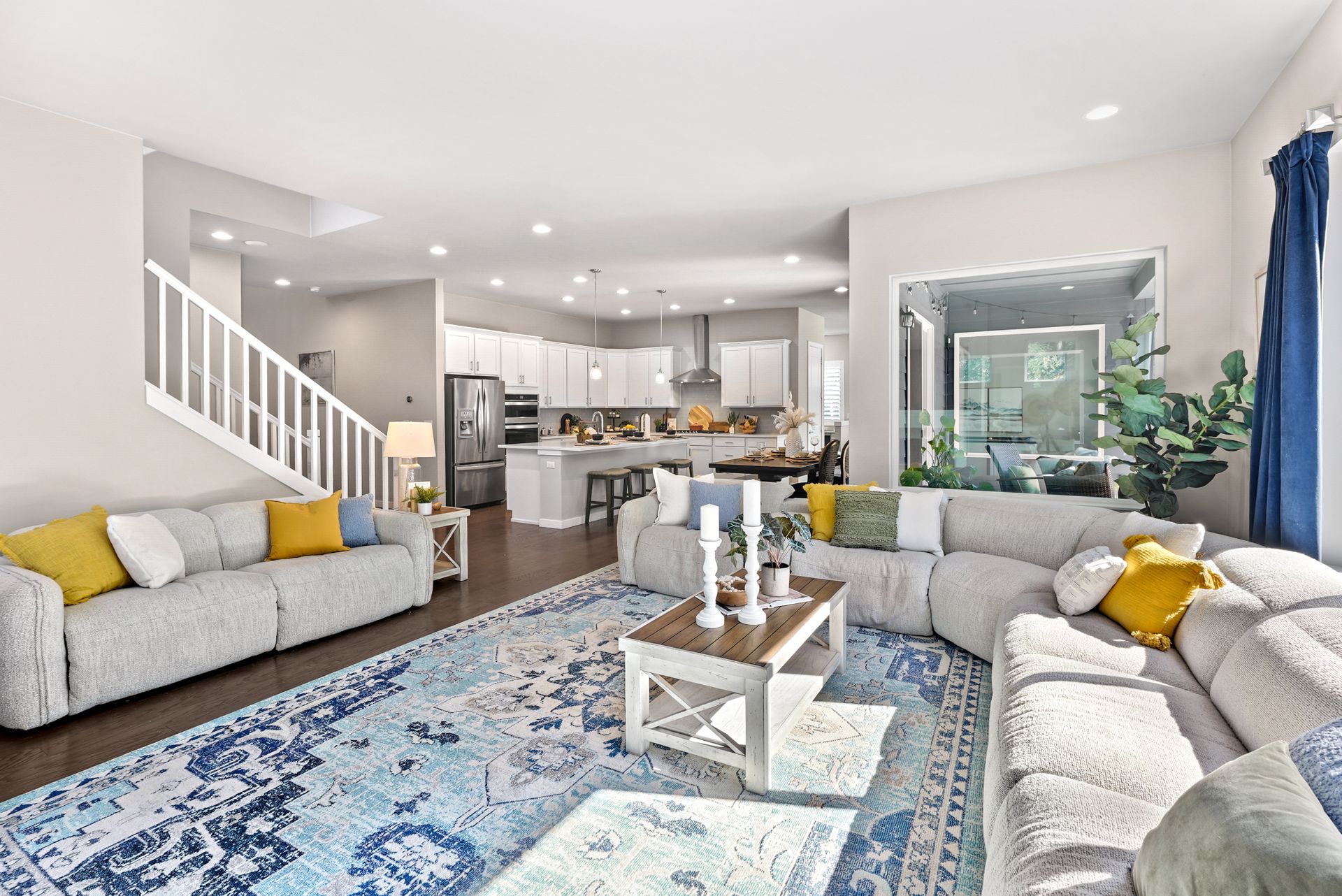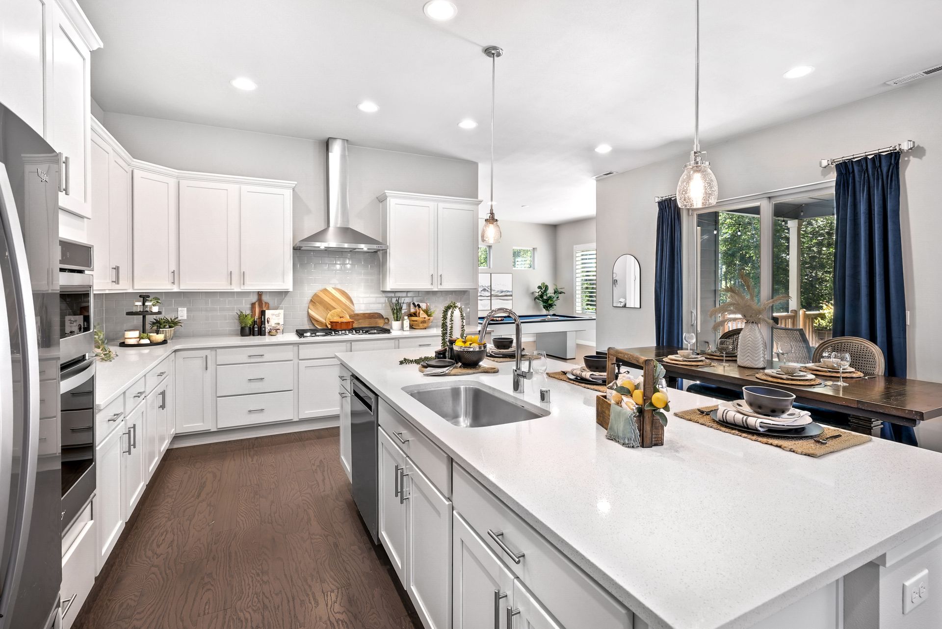 Step inside to a bright entryway and discover a flexible main floor guest suite with a private bath, perfect for multigenerational living or out-of-town visitors. The open-concept main living area flows effortlessly into the outdoors. At the heart of the home, the kitchen shines with a generous center island, ample cabinetry, and a sunny dining space complete with a built-in workstation, ideal for homework or meal planning.
