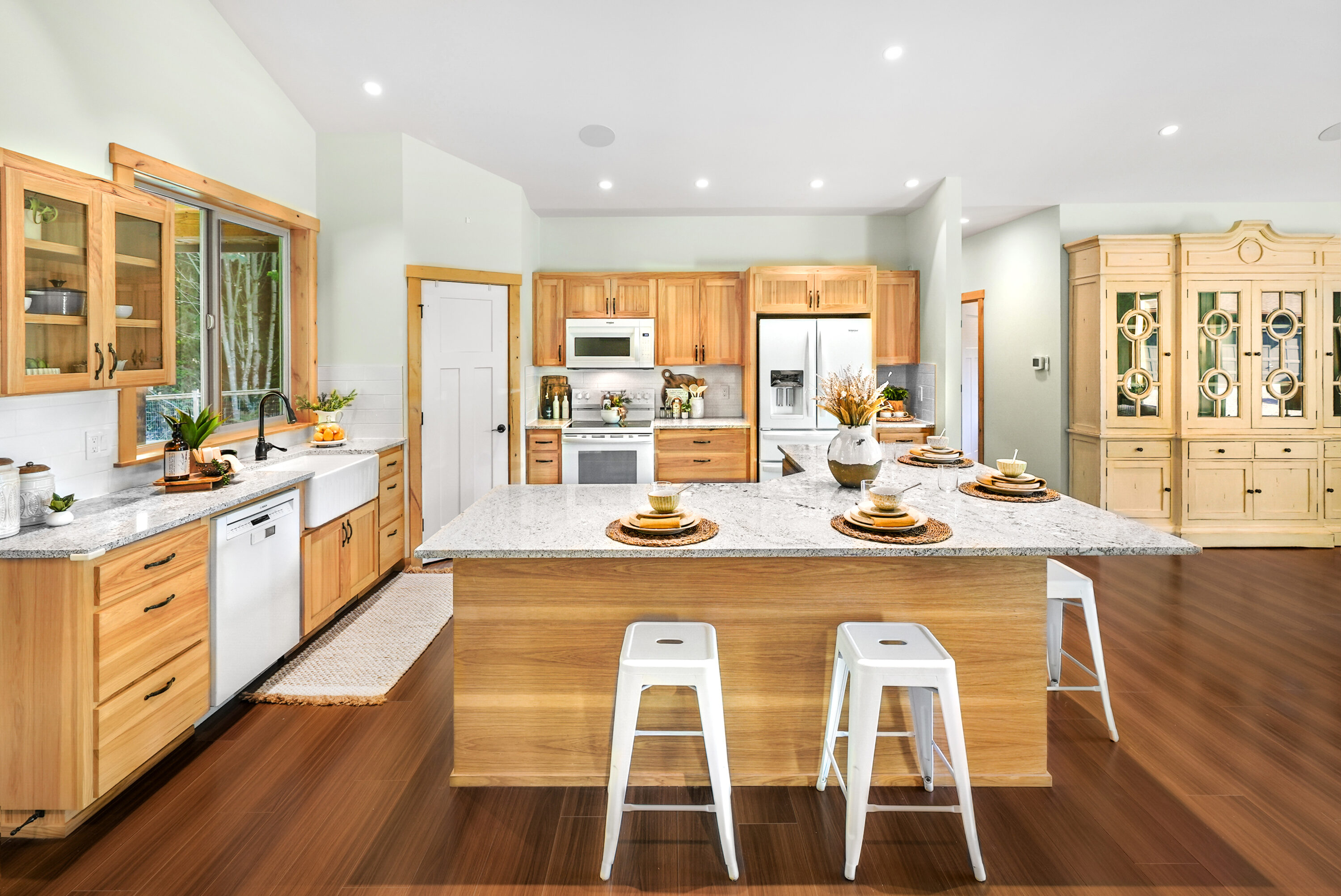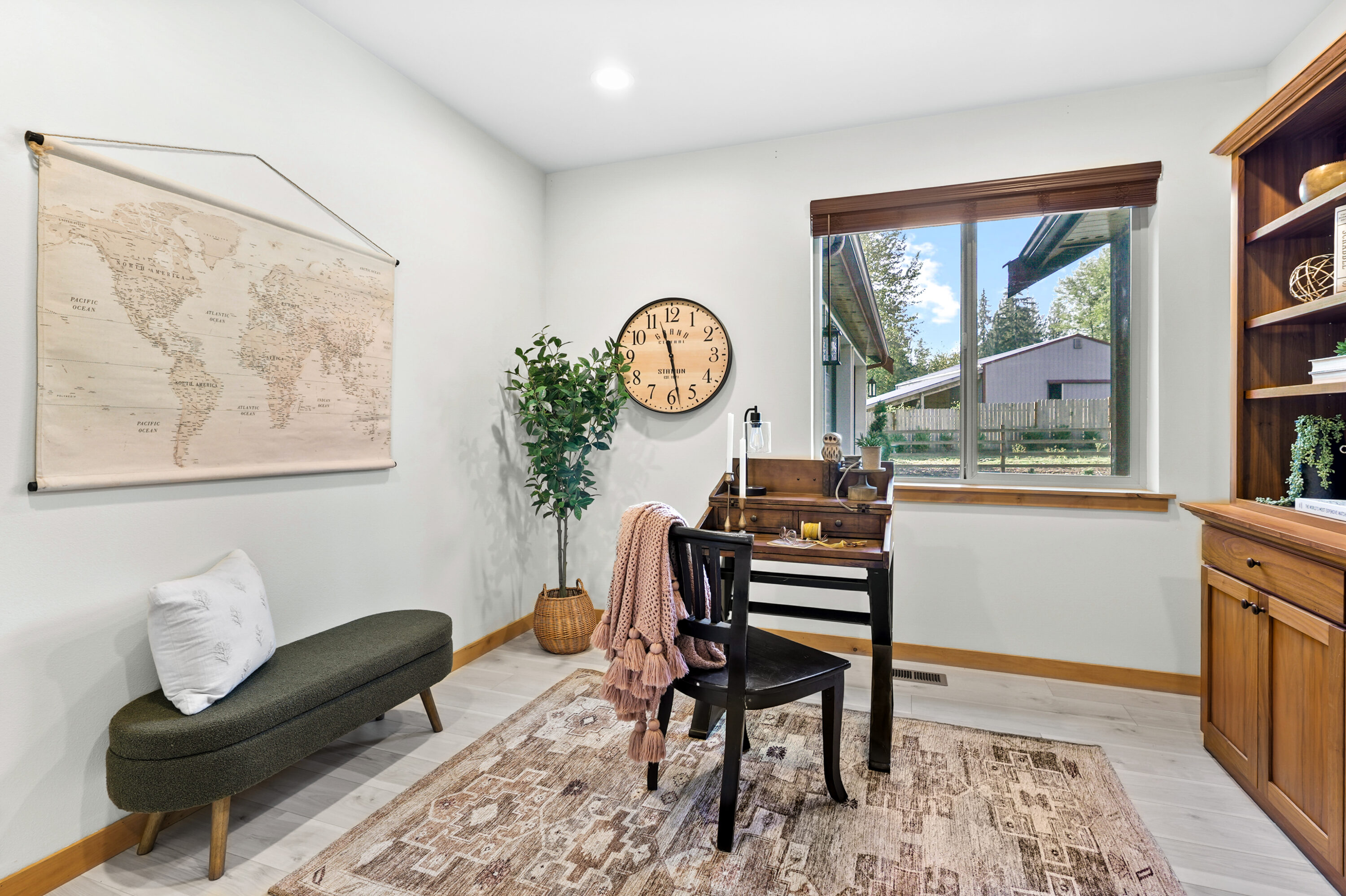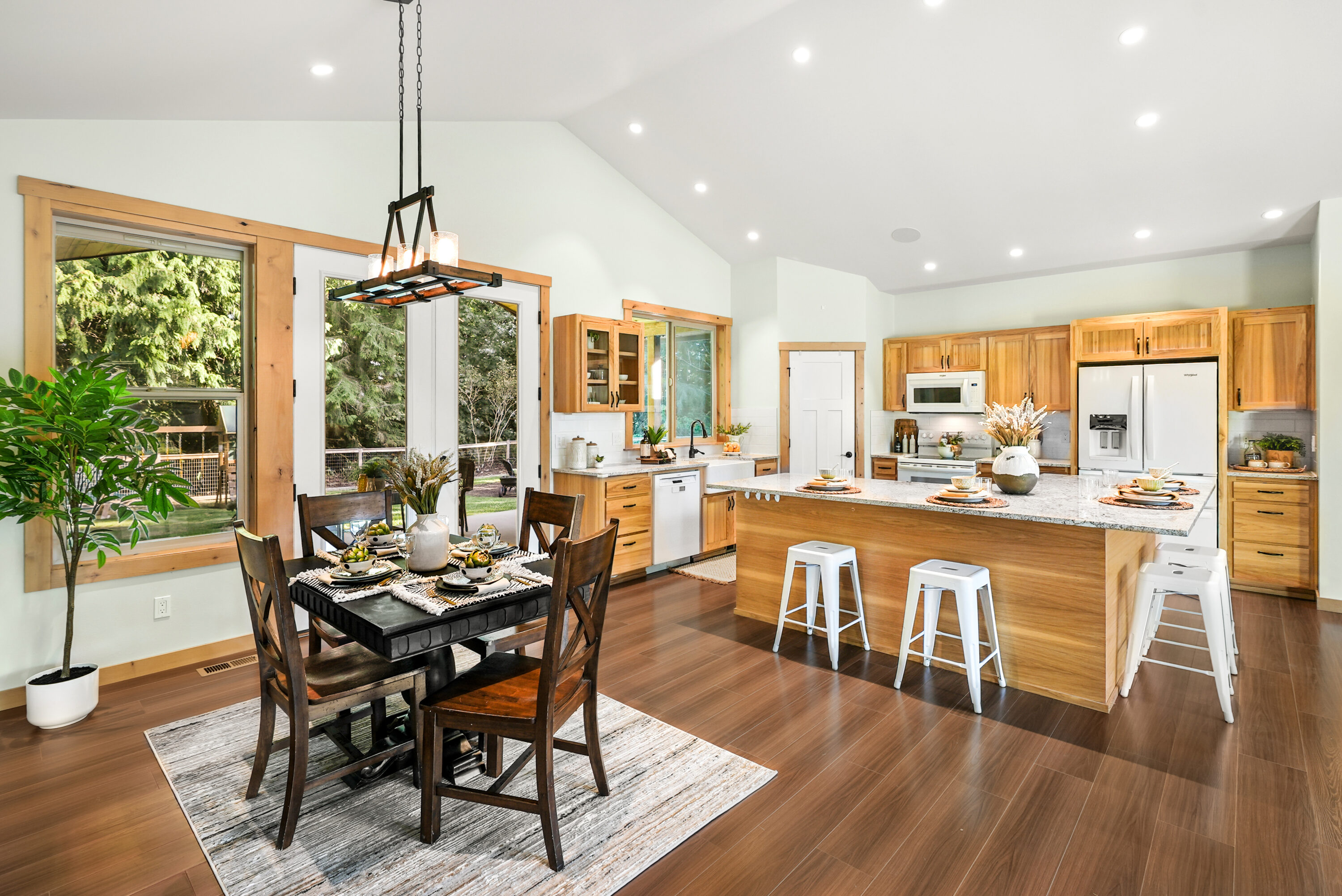Nestled in the desirable Three Lakes area of Snohomish, this meticulously maintained home offers the perfect blend of quiet, tranquil living with convenient access to everyday amenities of town, plus easy commuting with proximity to HWY 9 and HWY 2. Surrounded by the best of the Pacific Northwest, you’ll enjoy nearby lakes, river beaches, scenic trails, and seasonal fun at Snohomish’s many local farms. Step inside to find soaring ceilings that welcome you into the heart of the home, an open kitchen and living space designed for gathering. The kitchen boasts abundant storage, a spacious center island, and an adjoining dining area, while the living room centers around a cozy wood-burning stove and expansive windows that fill the space with light. The spacious primary suite is a true retreat, boasting a relaxing ensuite complete with a soaking tub, walk-in shower, and dual closets. Three additional bedrooms are accompanied by a full hall bath, providing ample space for guests and future growth. Daily tasks are made easy with a dedicated home office and oversized laundry room with additional large storage space. Outdoors, enjoy walking trails, a secluded garden space, a fully fenced yard, and a large covered patio, creating your own private retreat right at home. The attached two-car garage features a fully finished bay with heating and cooling, offering space for a home gym or creative studio. The 5 + acre property’s thoughtful design continues with ample parking, including RV hookups, a detached two-bay shop complete with a half bathroom and office, plus multiple outbuildings and covered storage.