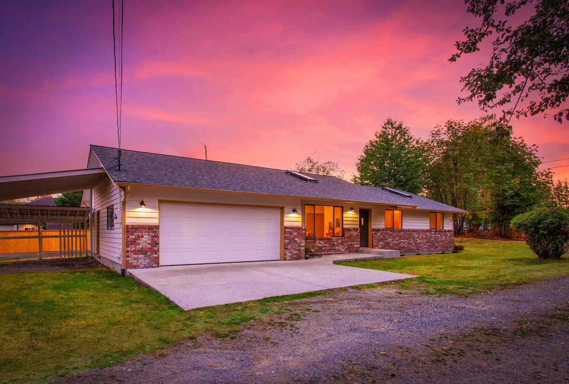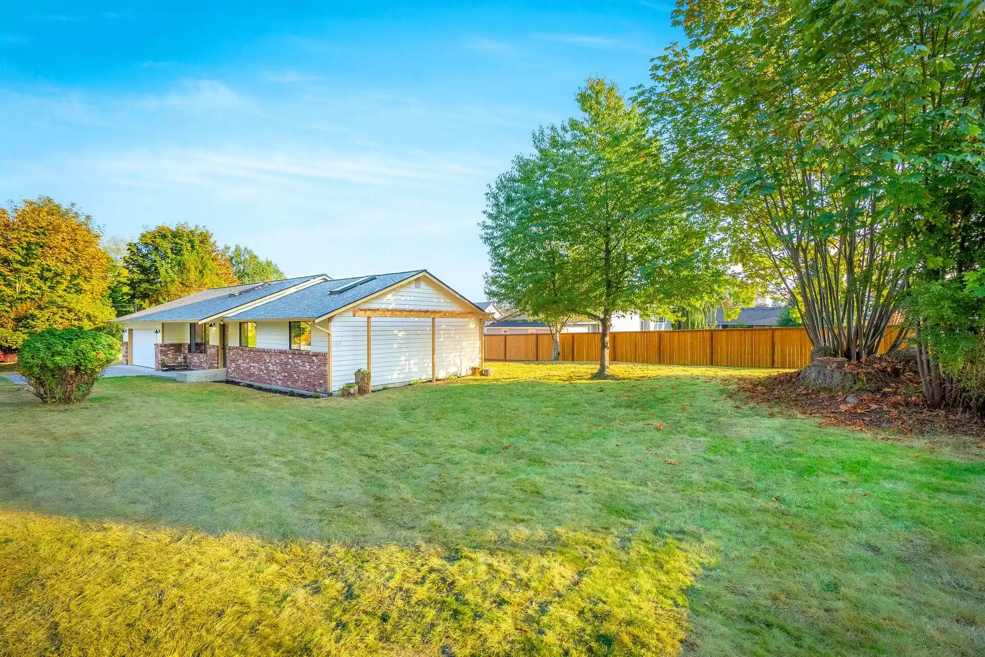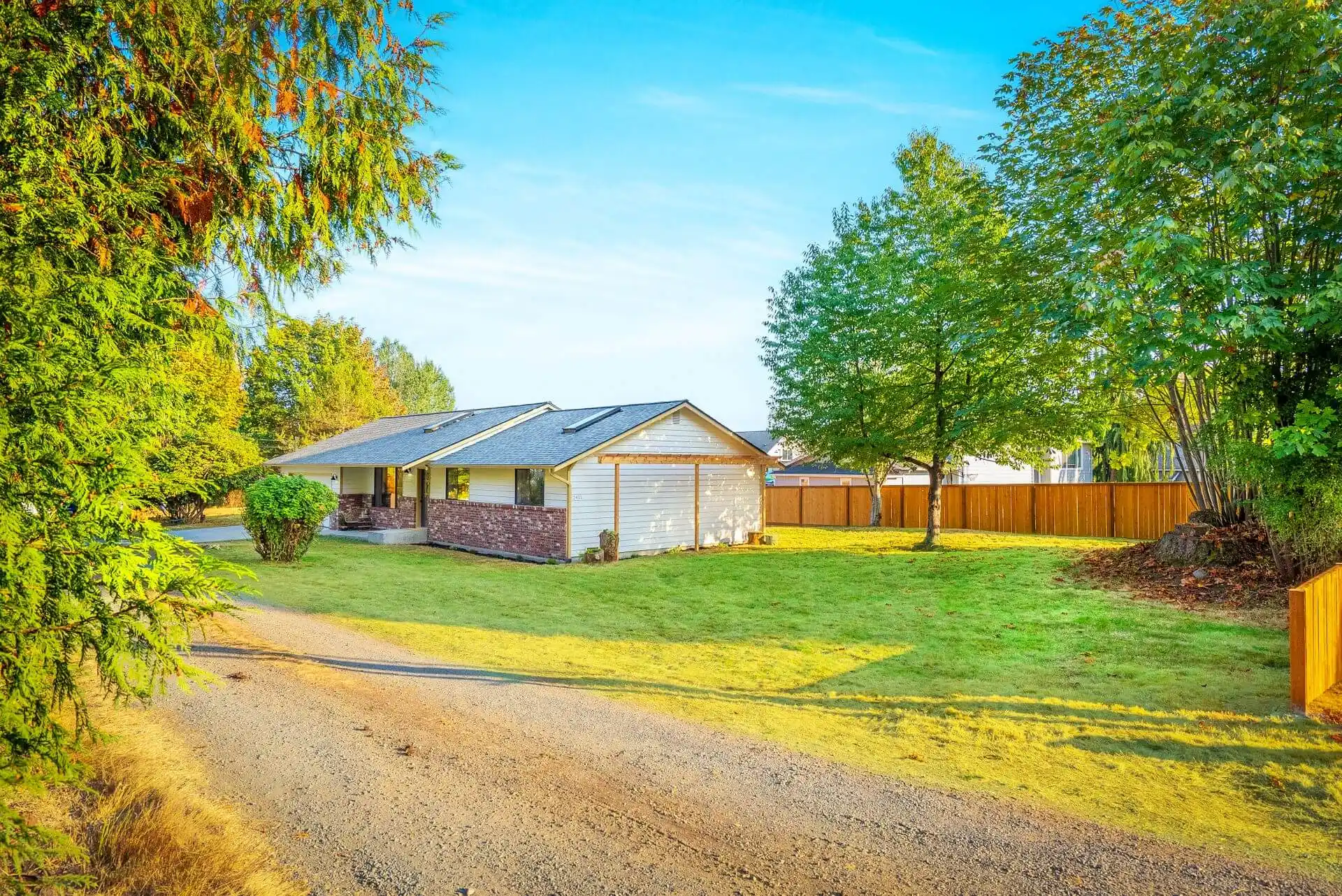 This freshly renovated Lake Stevens rambler brings you earthy-bohemian charm, expert updates, and contemporary finishes. Extensive updates begin outside, with professional landscaping, new exterior paint, and a new roof, and continue inside. Nearly every detail has been touched, including stunning luxury vinyl plank floors in the main living spaces & all three bedrooms, modern light fixtures & hardware, a fresh color palette, and more. The vaulted ceilings and easy floor plan create an airy and inviting atmosphere, making it an ideal entertainment space. The custom-designed kitchen wows with its impressive backsplash, honed-finished countertops, large pantry with pull-out baskets & pan storage, a luxury Frigidaire stainless steel appliance package, linen tile floors, and an Elkay apron front sink. You’ll love coming home to unwind in the privacy of your spacious primary bedroom, which boasts a custom closet system and a luxurious ensuite that features an eye-catching black vertical tile accent wall, high-end vanity, and stylish fixtures. All this, plus an updated guest bathroom, an oversized two-car garage with storage, a mudroom, and an expansive yard. This home provides unparalleled access to nearly everything–shopping & restaurants, including Frontier Village Shopping Center, the Hwy 2 & Hwy 9 interchange. Plus, it’s just a few short moments away from Lake Stevens schools, Lundeen Park, Downtown Lake Stevens with seasonal farmer’s markets & fairs at North Cove Park, and so much more.