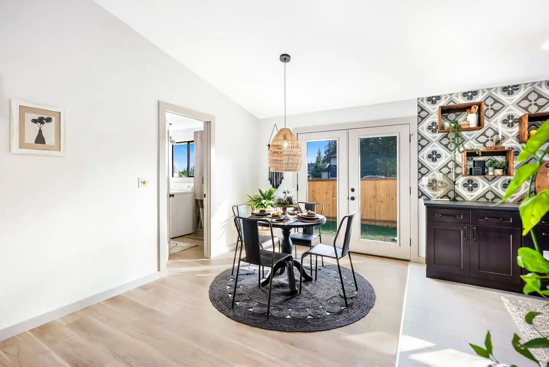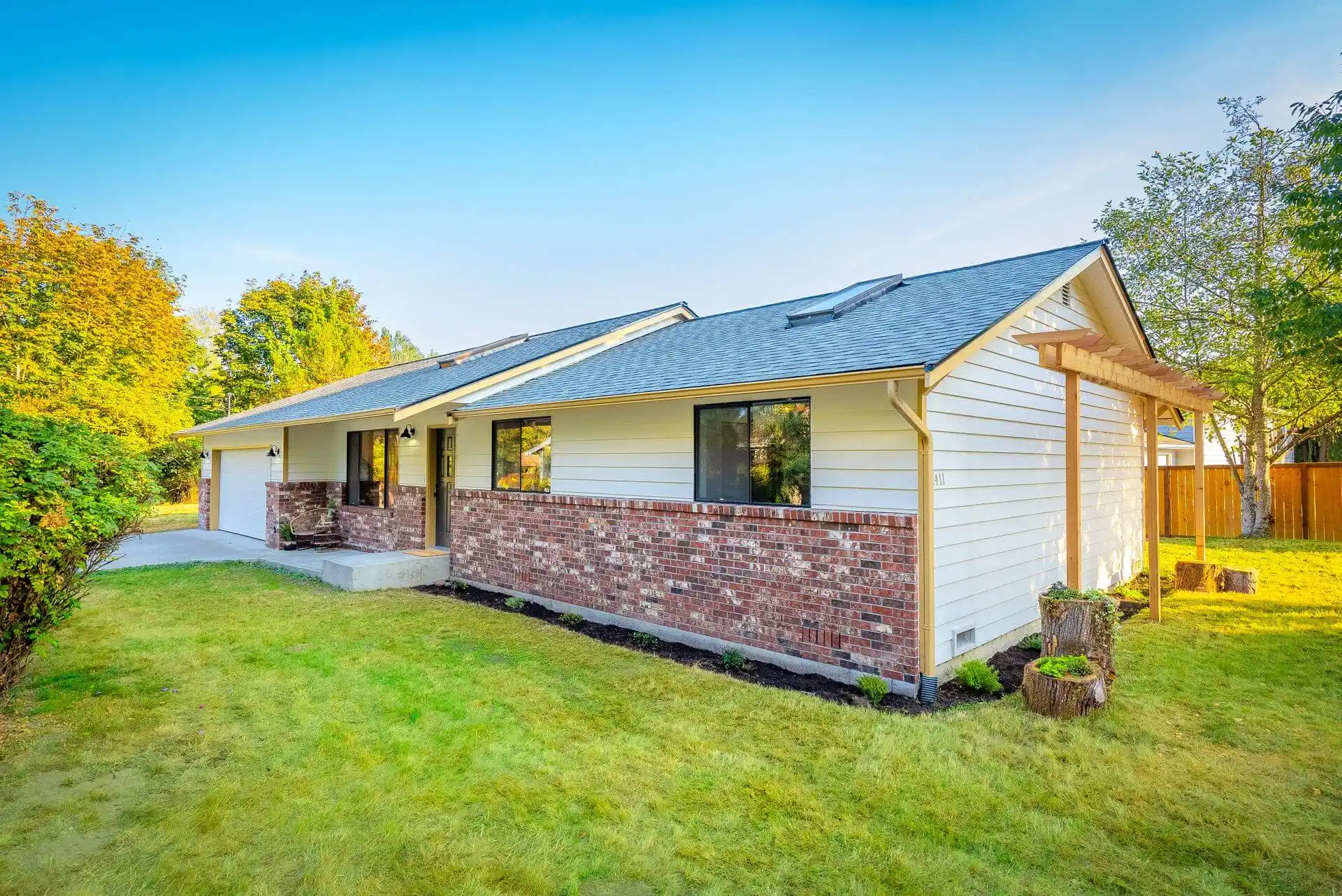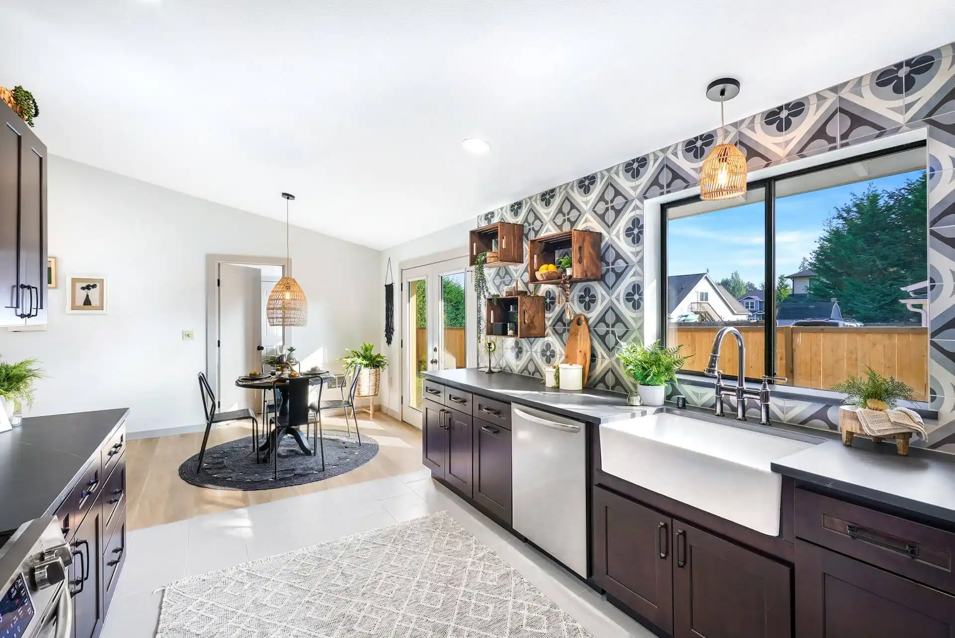 This freshly renovated Lake Stevens rambler brings you earthy-bohemian charm, expert updates, and contemporary finishes. Extensive updates begin outside, with professional landscaping, new exterior paint, and a new roof, and continue inside. Nearly every detail has been touched, including stunning luxury vinyl plank floors in the main living spaces & all three bedrooms, modern light fixtures & hardware, a fresh color palette, and more. The vaulted ceilings and easy floor plan create an airy and inviting atmosphere, making it an ideal entertainment space. The custom-designed kitchen wows with its impressive backsplash, honed-finished countertops, large pantry with pull-out baskets & pan storage, a luxury Frigidaire stainless steel appliance package, linen tile floors, and an Elkay apron front sink. You’ll love coming home to unwind in the privacy of your spacious primary bedroom, which boasts a custom closet system and a luxurious ensuite that features an eye-catching black vertical tile accent wall, high-end vanity, and stylish fixtures. All this, plus an updated guest bathroom, an oversized two-car garage with storage, a mudroom, and an expansive yard. This home provides unparalleled access to nearly everything–shopping & restaurants, including Frontier Village Shopping Center, the Hwy 2 & Hwy 9 interchange. Plus, it’s just a few short moments away from Lake Stevens schools, Lundeen Park, Downtown Lake Stevens with seasonal farmer’s markets & fairs at North Cove Park, and so much more.
