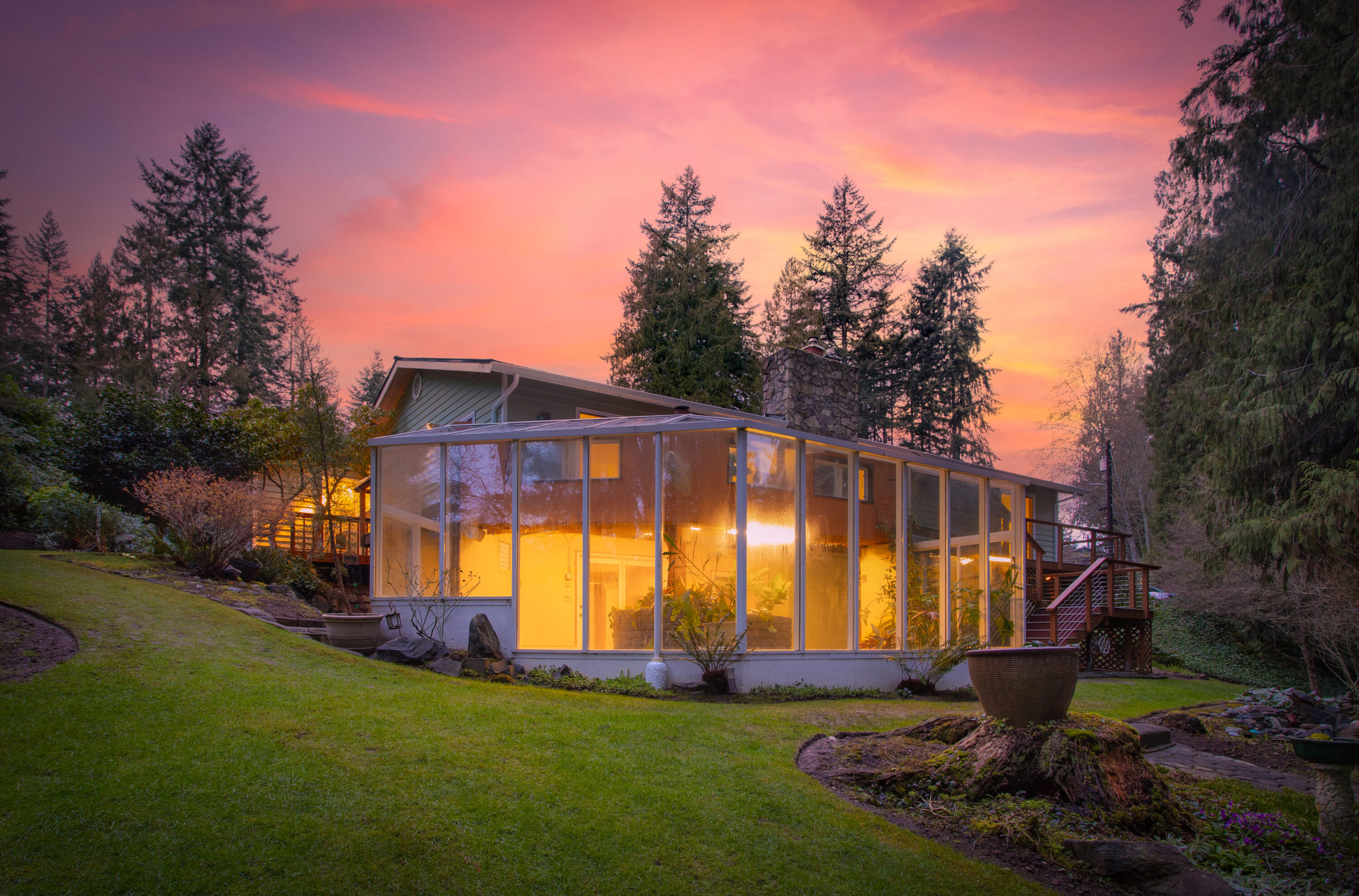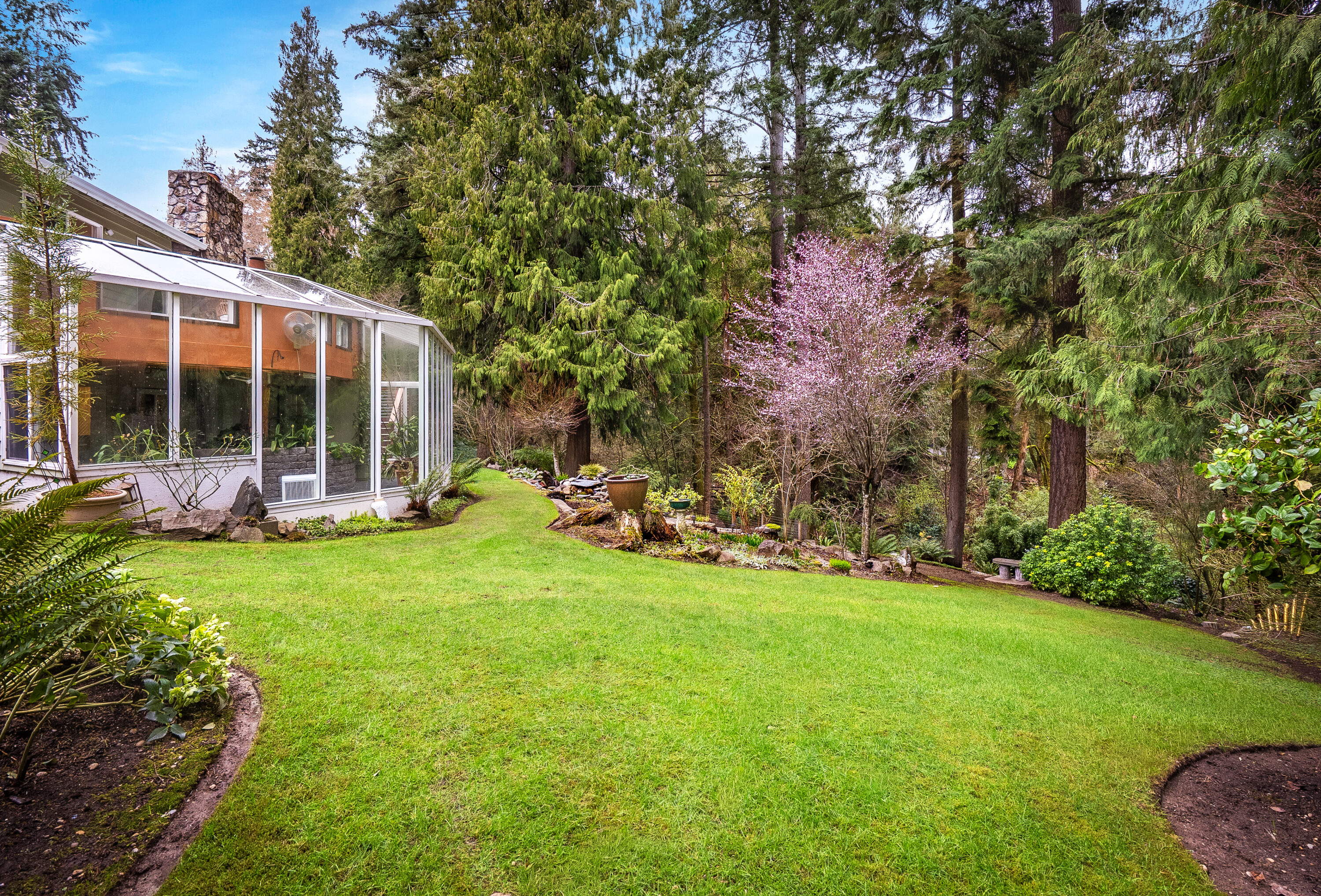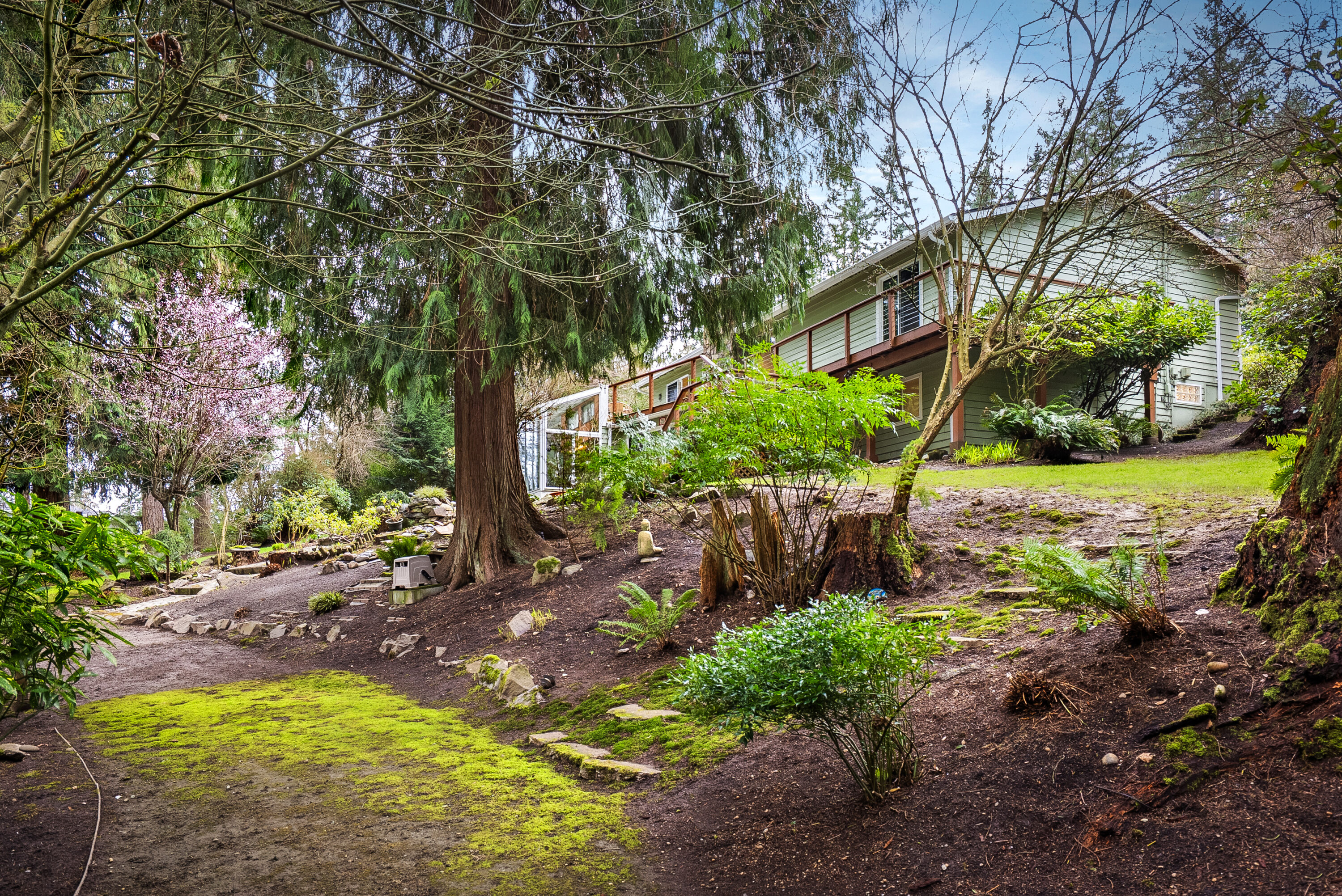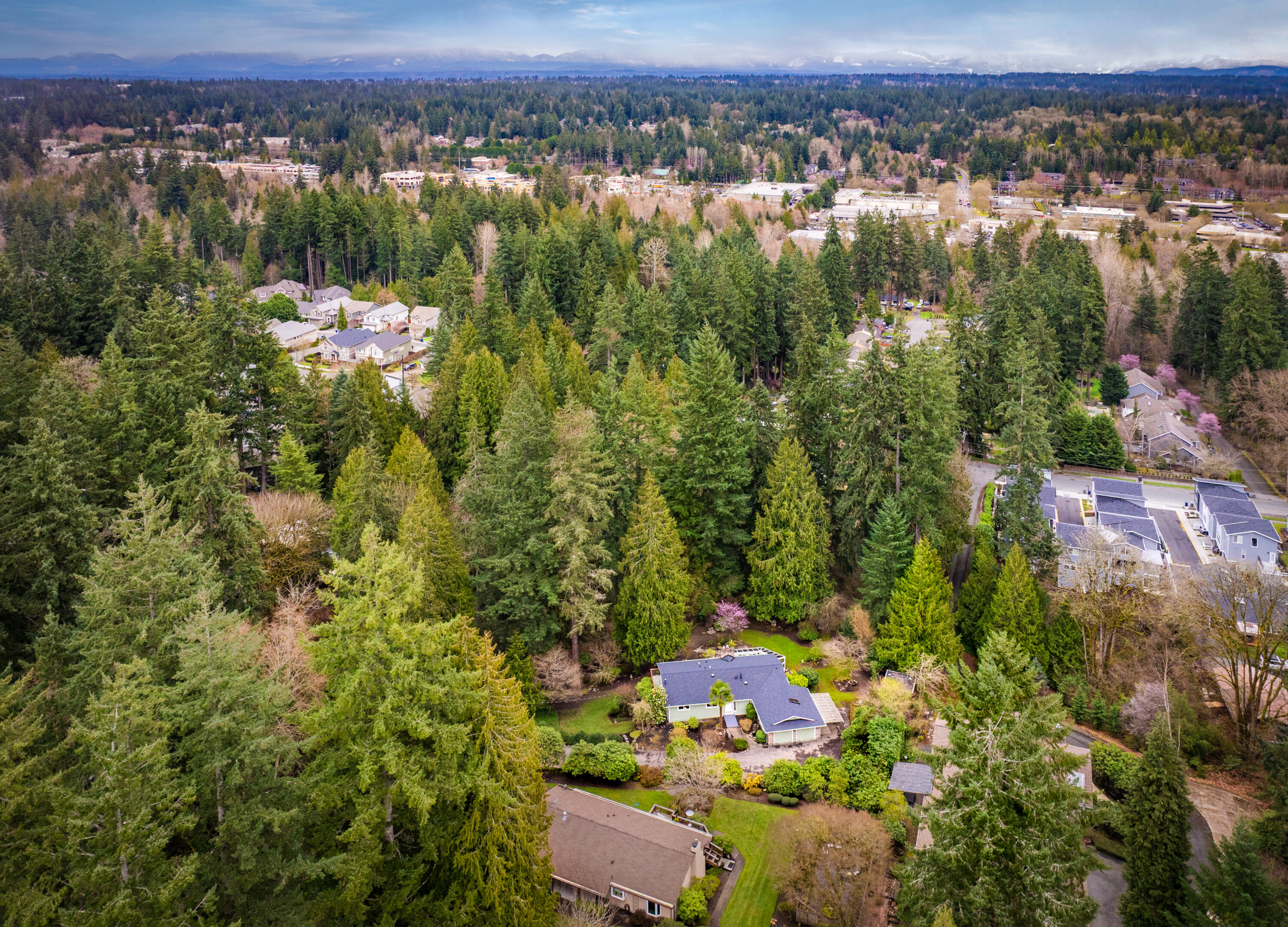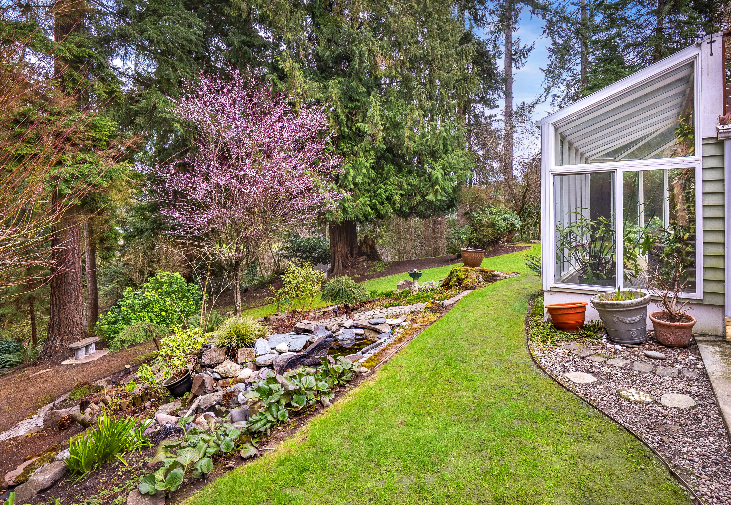 Tucked between Mill Creek Town Center and Martha Lake, this Bothell home offers the rare combination of privacy and convenience on just over an acre of park-like property without sacrificing daily necessities. The home sits down a long driveway surrounded by lush landscaping and towering trees that create a secluded setting. Inside, fresh interior paint, newly refinished oak hardwood floors, and new carpet guide you throughout. The kitchen offers ample storage and prep space for everyday cooking or entertaining, and the spacious dining room opens directly to the back deck for effortless summer hosting. Evenings will be spent relaxing in the living room, enjoying views of the property. The main-floor primary suite boasts private deck access, a sitting nook, generous closet space, and an ensuite bathroom. A secondary bedroom and nearby hall bath complete the main level. Downstairs, a large bonus room awaits with additional living space and a tranquil solarium, the perfect space to relax or nurture your green thumb. You will also find two additional bedrooms, a full bathroom, a laundry room, and oversized storage for easy organization. Outside, the property continues to impress with a garden shed, multiple park-like areas for outdoor living, and simply enjoying the beauty of the PNW.