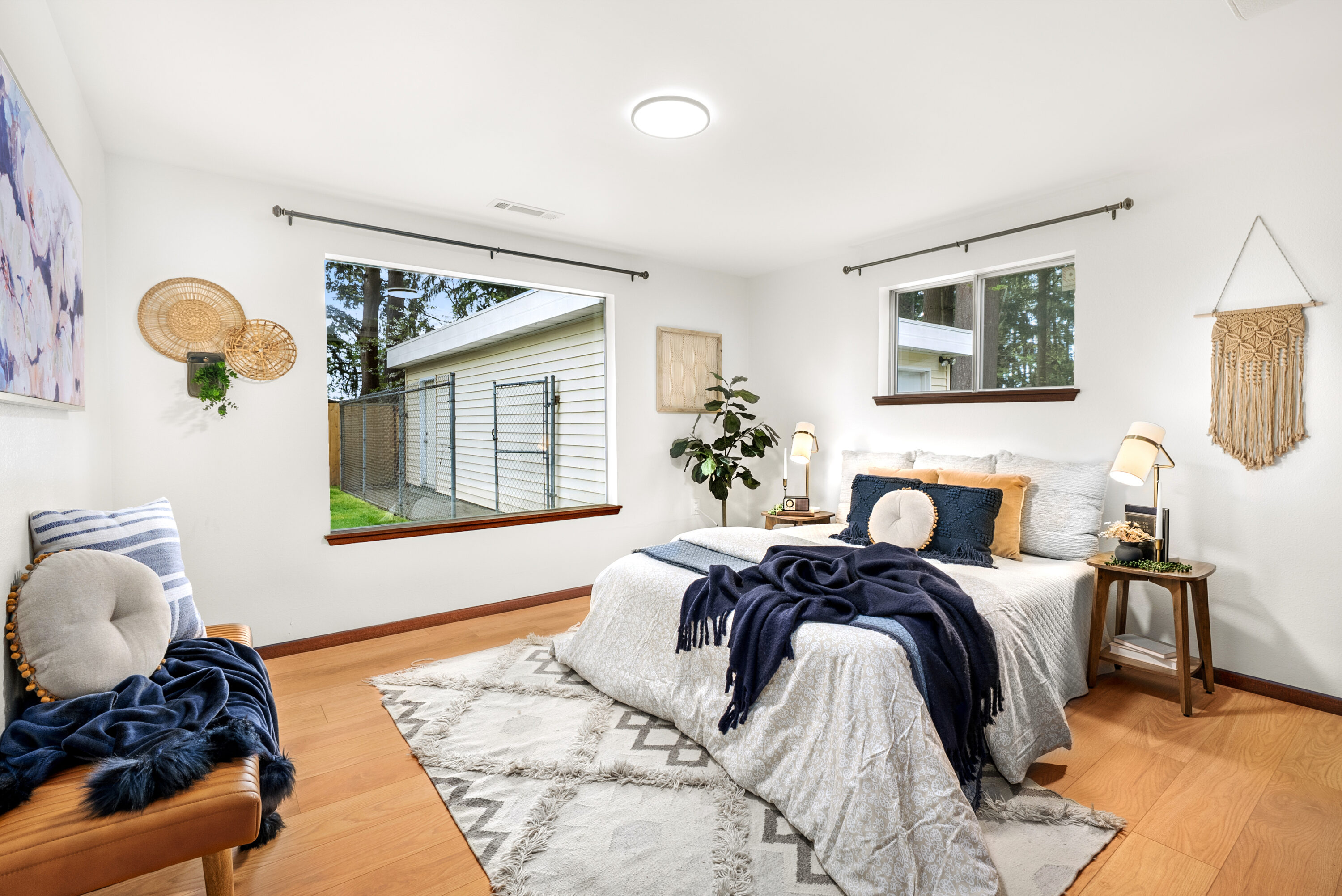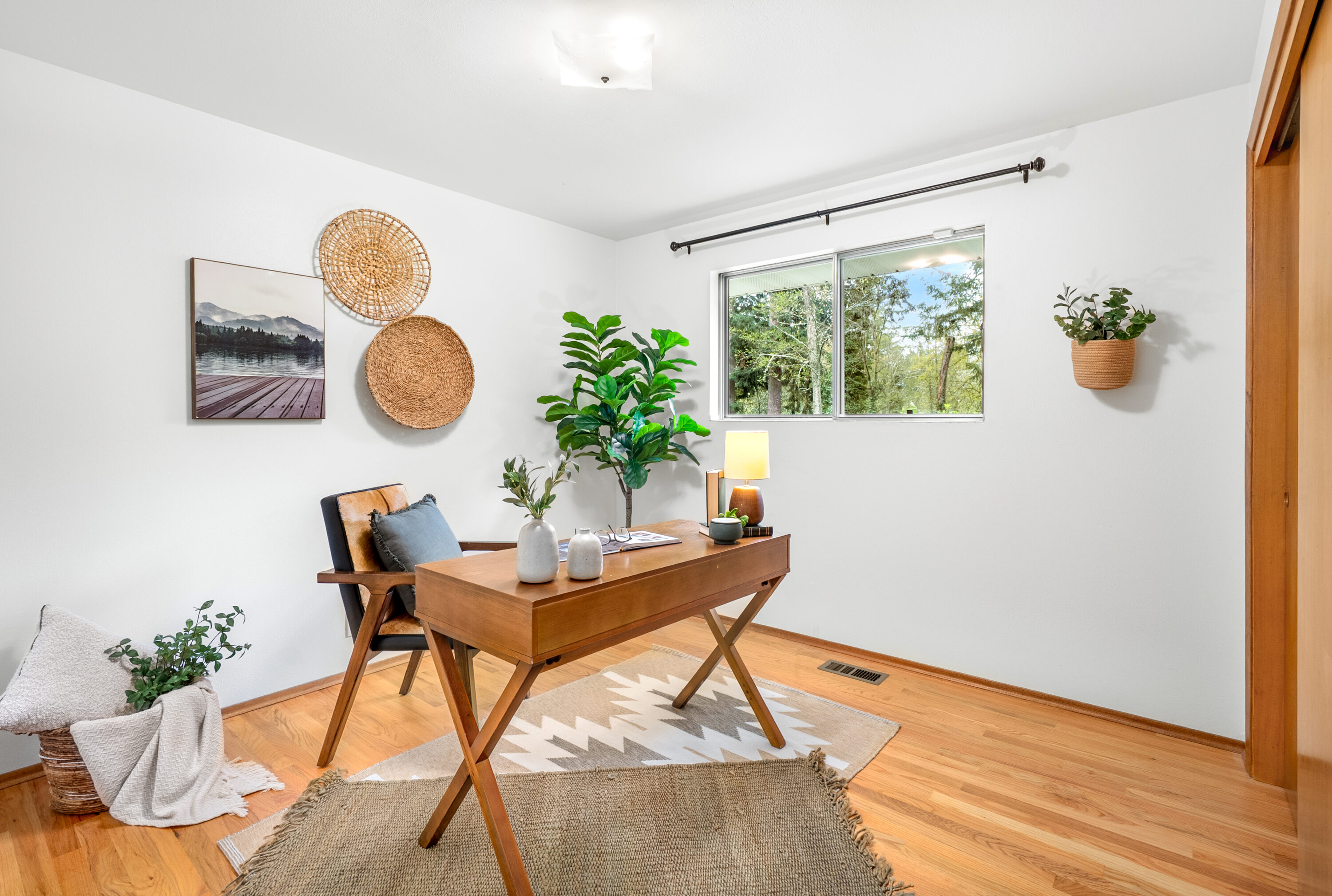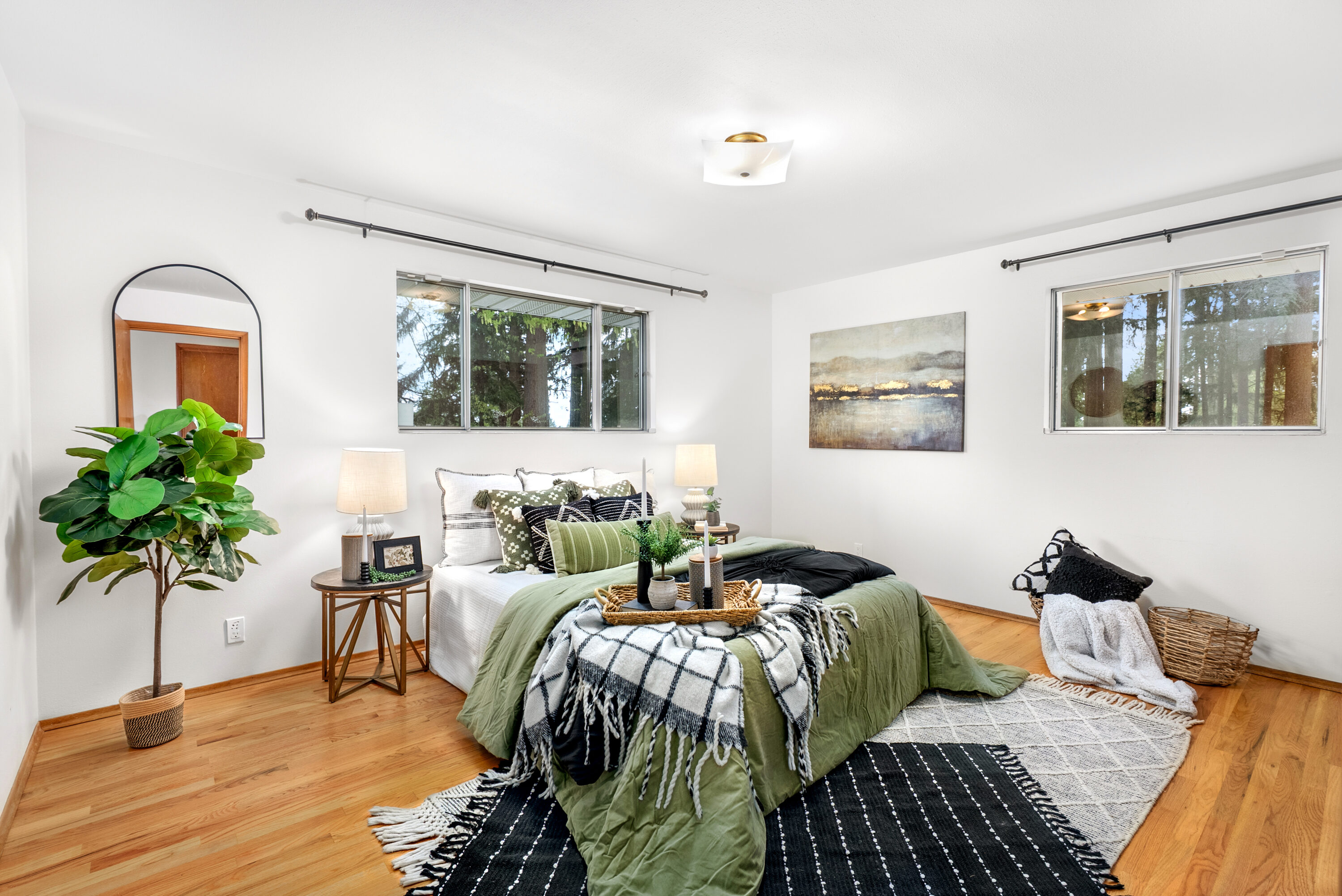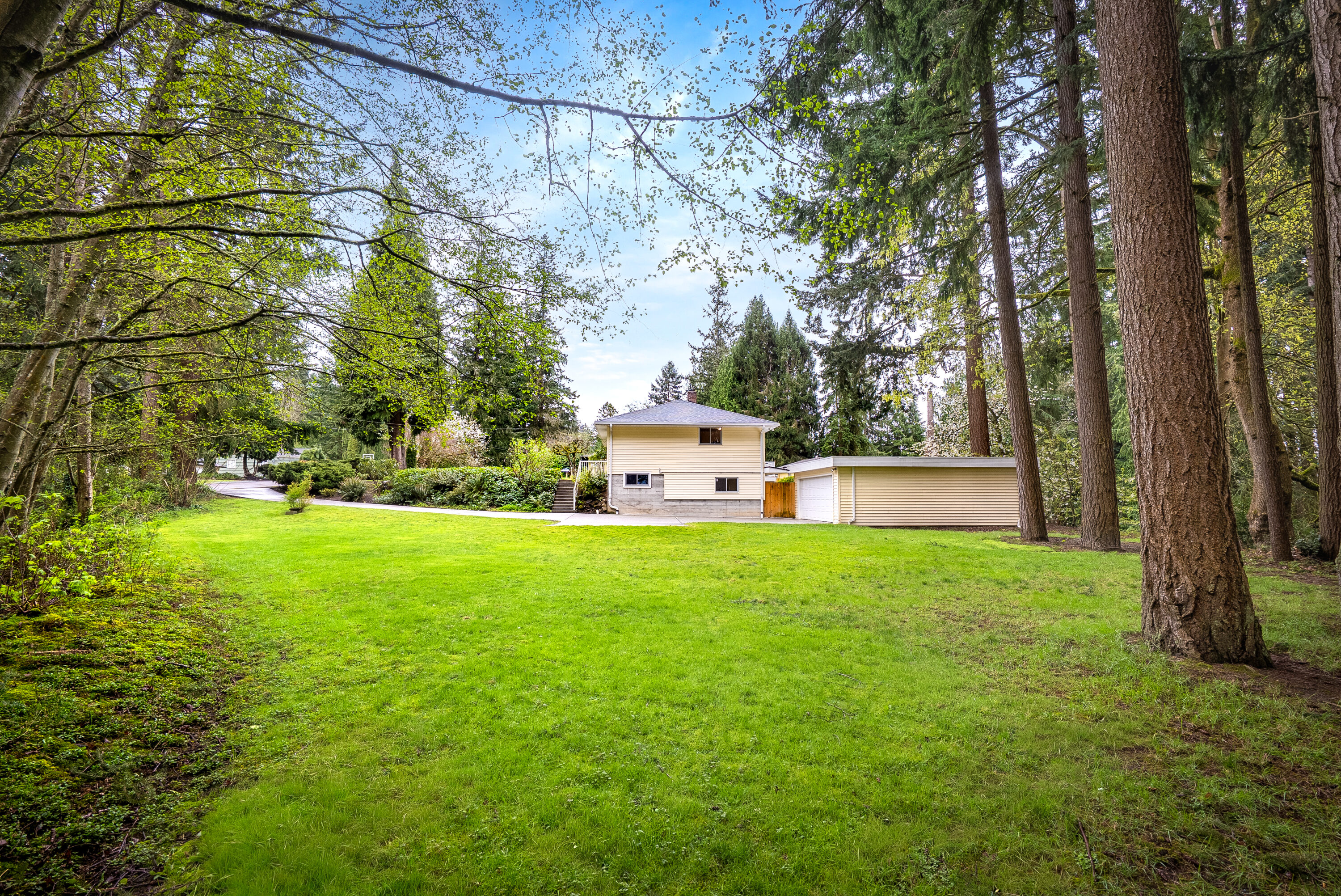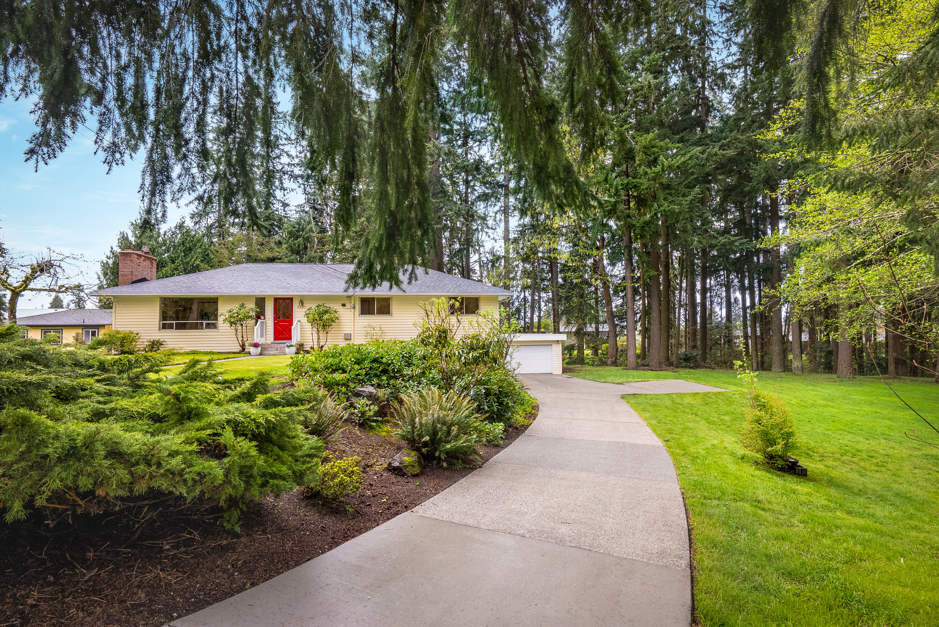 Never before listed and set within a quiet cul-de-sac just minutes from Puget Sound beaches, Paine Field, and Boeing, this nearly original 1950s property offers the ideal balance of PNW tranquility and everyday convenience. Nestled on two beautifully maintained acres, this home invites space to roam while remaining close to daily conveniences. Inside, original hardwood floors lead through the front living room, where a classic wood-burning fireplace creates a warm and relaxing atmosphere. The kitchen offers generous storage, a dining nook, and additional flex space perfect for a sitting area or workspace. Take your living space outdoors to the back deck, ideal for summer hosting. Down the hall, three well-sized bedrooms are complemented by a recently refreshed bathroom featuring a dual vanity and additional storage. The lower level expands your living options with a spacious bonus room warmed by a wood-burning fireplace, plus direct backyard access for effortless entertaining. A fourth bedroom with built-in storage and a newly remodeled bathroom provides flexibility for guests or multi-generational living. The oversized laundry room with outdoor access adds everyday functionality, while the large unfinished utility space creates abundant storage space. Weekend adventures are easily within reach with many local parks, Puget Sound Beaches, and the Mukilteo Ferry Terminal moments away.