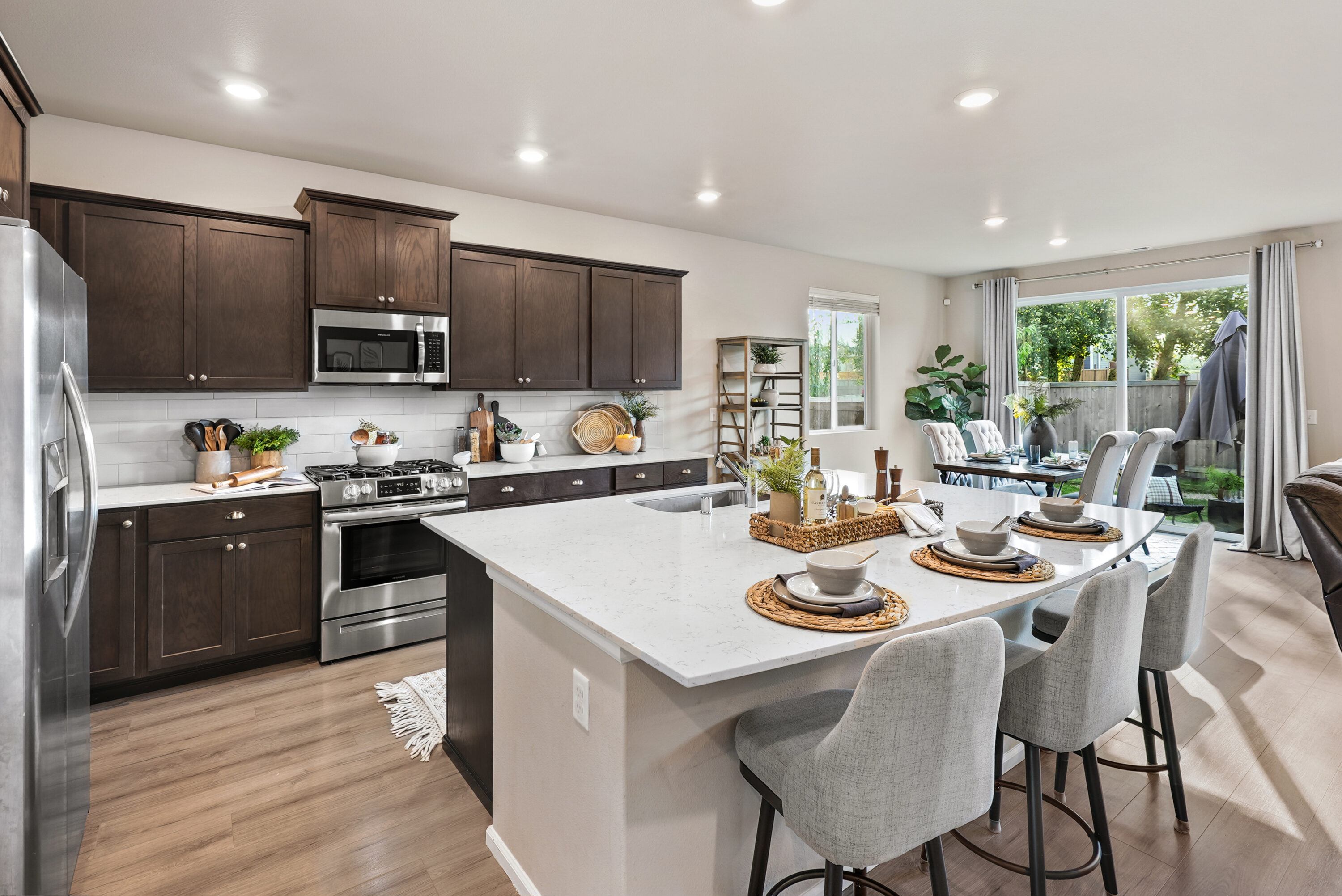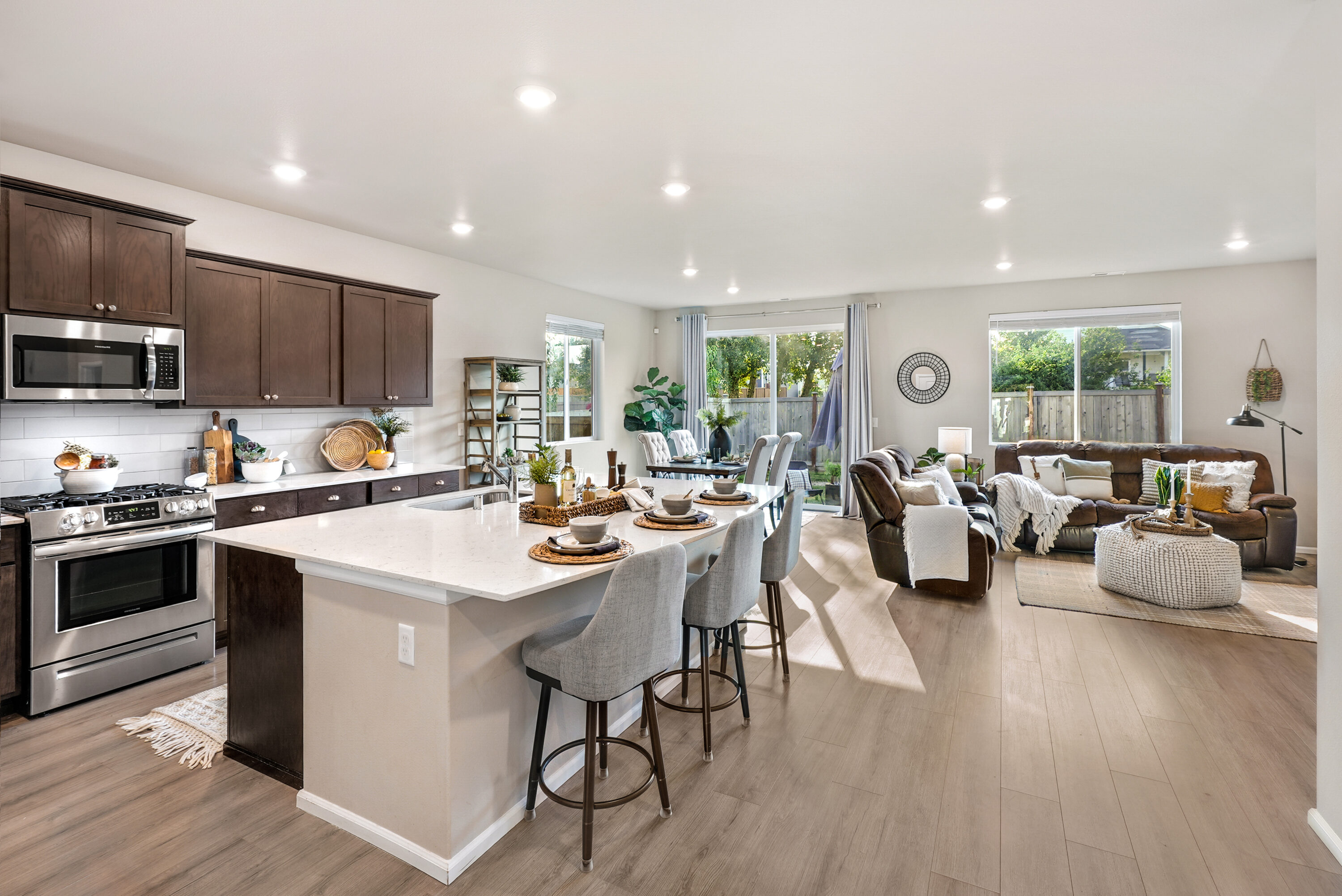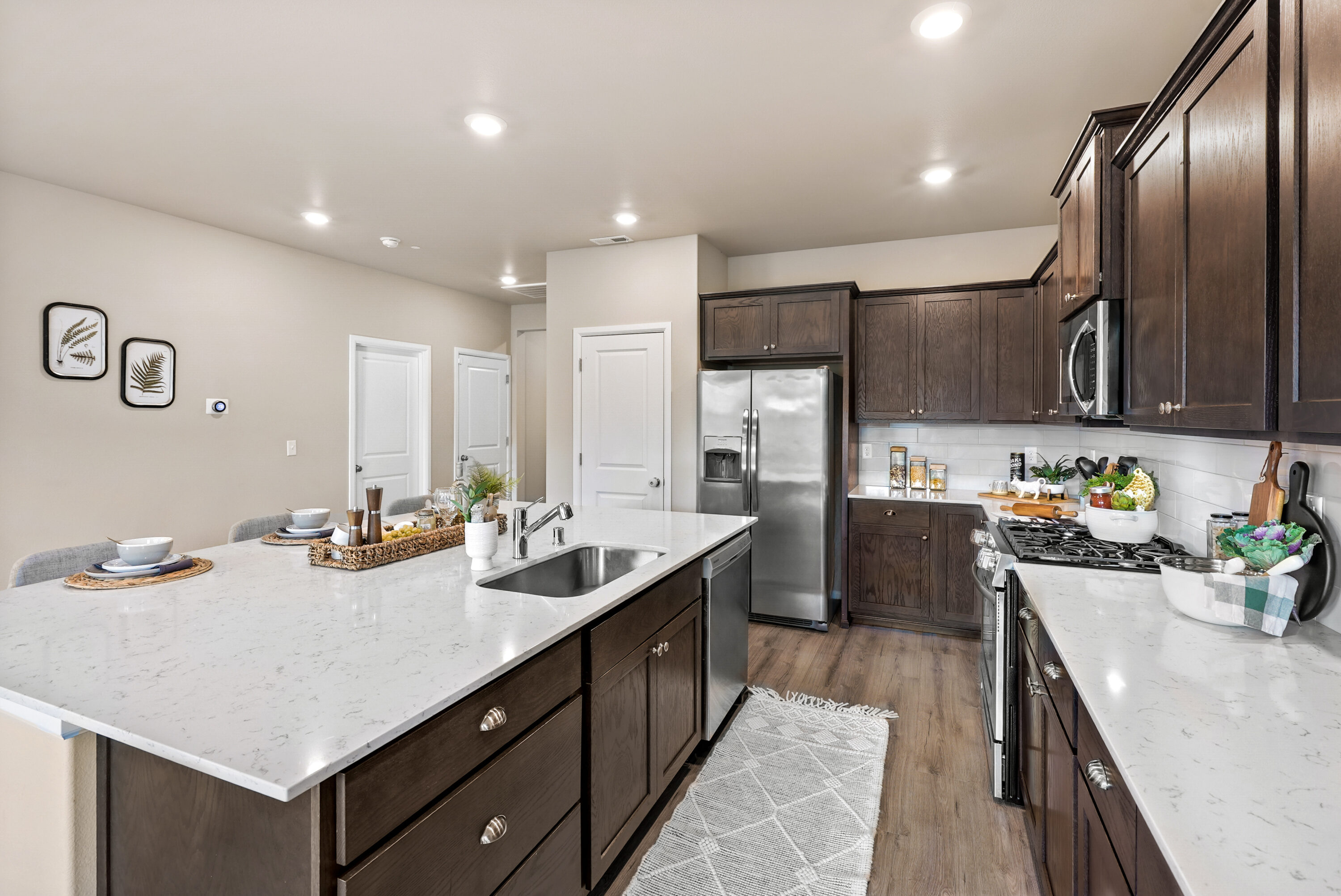 Located just minutes from the heart of Sultan, where you’ll find local favorites, riverfront beaches, and schools just minutes away, this inviting rambler pairs small-town charm with everyday convenience. Easy access to Highway 2 makes commuting simple and connects you to winter fun at Stevens Pass. Set in a peaceful, walkable neighborhood with a community park, this home welcomes you with bright interiors and well-maintained LVP flooring throughout. The open-concept kitchen and living space is the true heart of the home, boasting an oversized island, quartz countertops, a pantry, and seamless flow to the dining and living areas, perfect for everyday living and lively gatherings. Two comfortable bedrooms and a nearby full bath provide flexible space for guests or a growing household, while the private primary suite offers a relaxing retreat with a spacious ensuite featuring double vanities, a walk-in closet, and added storage. You will find everyday functionality with a two-car garage and a nearby oversized laundry room, making this home as practical as it is charming.