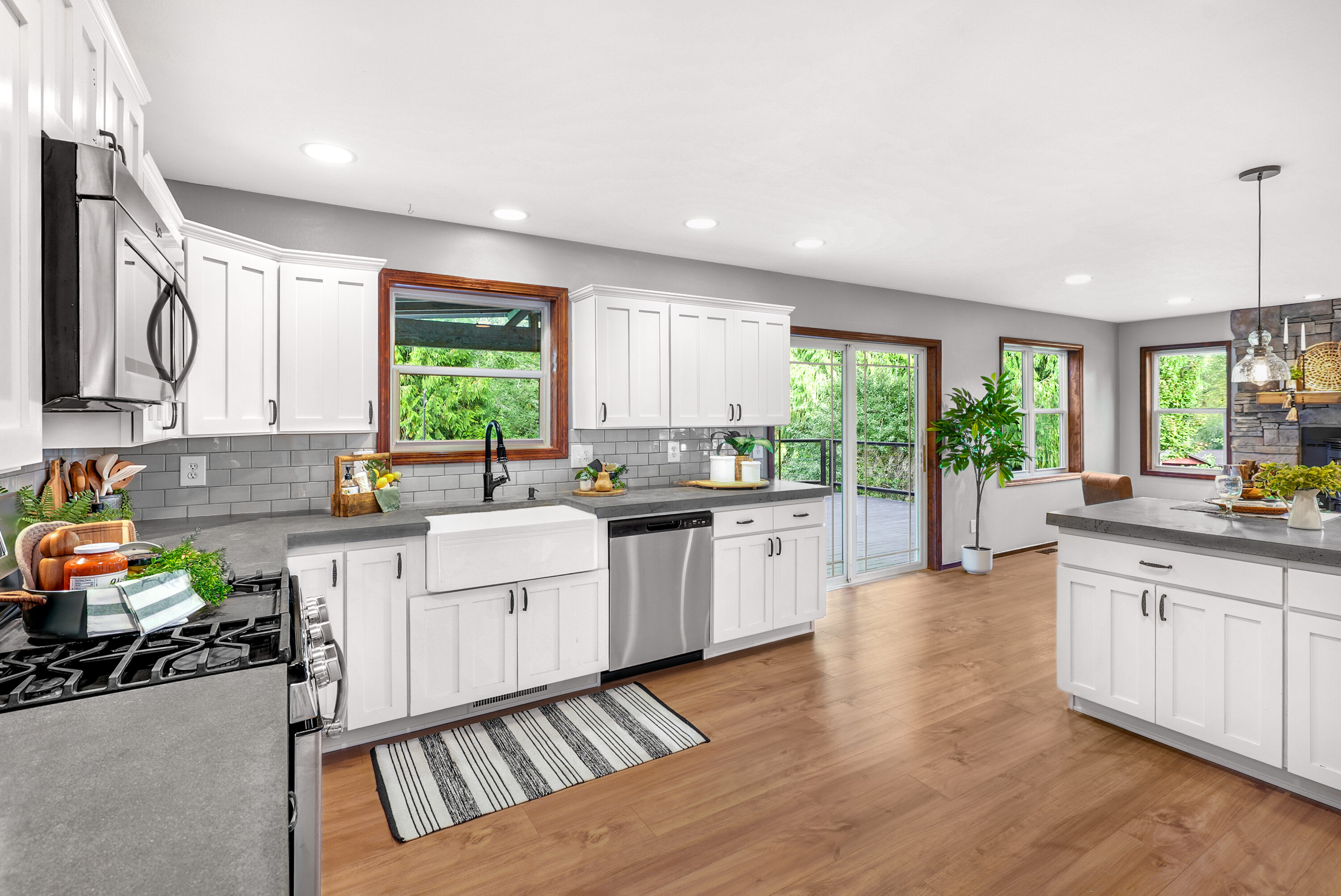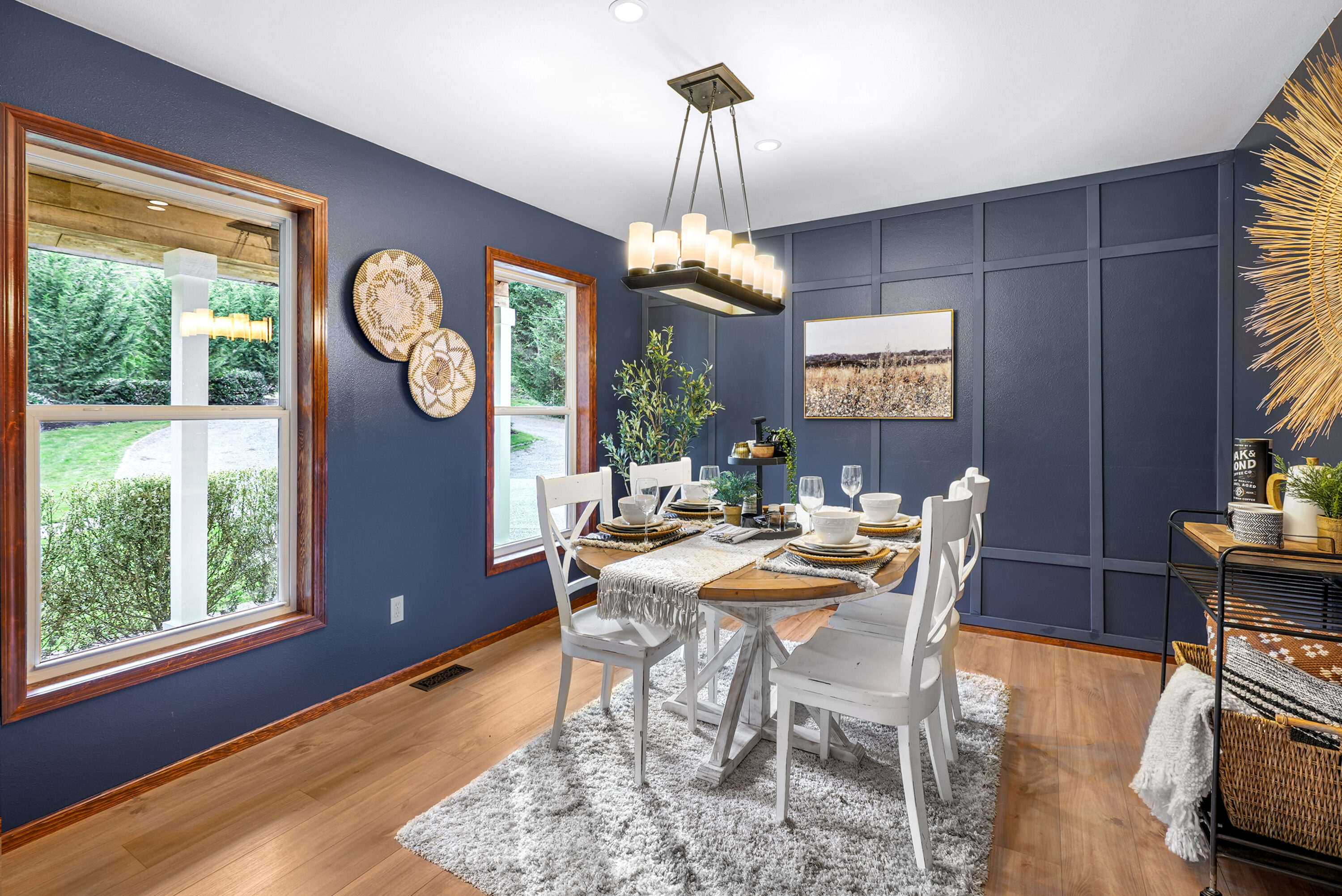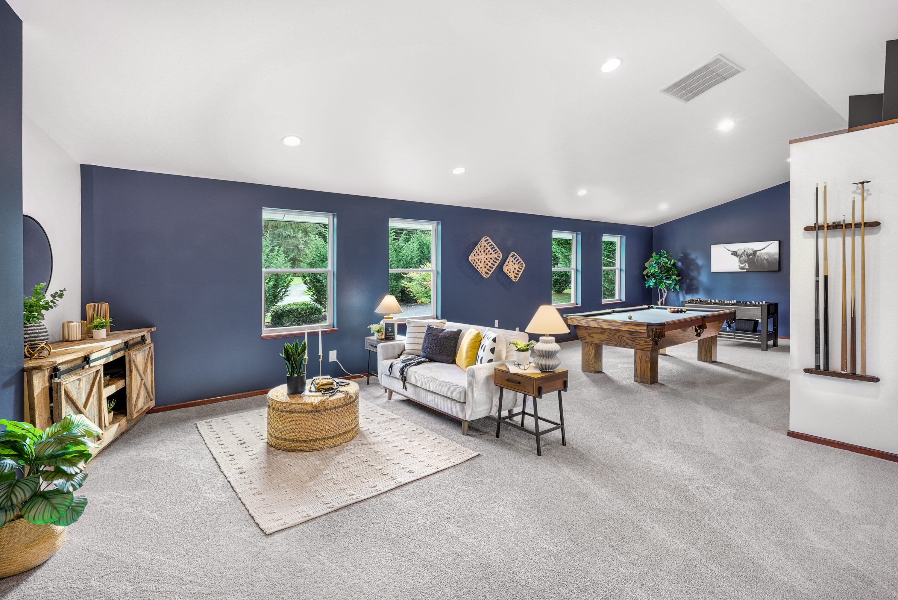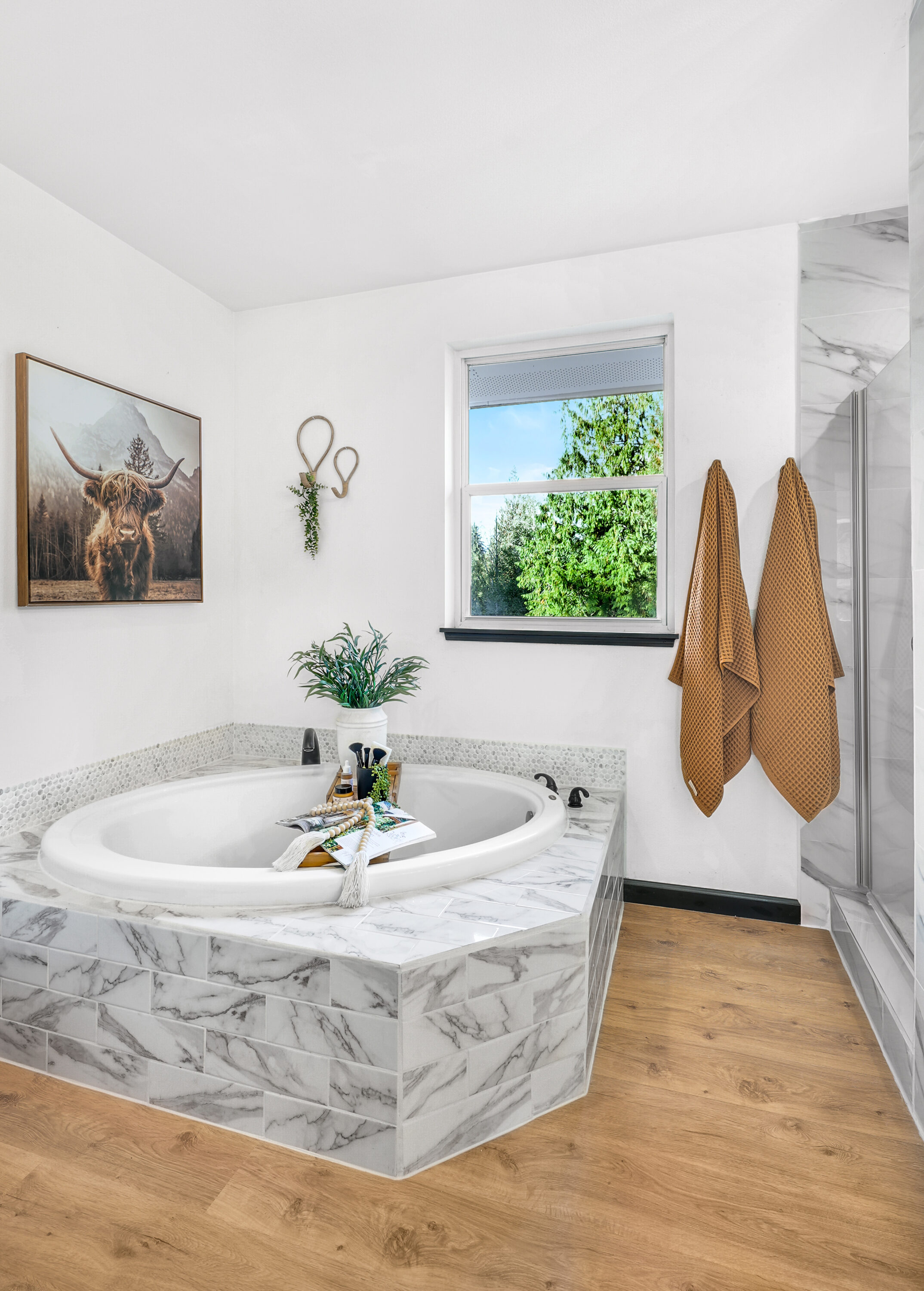 Tucked away near Lake Bosworth, this stunning Snohomish retreat offers the perfect balance of privacy, nature, and convenience. Surrounded by lush Pacific Northwest greenery, lakes, and scenic trails, you’ll enjoy a serene lifestyle with easy access to Snohomish, Lake Stevens, and Granite Falls. Fresh exterior paint and a new roof create a bright, welcoming first impression, while inside, durable LVP flooring guides you through light-filled living spaces designed for everyday comfort and style. The living room seamlessly connects to a casual dining area anchored by a cozy fireplace, while the kitchen is a chef’s dream, featuring gleaming stamped concrete countertops, stainless steel appliances, a spacious pantry, and a peninsula with bar seating. A moody formal dining room sets the scene for intimate dinners and festive gatherings alike. Step outside to the expansive back deck with both covered and open-air space for year-round enjoyment, complete with an outdoor fireplace and soothing hot tub, all set against nearly two acres of peaceful surroundings. Upstairs, the oversized primary suite offers a private retreat with a chic ensuite featuring a soaking tub, walk-in shower, and generous closet. Three additional bedrooms and a stylish hall bath provide space for everyone, while above the three-car garage, an oversized bonus room with a private room and ¾ bath opens endless possibilities for multigenerational living, a secluded guest suite, or a home office. With thoughtful updates including a new roof, plus ample space for a future shop or RV parking, this property truly blends comfort, versatility, and the best of Pacific Northwest living.
