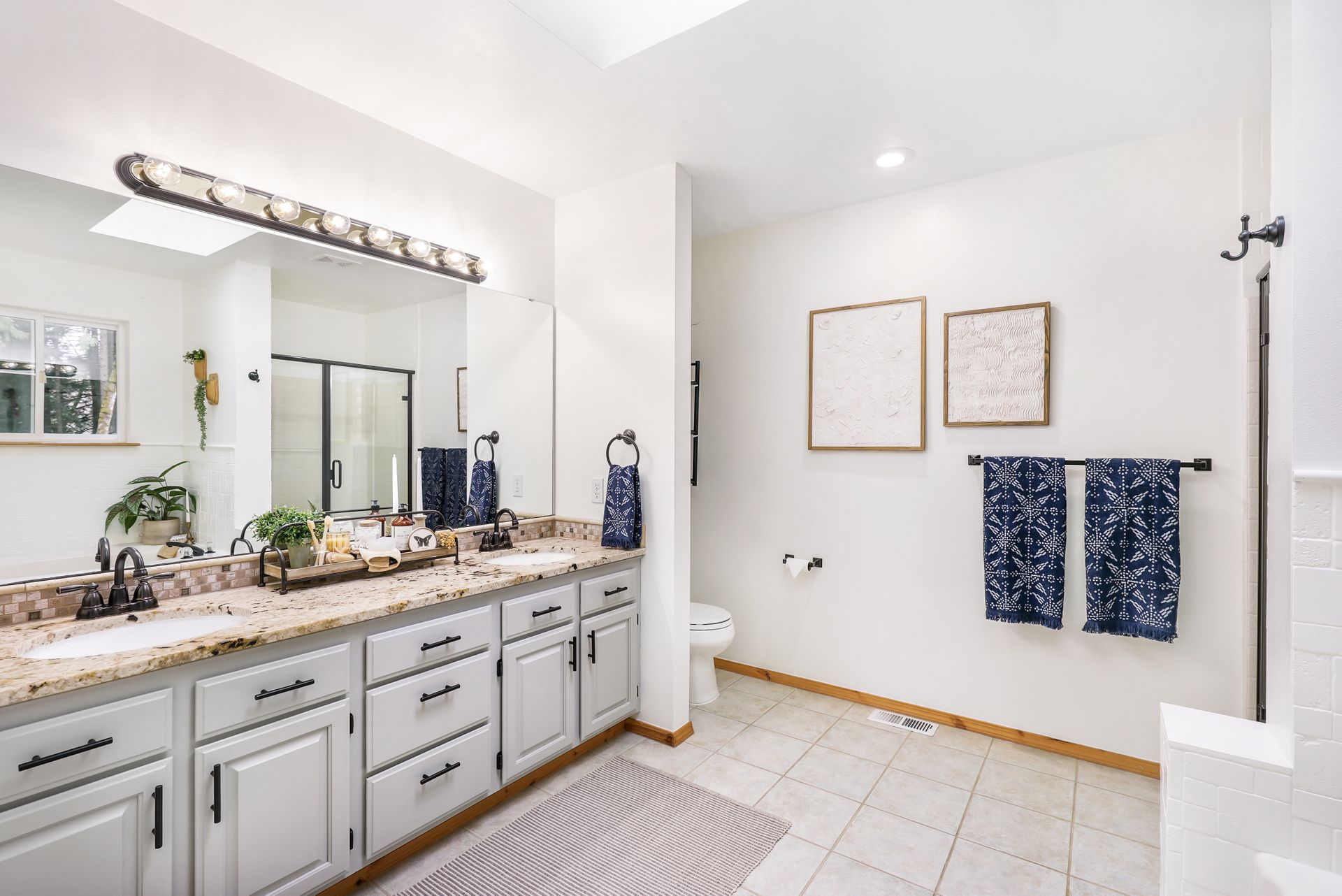 The spacious primary bedroom boasts private access to a personal deck and a relaxing five-piece ensuite with a walk-in shower, a soaking tub, and dual vanities.
