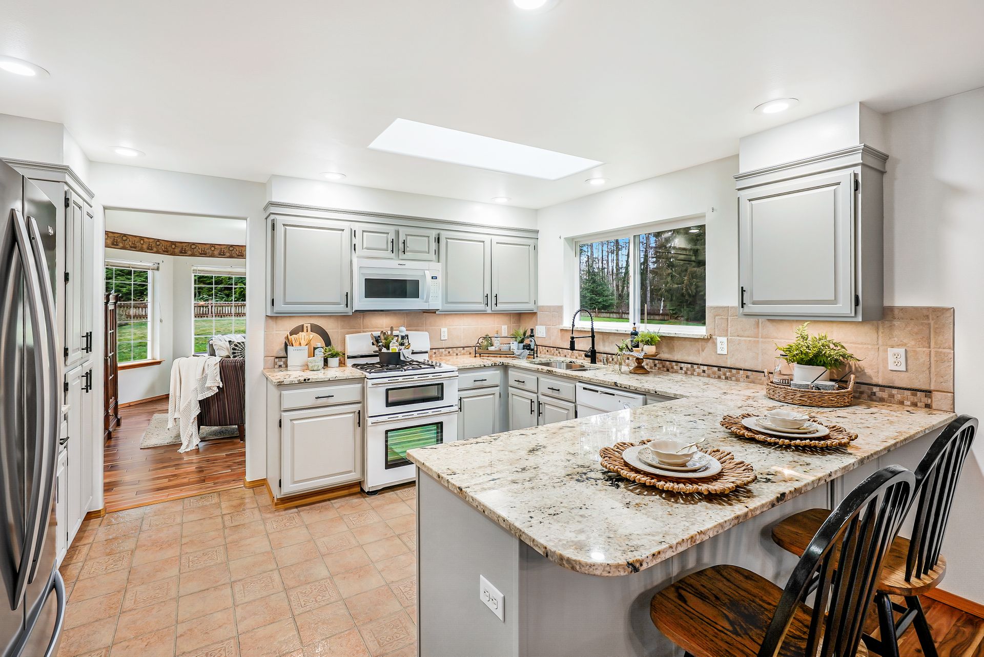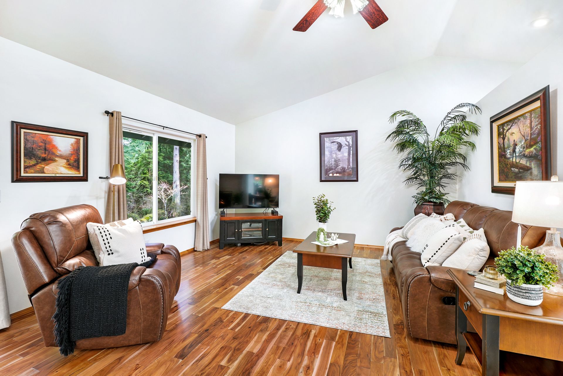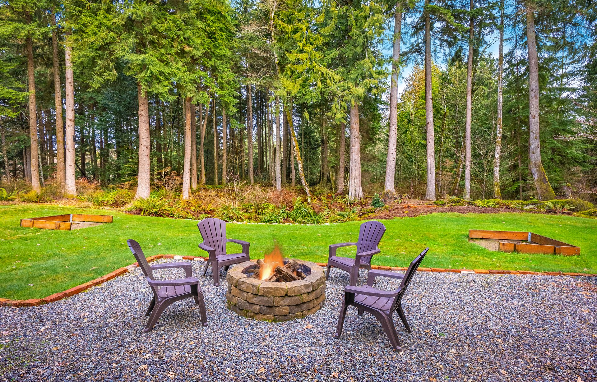 You will love the time spent soaking in the serenity and peacefulness of your backyard; host and unwind on the deck enjoying views of the thoughtfully manicured forested area, play horseshoe or other favorite yard games on the sprawling lawn, and stay warm around the firepit on cool PNW evenings.