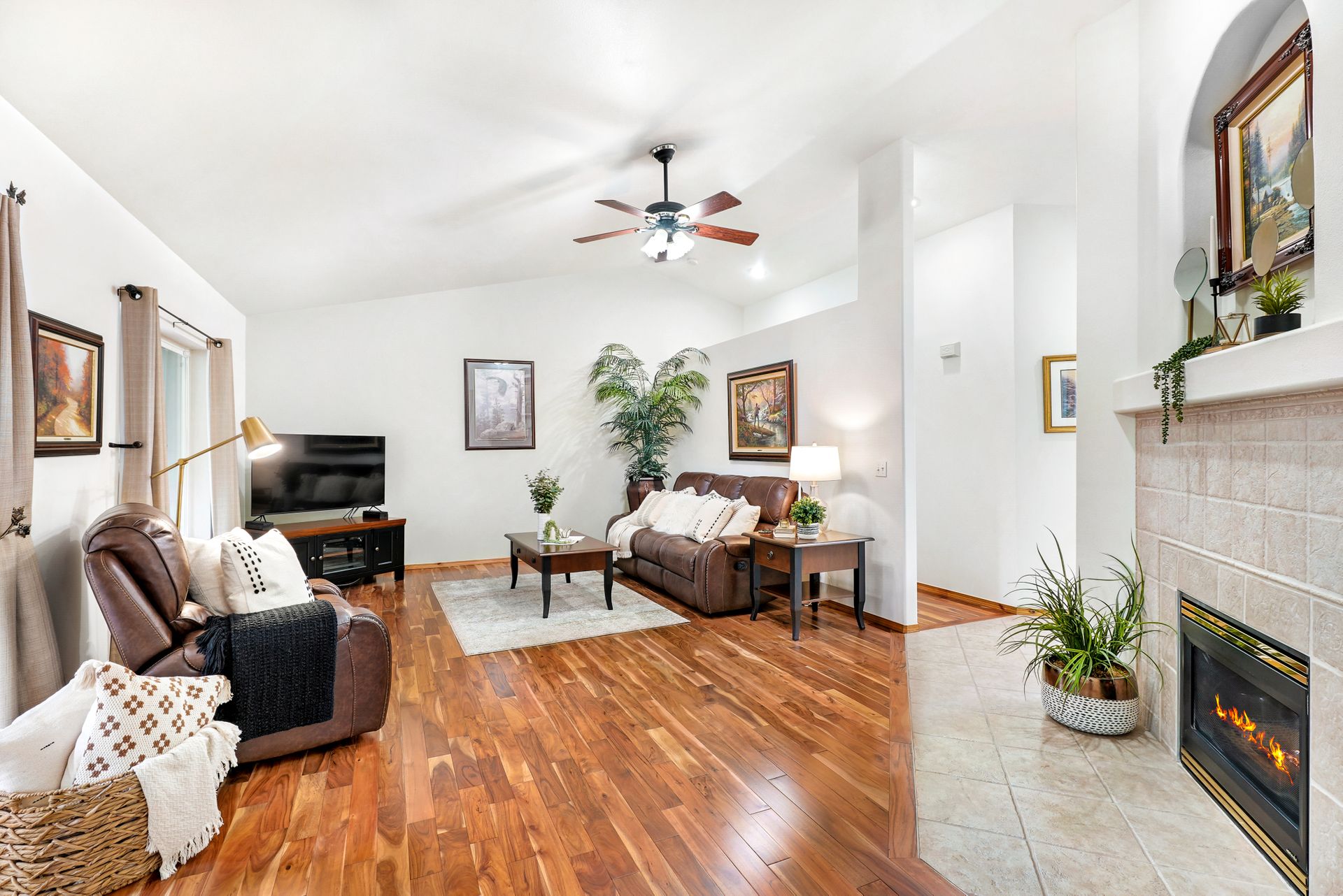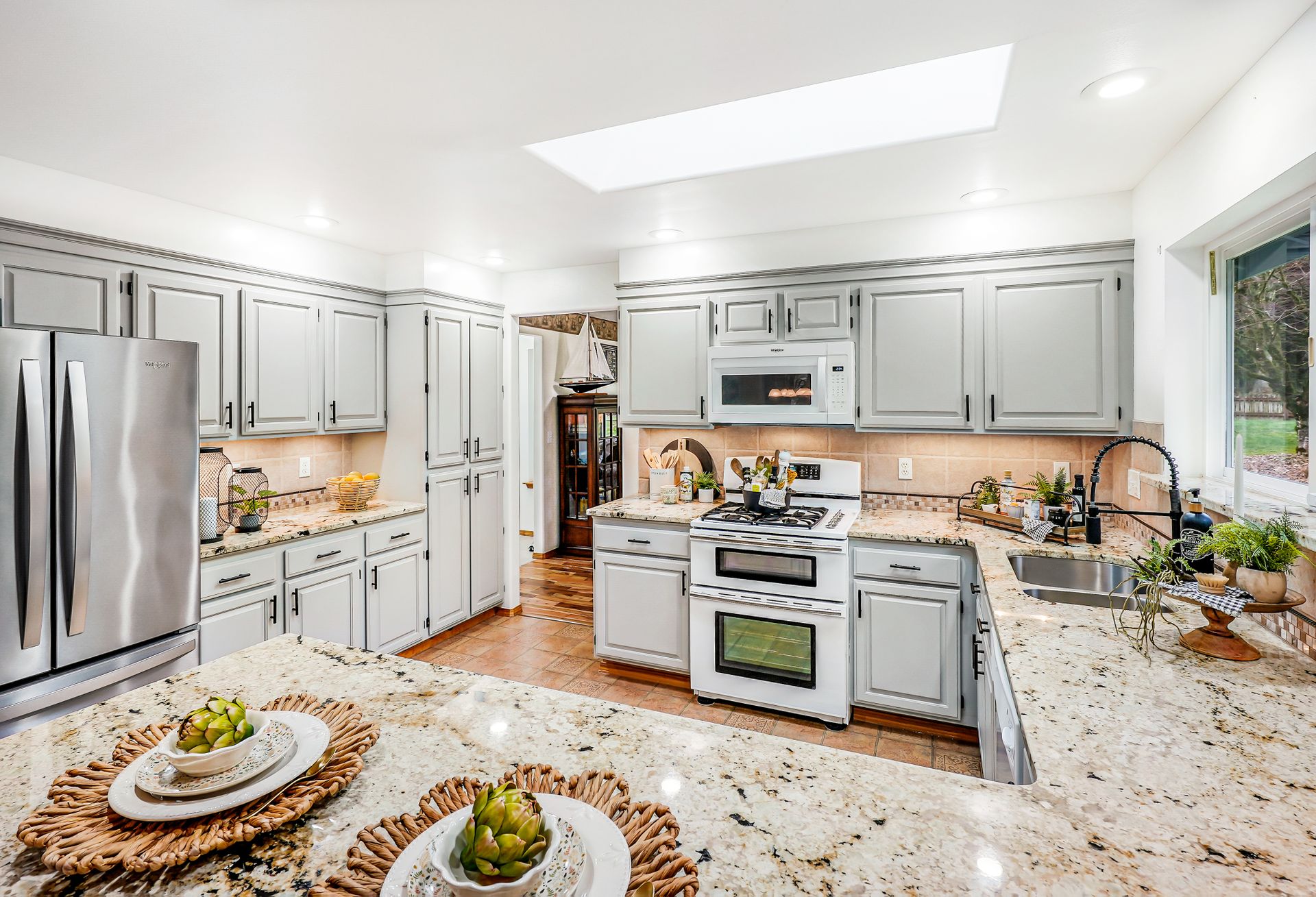 Whether you’re hosting Sunday football, movie night, or simply unwinding with your loved ones, the great room is ideal for gathering together; abundant windows fill the space with natural light by day, and the cozy fireplace keeps you warm in the evening. You’ll find everything you need in the upgraded kitchen, a double oven, granite countertops, ample storage, and an adjacent dining space surrounded by big bay windows.