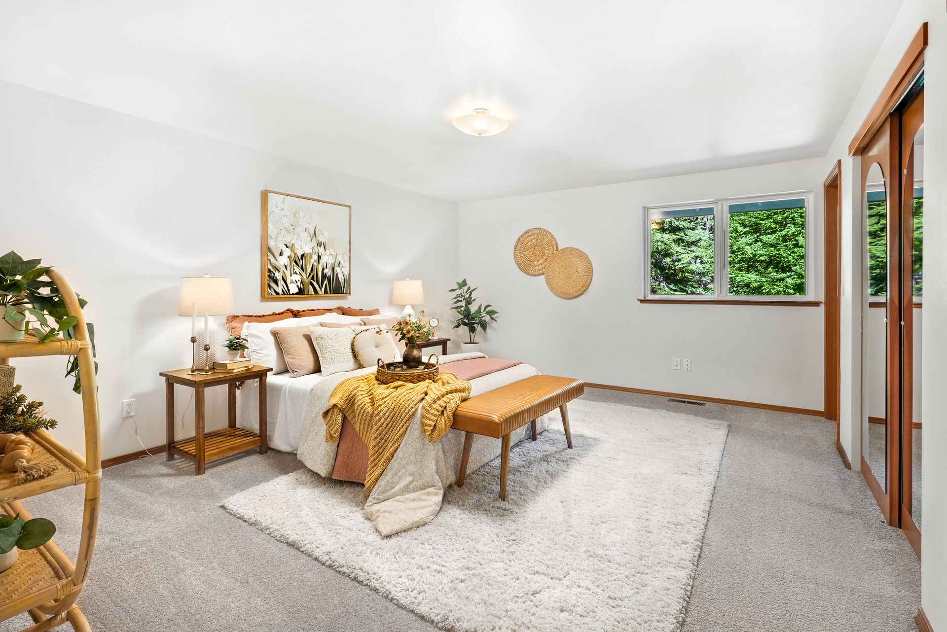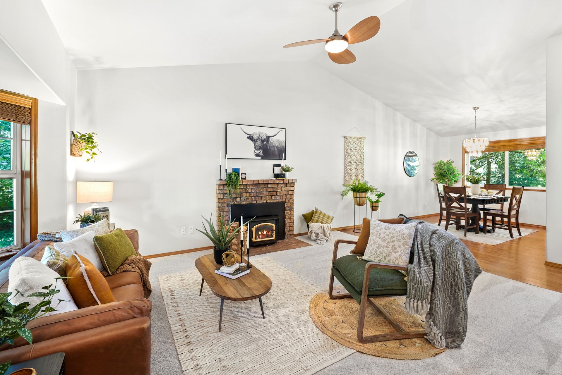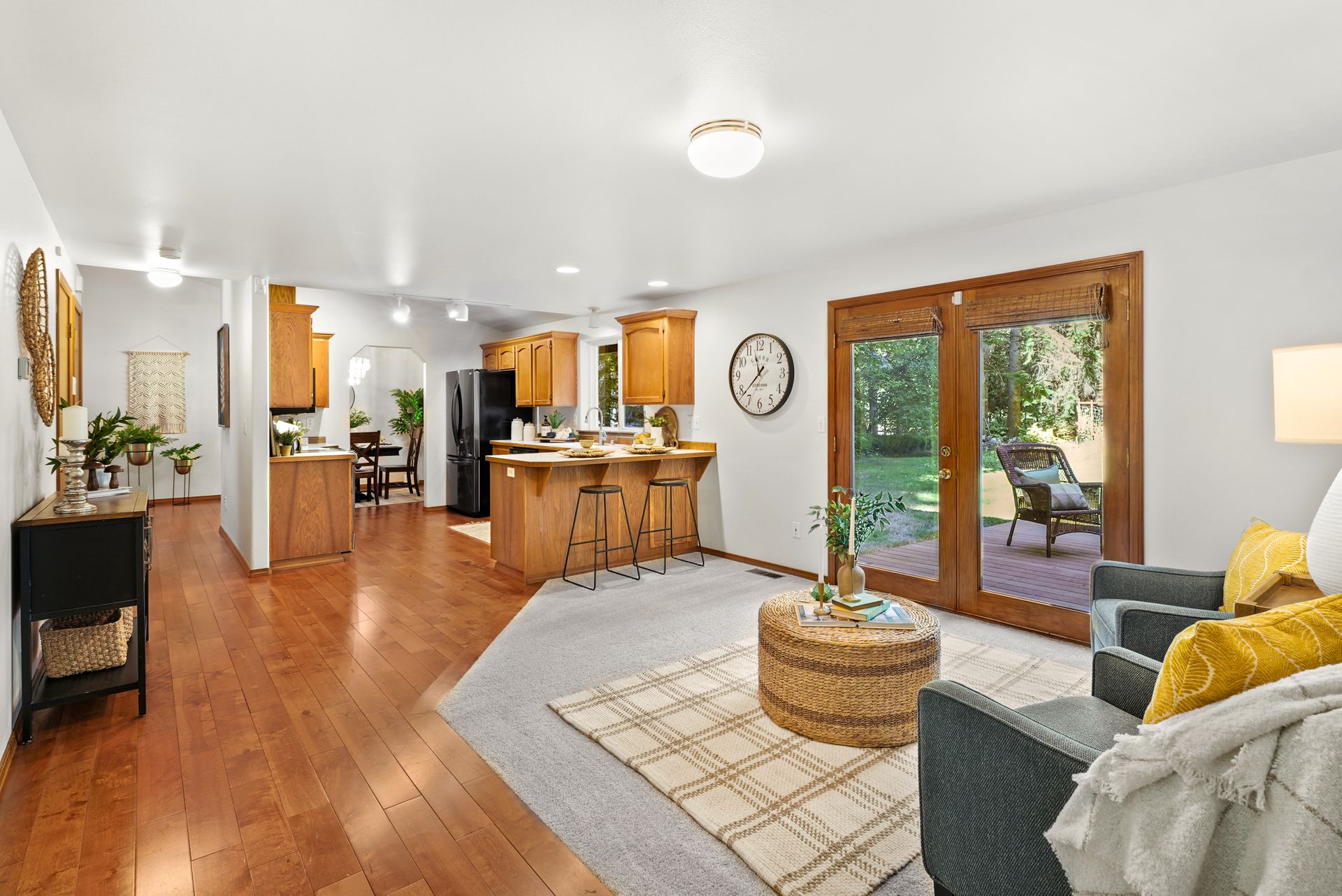 Tucked away near Lake Bosworth, this Snohomish retreat offers the perfect balance of privacy, nature, and convenience. Surrounded by lush PNW greenery, lakes, and trails, you’ll love the privacy of this property while still enjoying close proximity to Snohomish, Lake Stevens, and Granite Falls. Fresh exterior paint, a newly stained front porch, and updated exterior light fixtures welcome you in, while inside, new carpet and fresh paint create a bright, inviting feel. The spacious front living room features vaulted ceilings and a cozy wood-burning fireplace, flowing seamlessly into the dining area for easy entertaining. The kitchen shines with ample storage, a new LG appliance package, and casual peninsula seating, while a secondary living space offers versatility for relaxation and hosting. A convenient powder bath, large laundry room, and garage access simplify daily routines. The main-level primary suite provides a serene escape with a five-piece ensuite and private deck access, and a private sitting room.