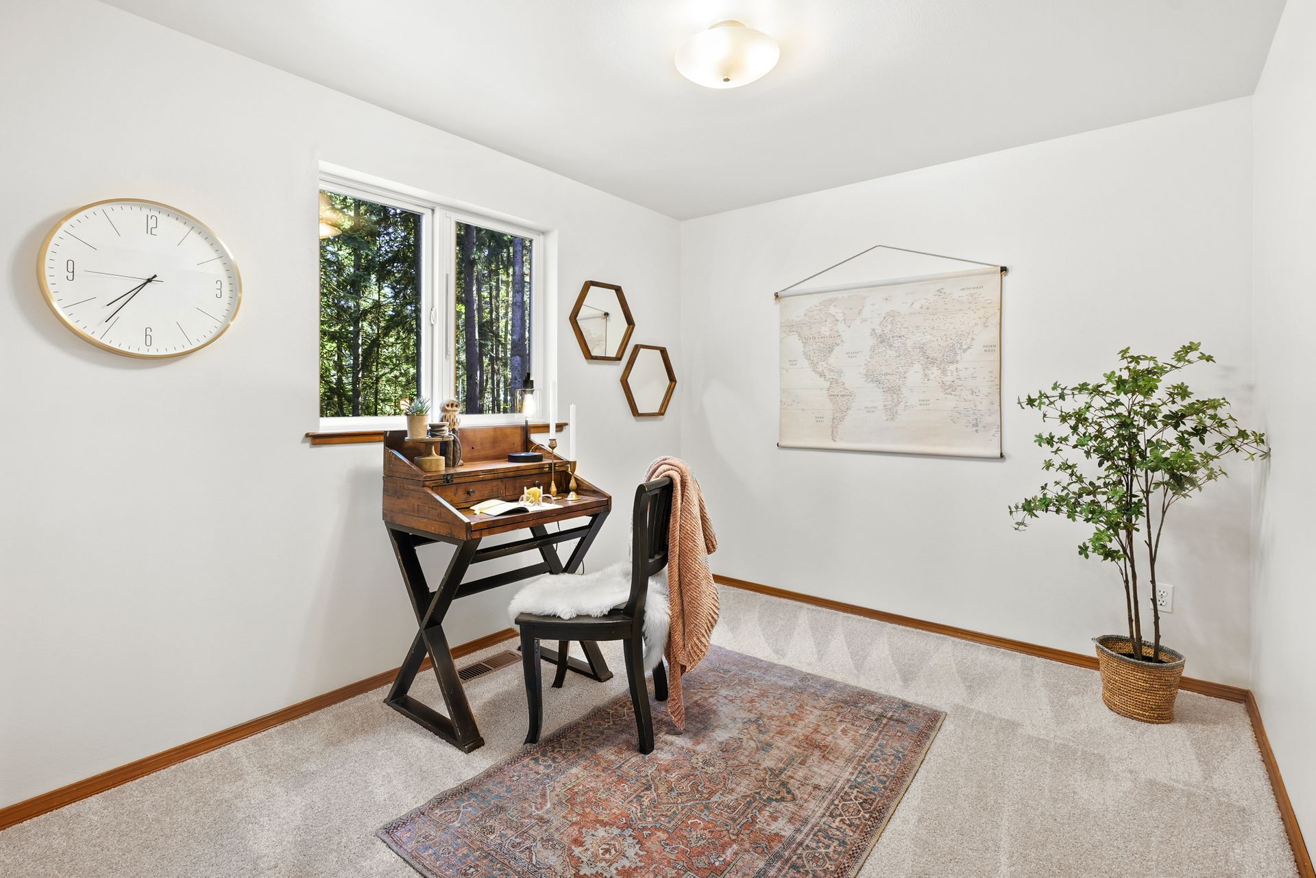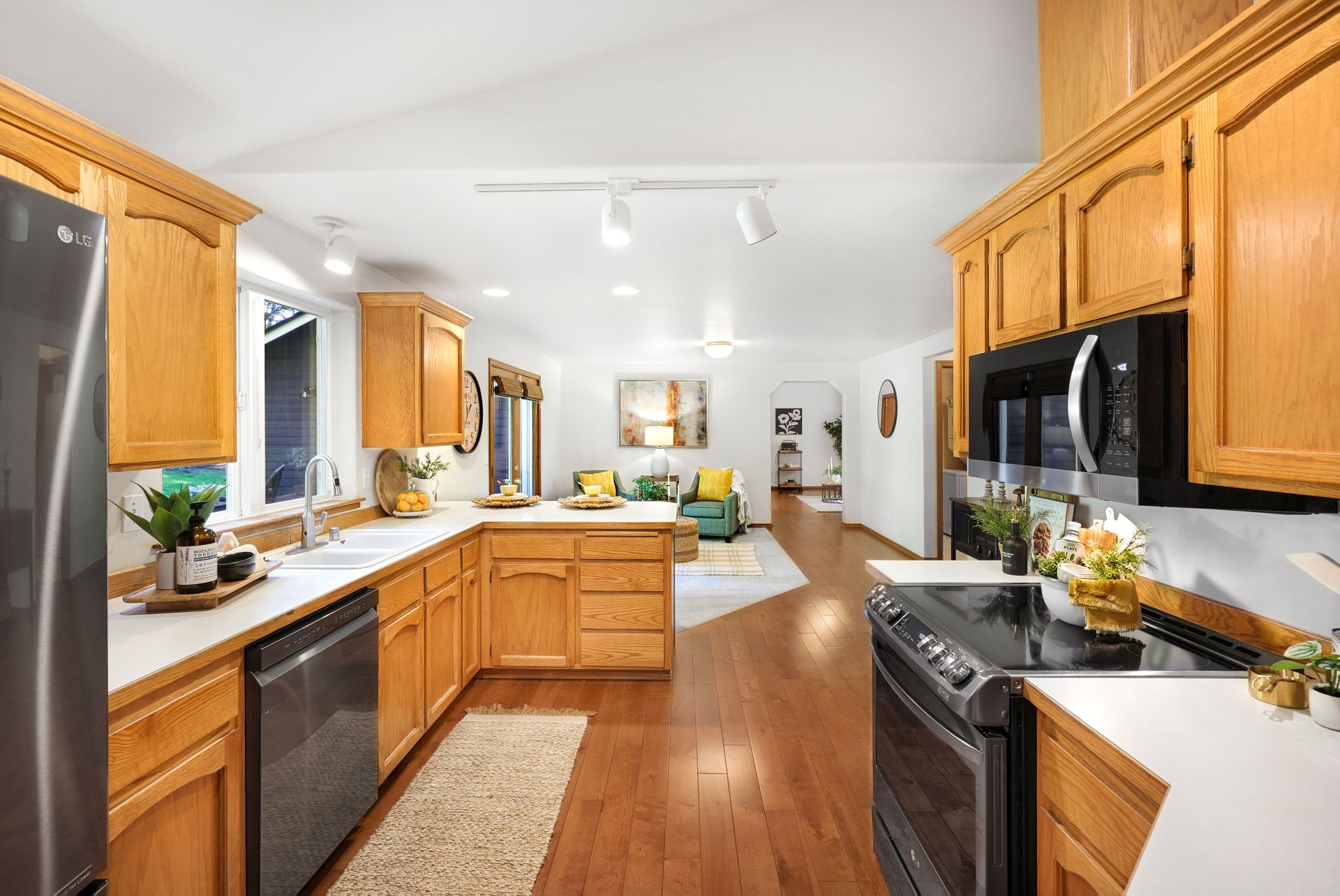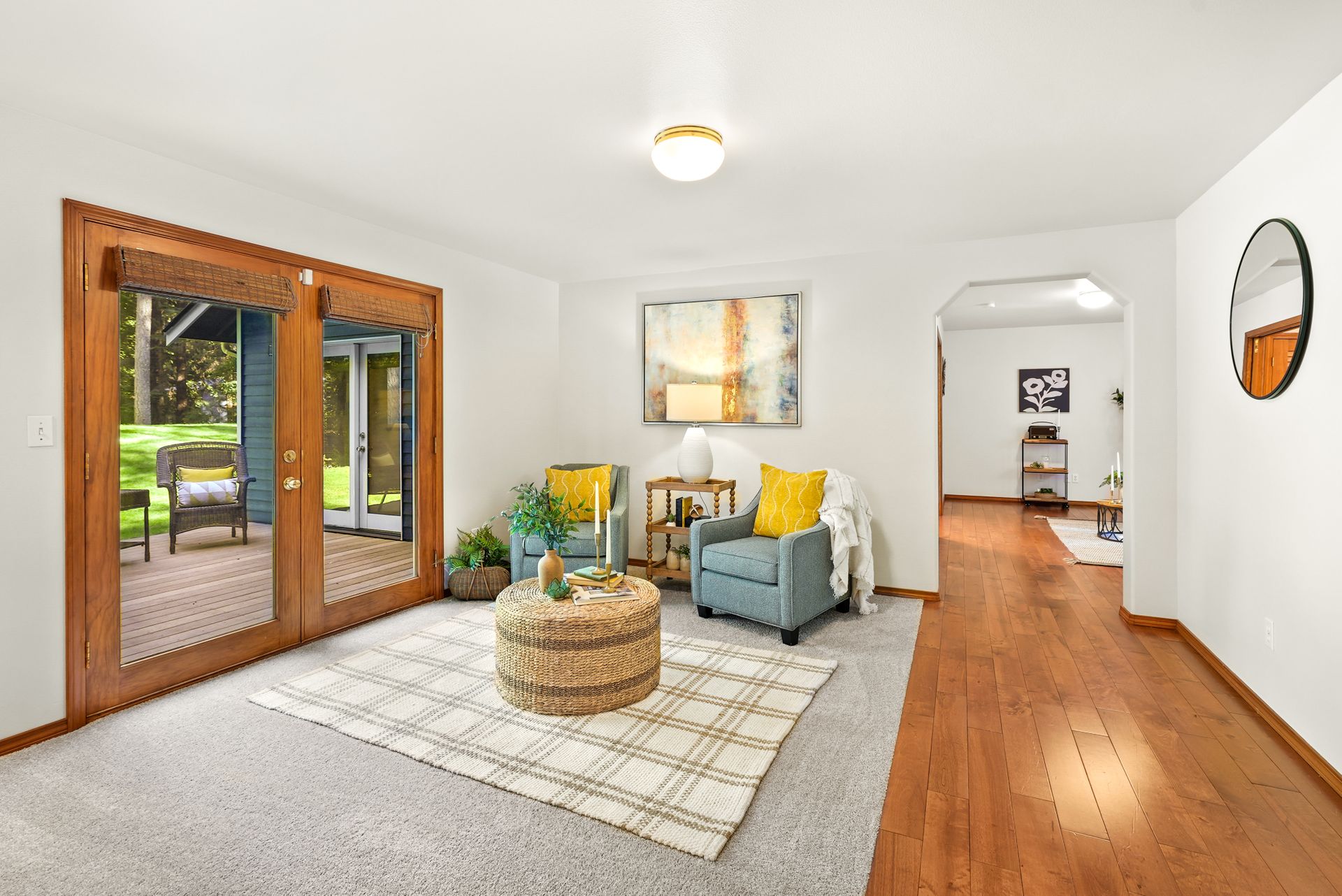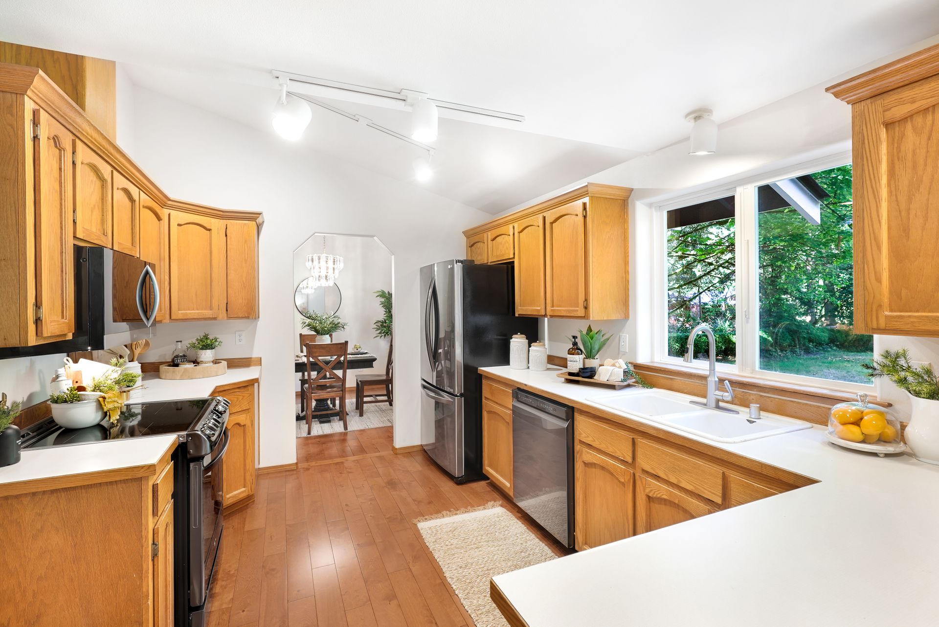 Tucked away near Lake Bosworth, this Snohomish retreat offers the perfect balance of privacy, nature, and convenience. Surrounded by lush PNW greenery, lakes, and trails, you’ll love the privacy of this property while still enjoying close proximity to Snohomish, Lake Stevens, and Granite Falls. Fresh exterior paint, a newly stained front porch, and updated exterior light fixtures welcome you in, while inside, new carpet and fresh paint create a bright, inviting feel. The spacious front living room features vaulted ceilings and a cozy wood-burning fireplace, flowing seamlessly into the dining area for easy entertaining. The kitchen shines with ample storage, a new LG appliance package, and casual peninsula seating, while a secondary living space offers versatility for relaxation and hosting. A convenient powder bath, large laundry room, and garage access simplify daily routines. The main-level primary suite provides a serene escape with a five-piece ensuite and private deck access, and a private sitting room.