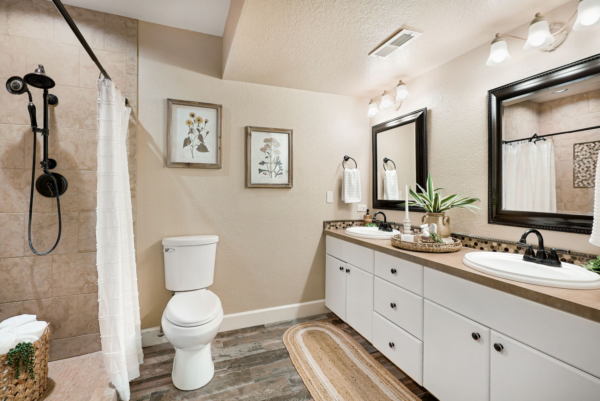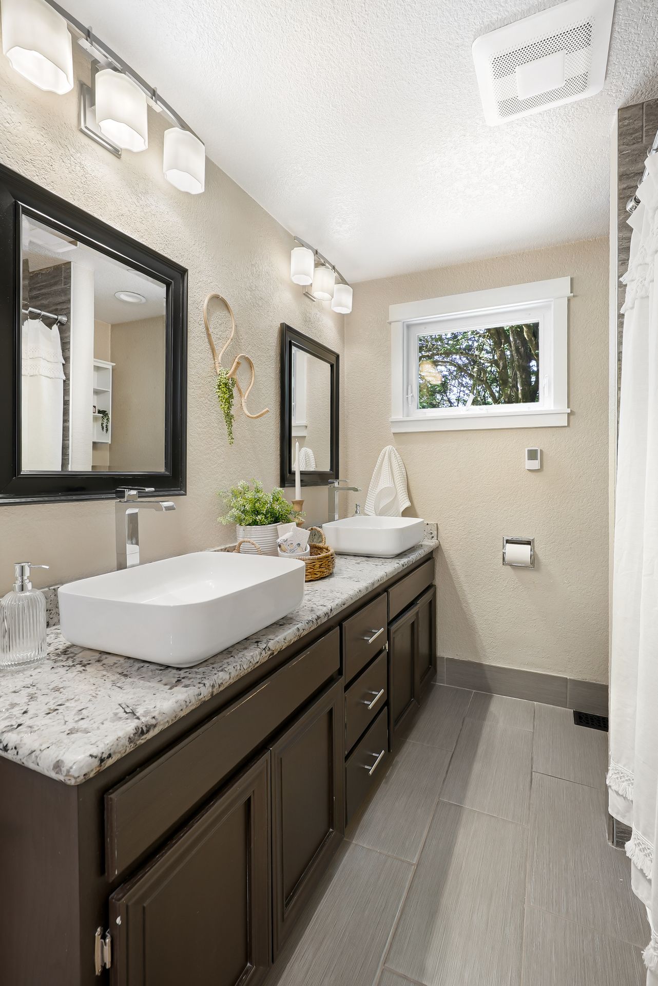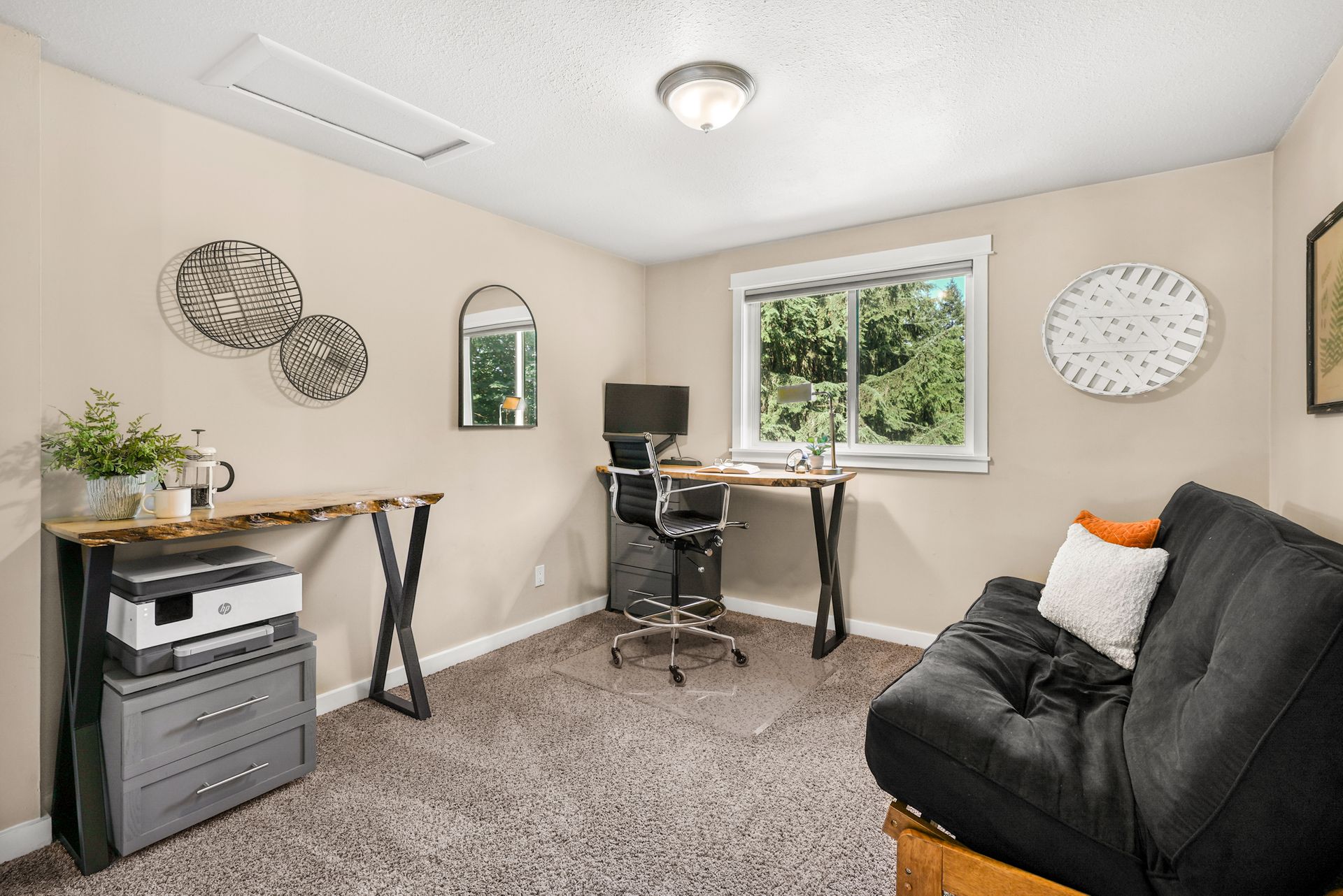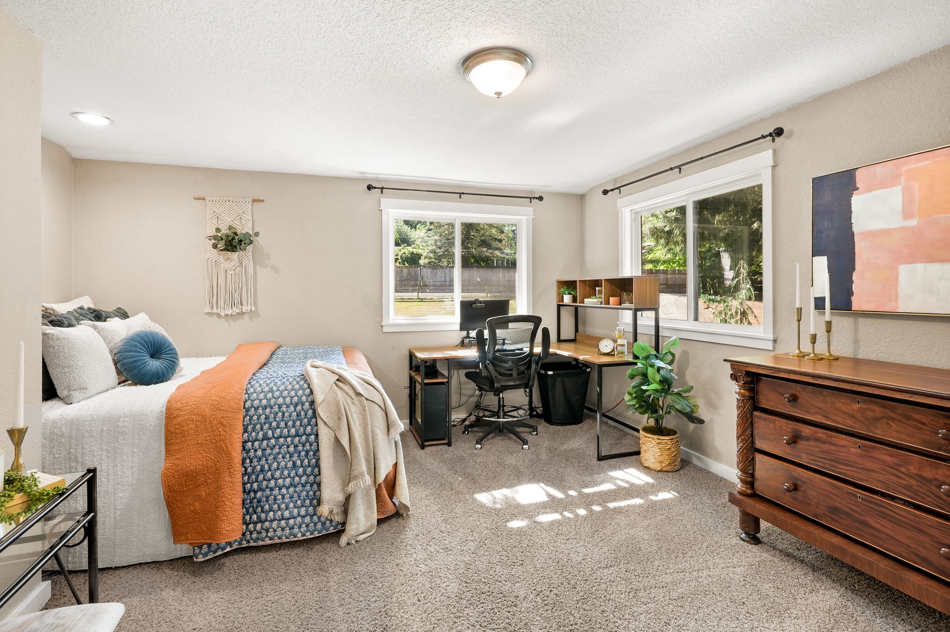Downstairs, a spacious 2-bedroom ADU offers ample possibilities, whether you’re looking for multigenerational living, rental income, or extended guest accommodations. With private exterior access and a covered patio space, this lower-level suite features a well-appointed kitchen with ample cabinetry and casual counter seating, a cozy living space, and a sizable laundry room. The two rooms feature abundant storage and are accompanied by a spacious ¾ bathroom.