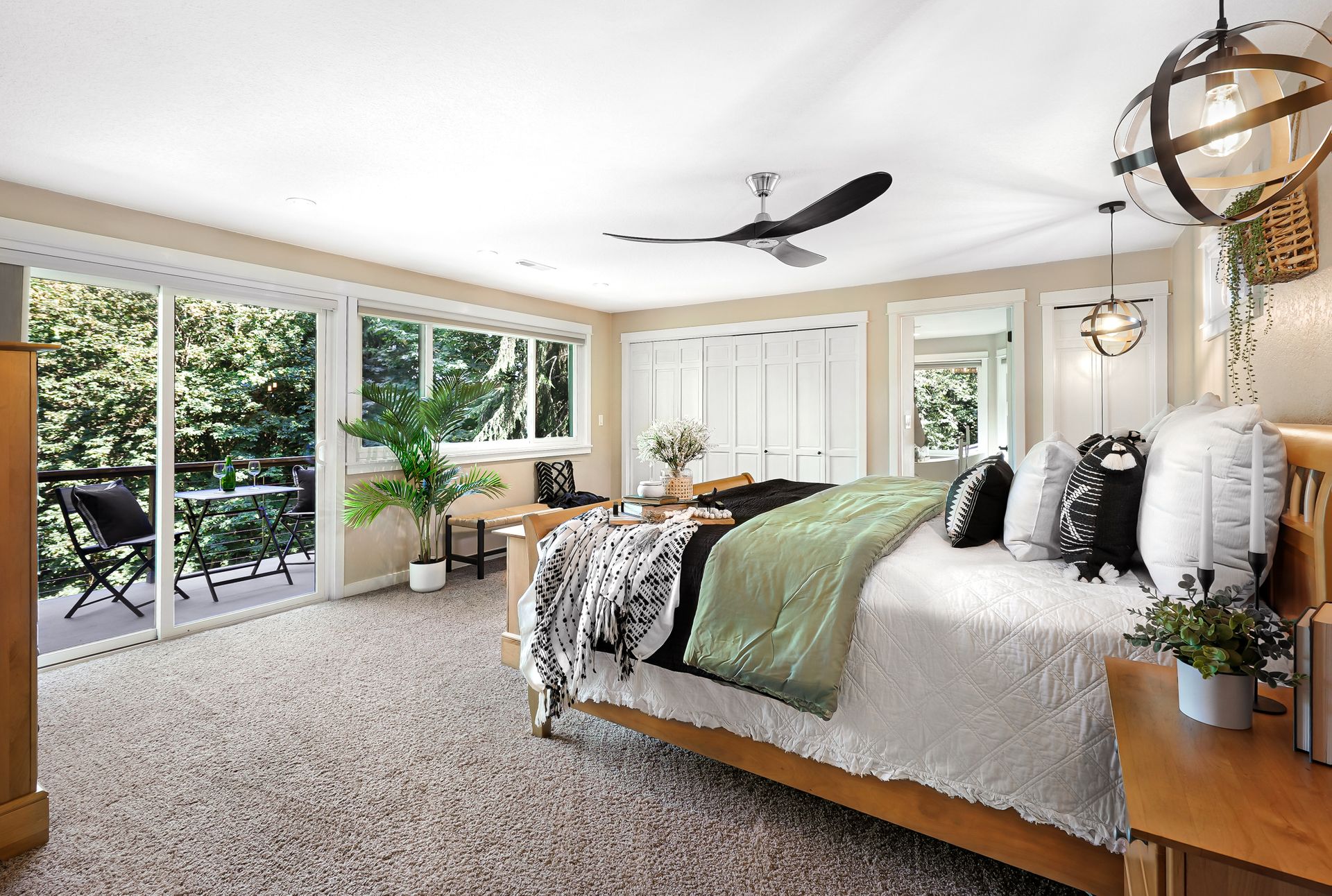 The second living space opens directly to the back deck, where you can take in views of the property and enjoy effortless indoor-outdoor living. Two main floor bedrooms are accompanied by a roomy hall bath perfect for growing households. Upstairs, the primary suite is a true sanctuary with a private balcony, built-in storage in the closet, and a spa-inspired ensuite featuring a soaking tub, walk-in shower, and dual vanities. An additional upstairs bedroom adds flexibility for guests or a home office.