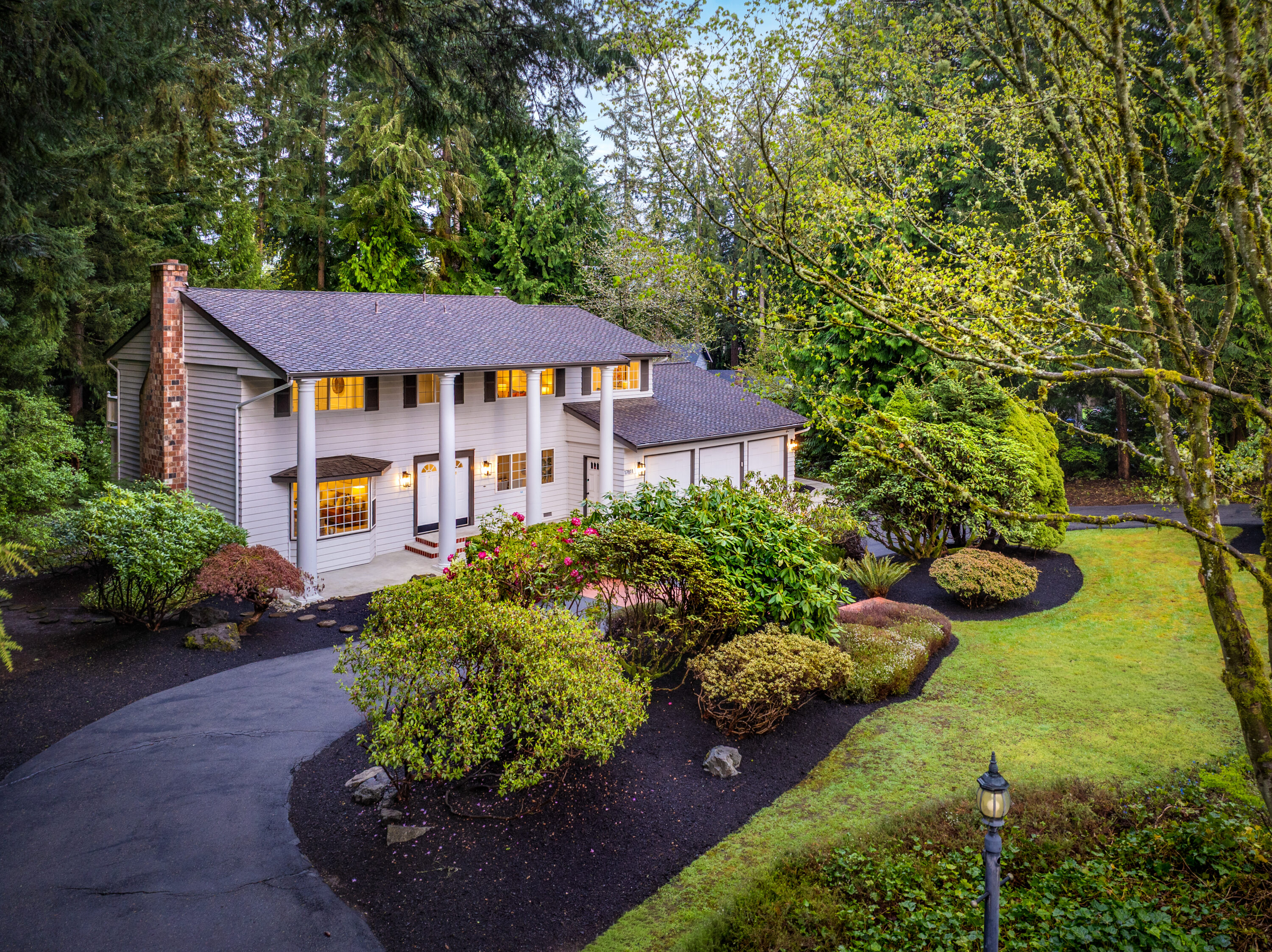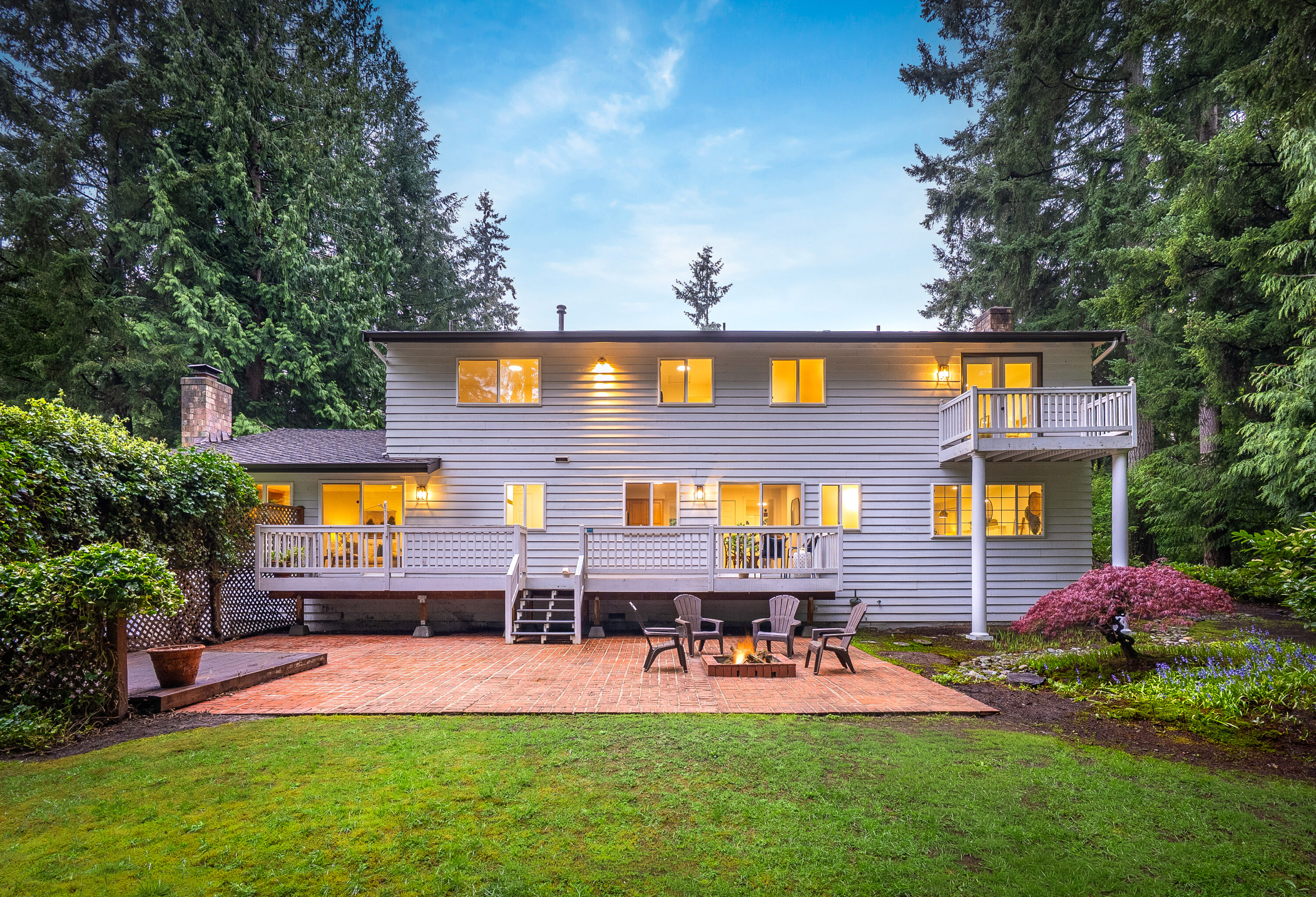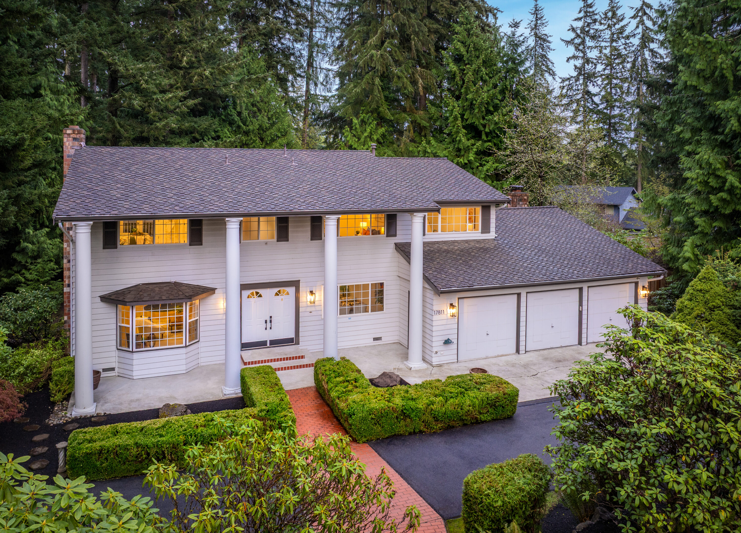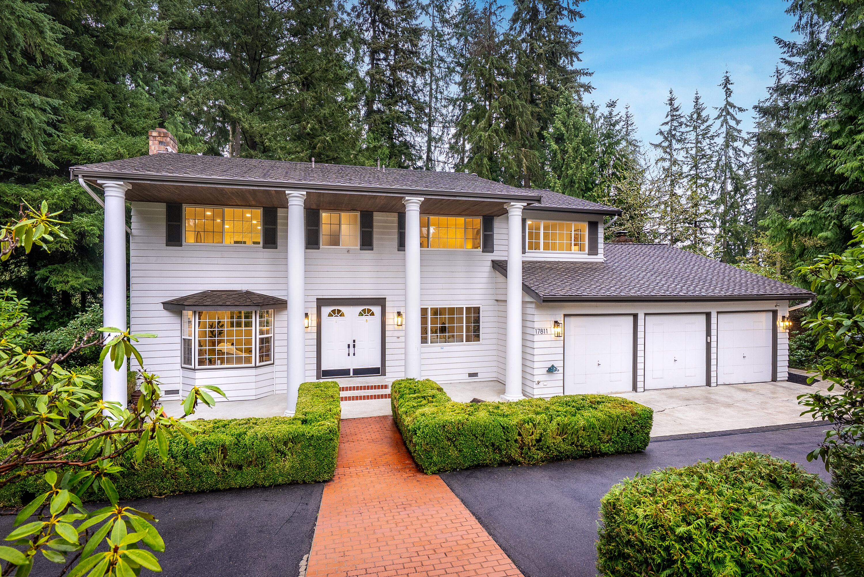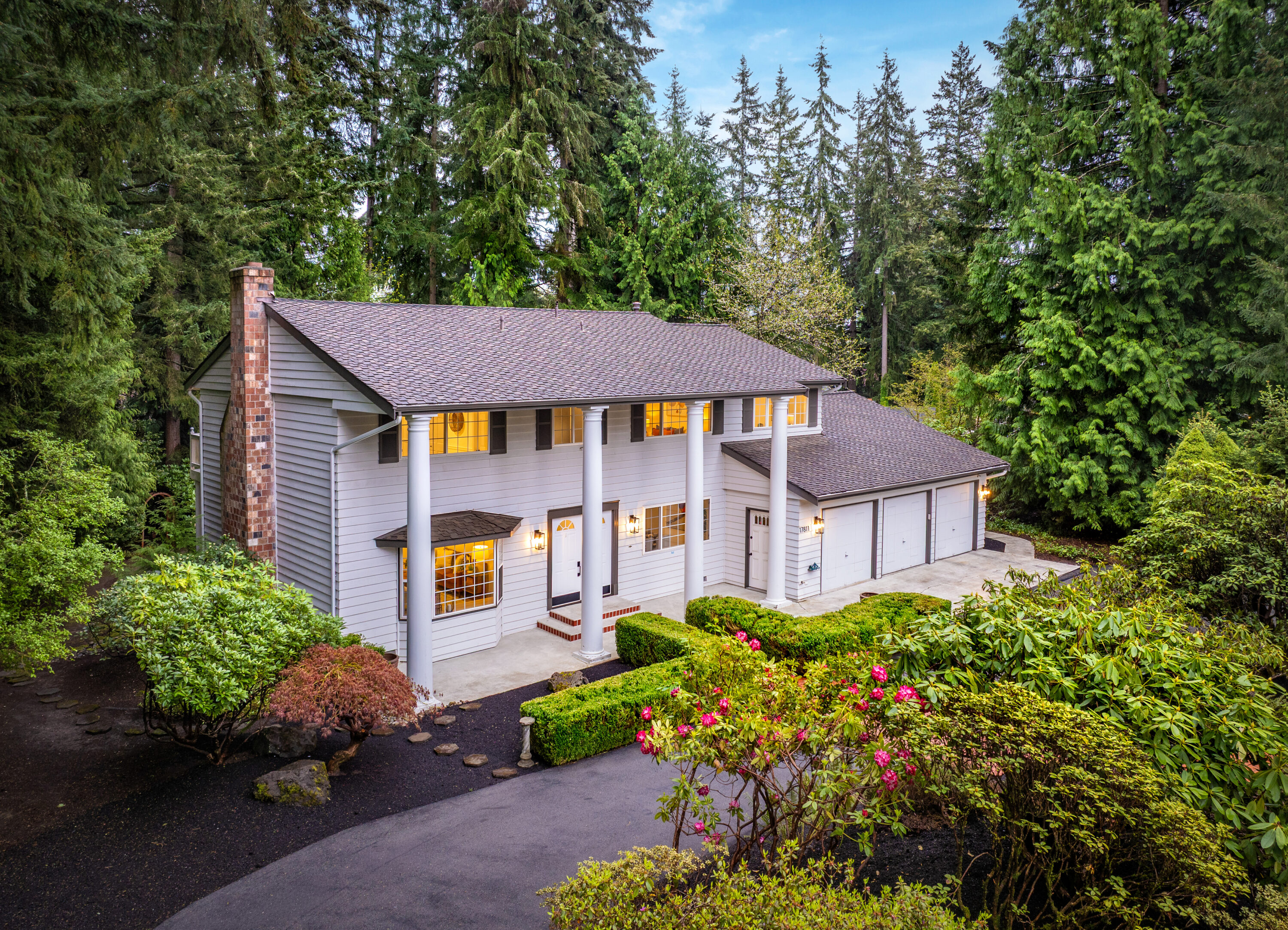 Located within the Woods Trail neighborhood with proximity to Mill Creek Town Center, this newly updated home offers everyday convenience with easy access to commuter routes, local schools, dining, and shopping. Vibrant, meticulously maintained landscaping around the circular driveway welcomes you in and sets the tone for what’s inside. Recent updates, including new flooring, fresh paint, and modern lighting, create a bright, refreshed backdrop ready for your personal touch. The front living room is filled with natural light and anchored by a cozy fireplace, while the formal dining area allows for easy gatherings. The kitchen features ample cabinetry, new stainless steel appliances, and direct access to the back deck, perfect for summer entertaining. A secondary living space with extensive built-in storage offers space for movie nights and connects effortlessly to the backyard. Outside, enjoy a private setting complete with a sports court, garden space, and room to unwind in the sun. Completing the main level is a laundry room with storage, a utility sink, and nearby garage access, and a centrally located powder bathroom, offering a touch of daily conveniences. Upstairs, the oversized primary suite offers a private retreat with its own balcony, fireplace, dual closets, and ensuite bath boasting heated flooring. Two additional bedrooms, an office, and a full hallway bathroom provide space for guests or a growing household, while an additional versatile flex room is ideal for a play area or creating a quiet reading nook.