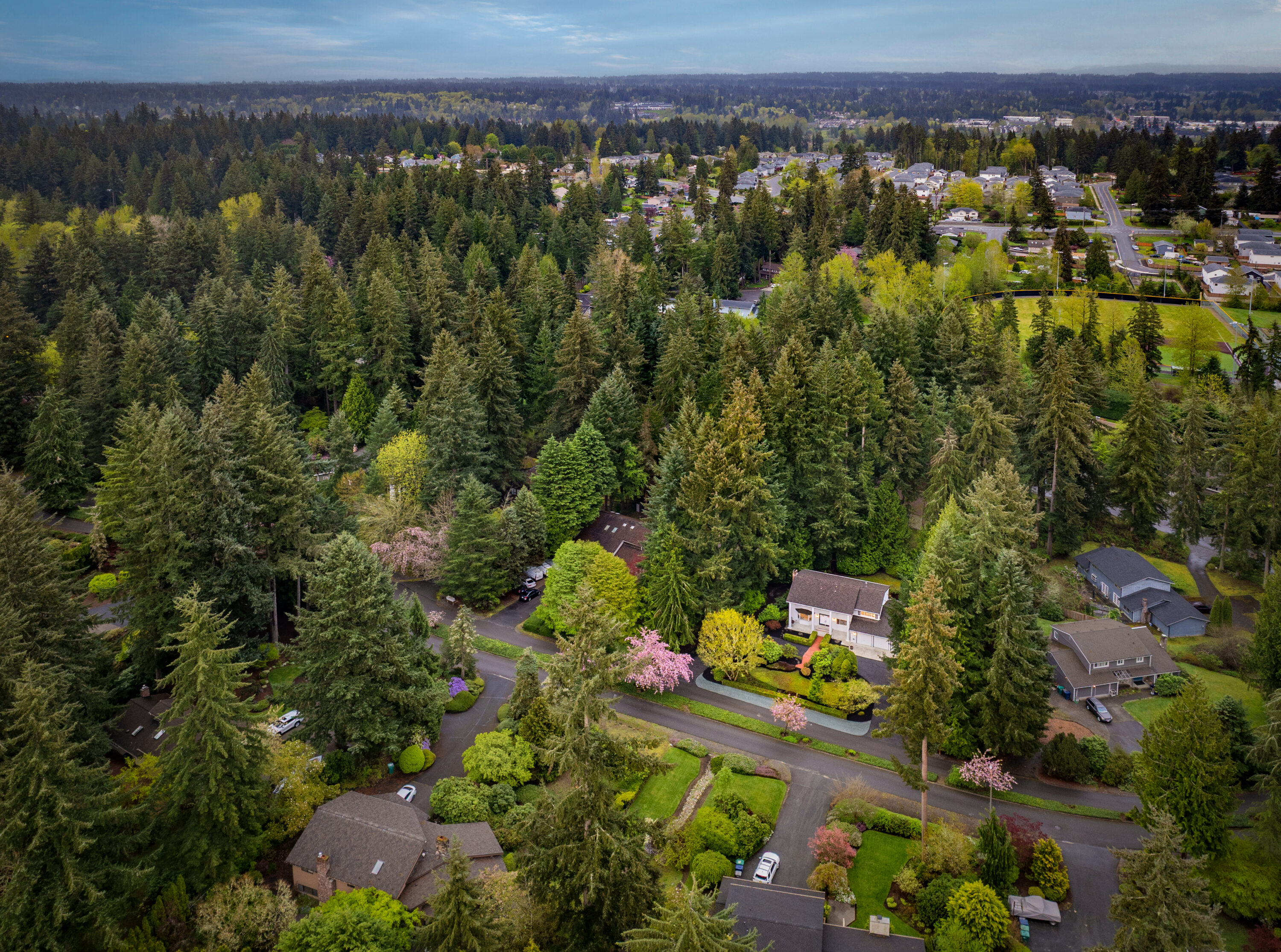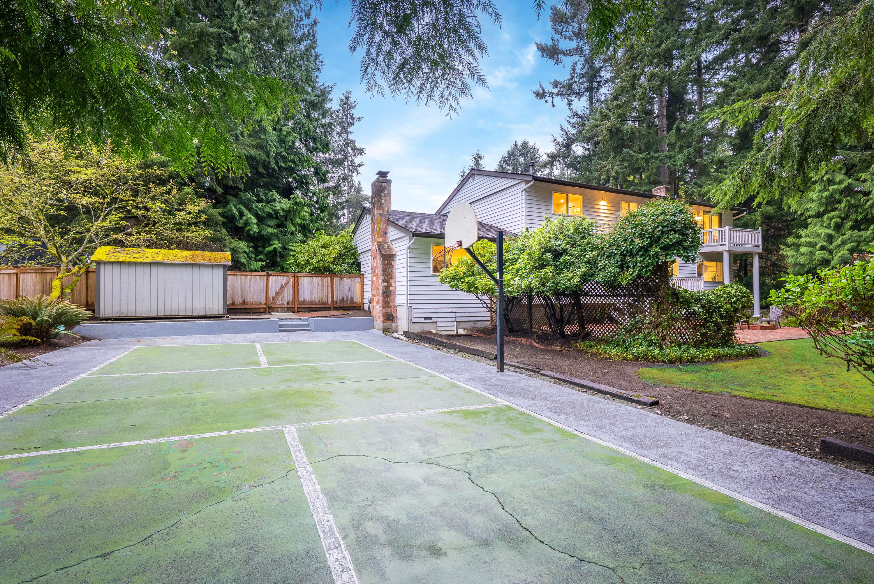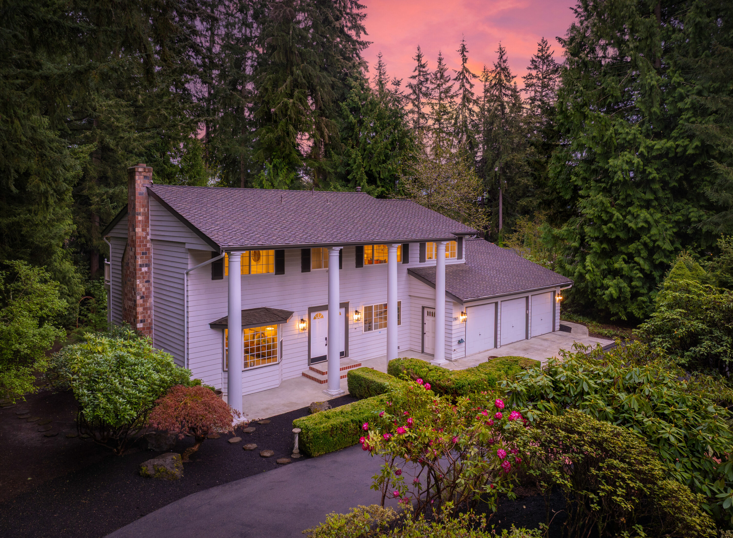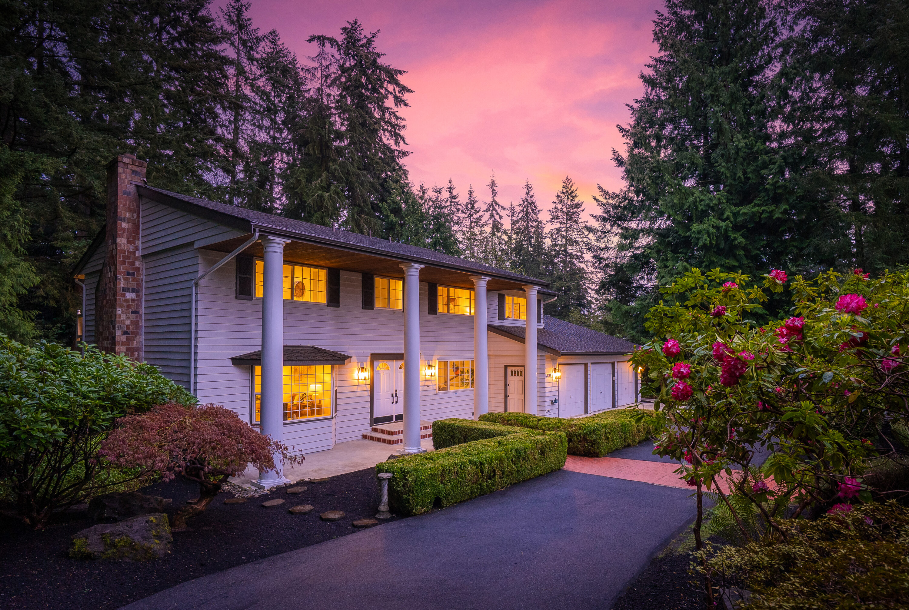 Located within the Woods Trail neighborhood with proximity to Mill Creek Town Center, this newly updated home offers everyday convenience with easy access to commuter routes, local schools, dining, and shopping. Vibrant, meticulously maintained landscaping around the circular driveway welcomes you in and sets the tone for what’s inside. Recent updates, including new flooring, fresh paint, and modern lighting, create a bright, refreshed backdrop ready for your personal touch. The front living room is filled with natural light and anchored by a cozy fireplace, while the formal dining area allows for easy gatherings. The kitchen features ample cabinetry, new stainless steel appliances, and direct access to the back deck, perfect for summer entertaining. A secondary living space with extensive built-in storage offers space for movie nights and connects effortlessly to the backyard. Outside, enjoy a private setting complete with a sports court, garden space, and room to unwind in the sun. Completing the main level is a laundry room with storage, a utility sink, and nearby garage access, and a centrally located powder bathroom, offering a touch of daily conveniences. Upstairs, the oversized primary suite offers a private retreat with its own balcony, fireplace, dual closets, and ensuite bath boasting heated flooring. Two additional bedrooms, an office, and a full hallway bathroom provide space for guests or a growing household, while an additional versatile flex room is ideal for a play area or creating a quiet reading nook.