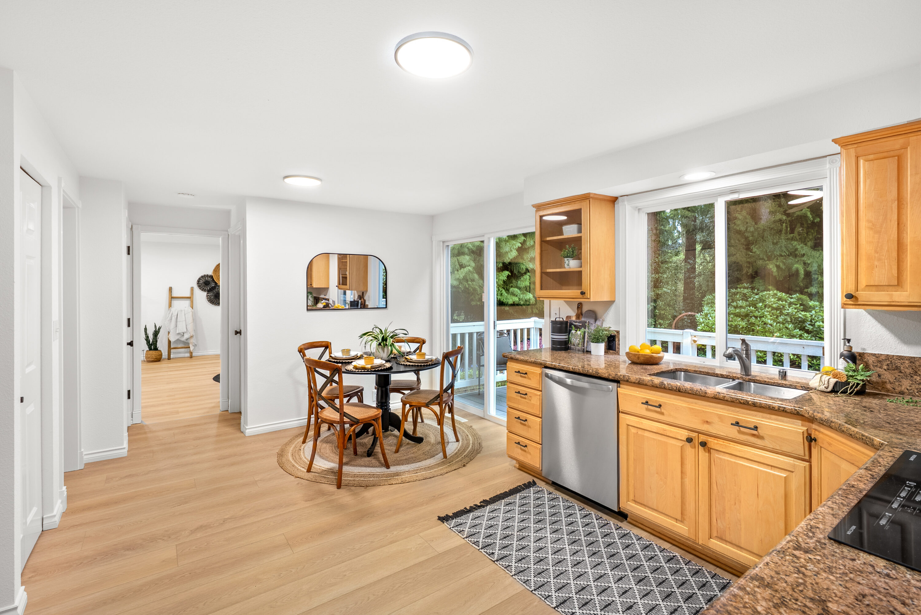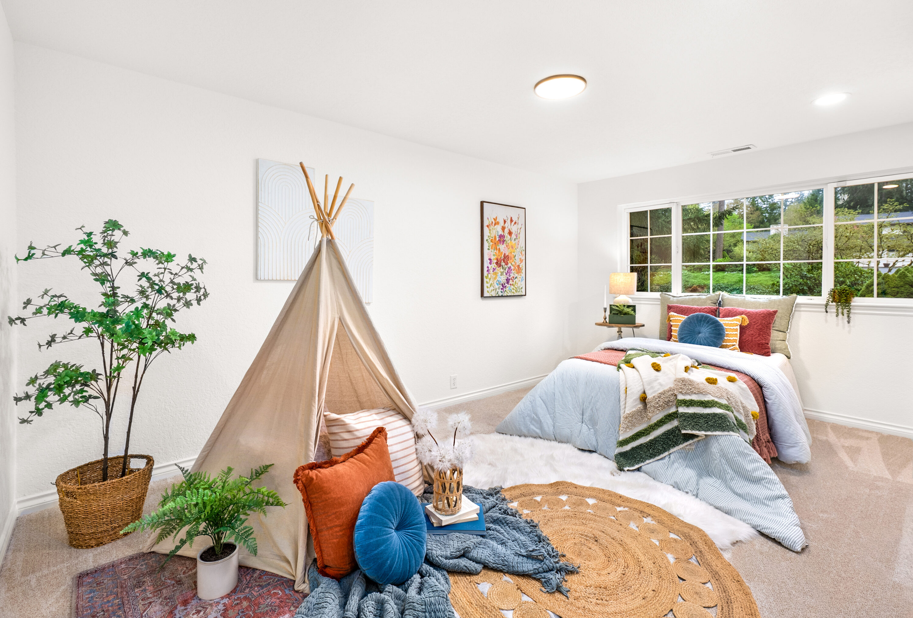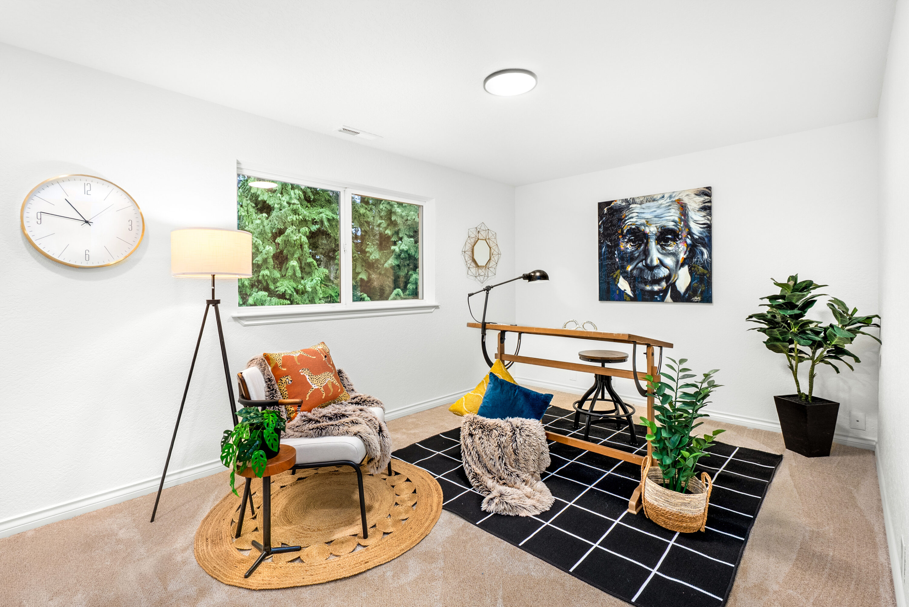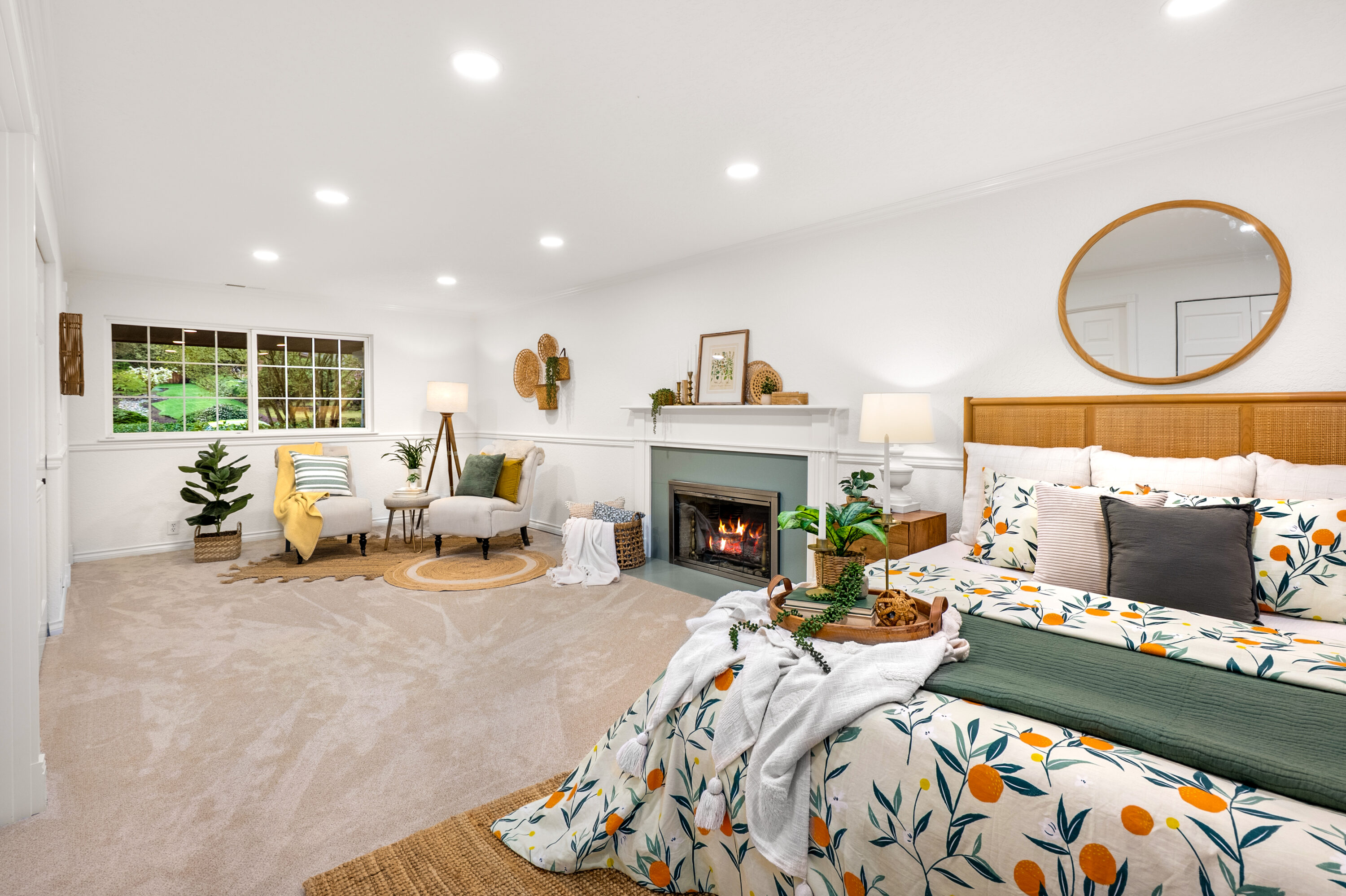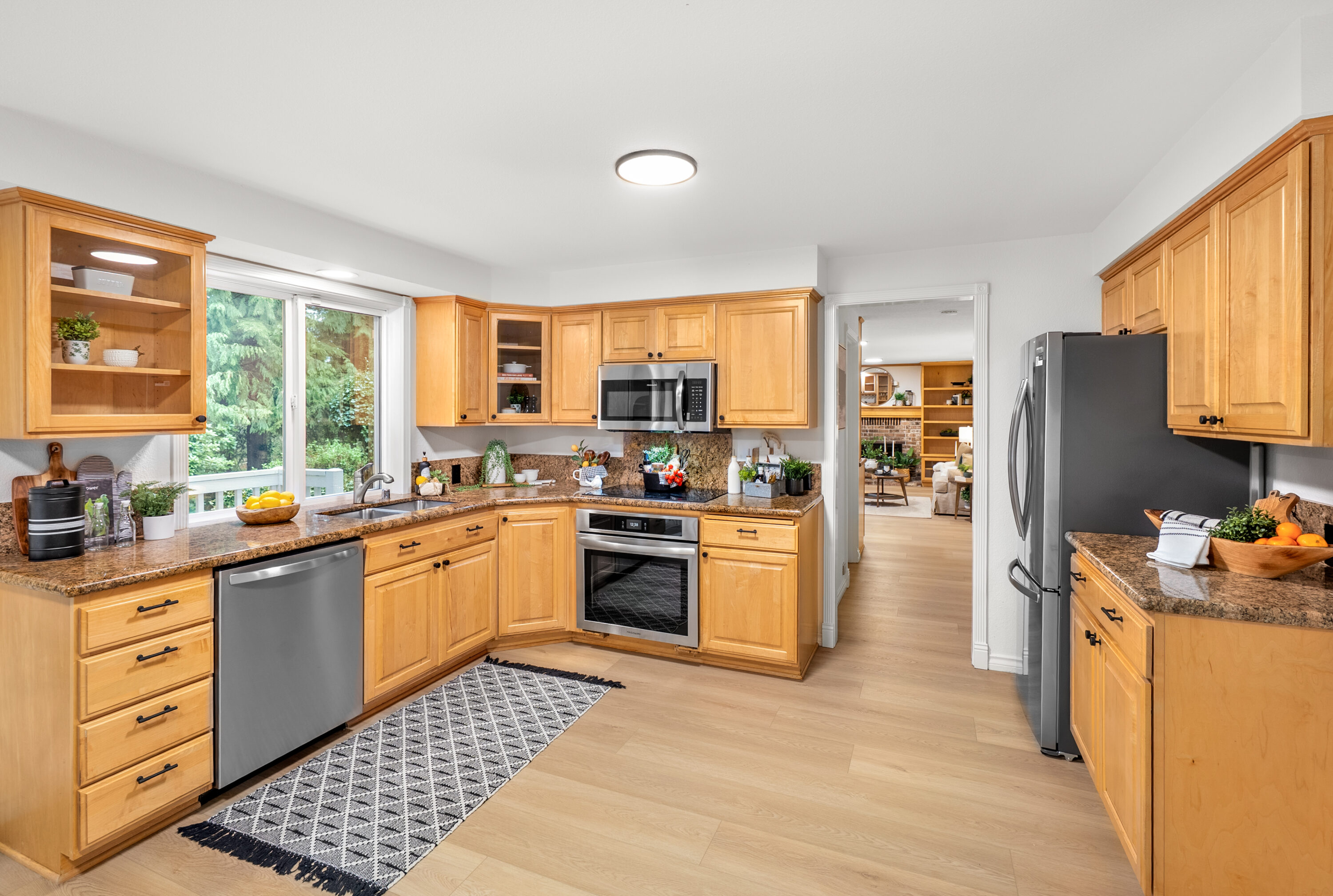Located within the Woods Trail neighborhood with proximity to Mill Creek Town Center, this newly updated home offers everyday convenience with easy access to commuter routes, local schools, dining, and shopping. Vibrant, meticulously maintained landscaping around the circular driveway welcomes you in and sets the tone for what’s inside. Recent updates, including new flooring, fresh paint, and modern lighting, create a bright, refreshed backdrop ready for your personal touch. The front living room is filled with natural light and anchored by a cozy fireplace, while the formal dining area allows for easy gatherings. The kitchen features ample cabinetry, new stainless steel appliances, and direct access to the back deck, perfect for summer entertaining. A secondary living space with extensive built-in storage offers space for movie nights and connects effortlessly to the backyard. Outside, enjoy a private setting complete with a sports court, garden space, and room to unwind in the sun. Completing the main level is a laundry room with storage, a utility sink, and nearby garage access, and a centrally located powder bathroom, offering a touch of daily conveniences. Upstairs, the oversized primary suite offers a private retreat with its own balcony, fireplace, dual closets, and ensuite bath boasting heated flooring. Two additional bedrooms, an office, and a full hallway bathroom provide space for guests or a growing household, while an additional versatile flex room is ideal for a play area or creating a quiet reading nook.
